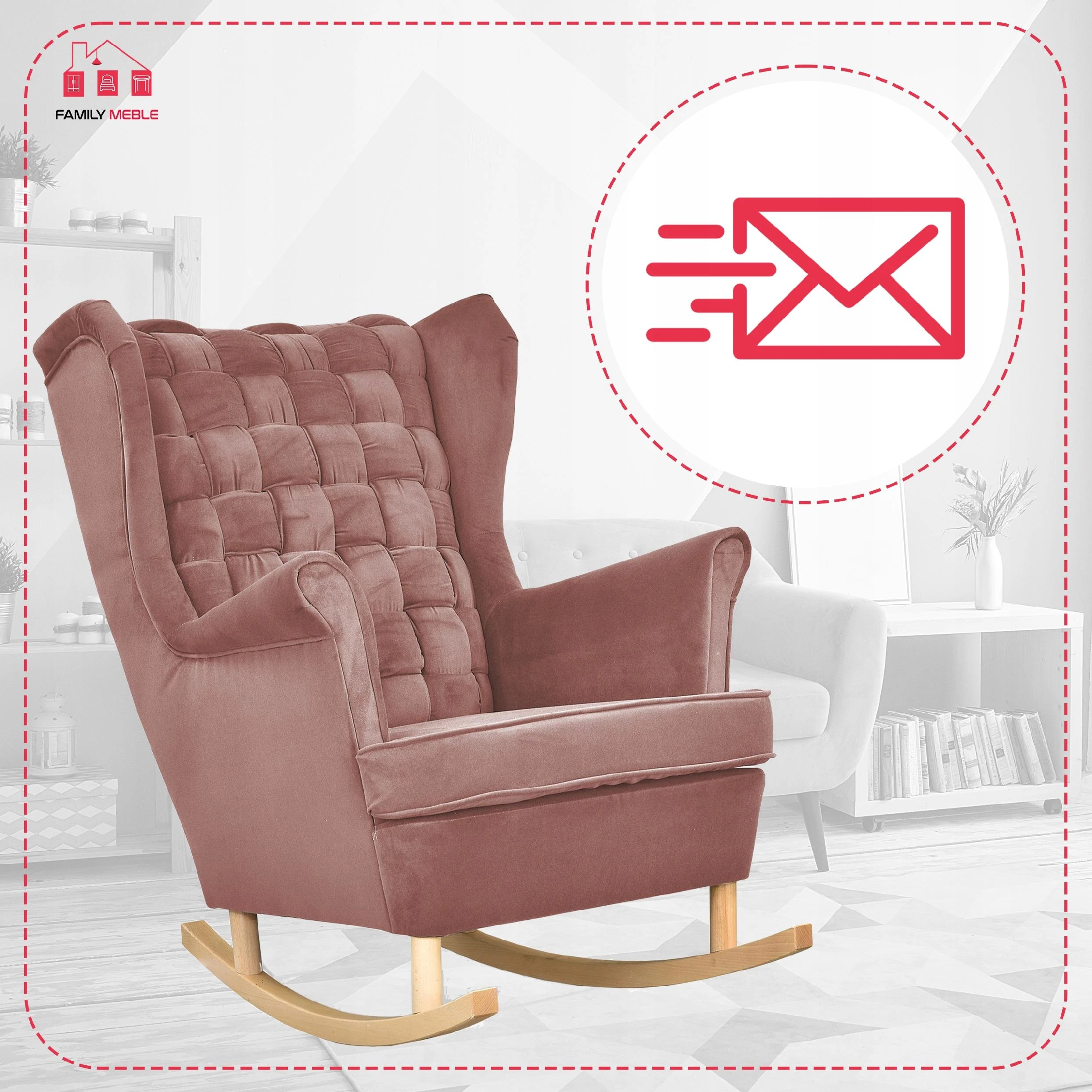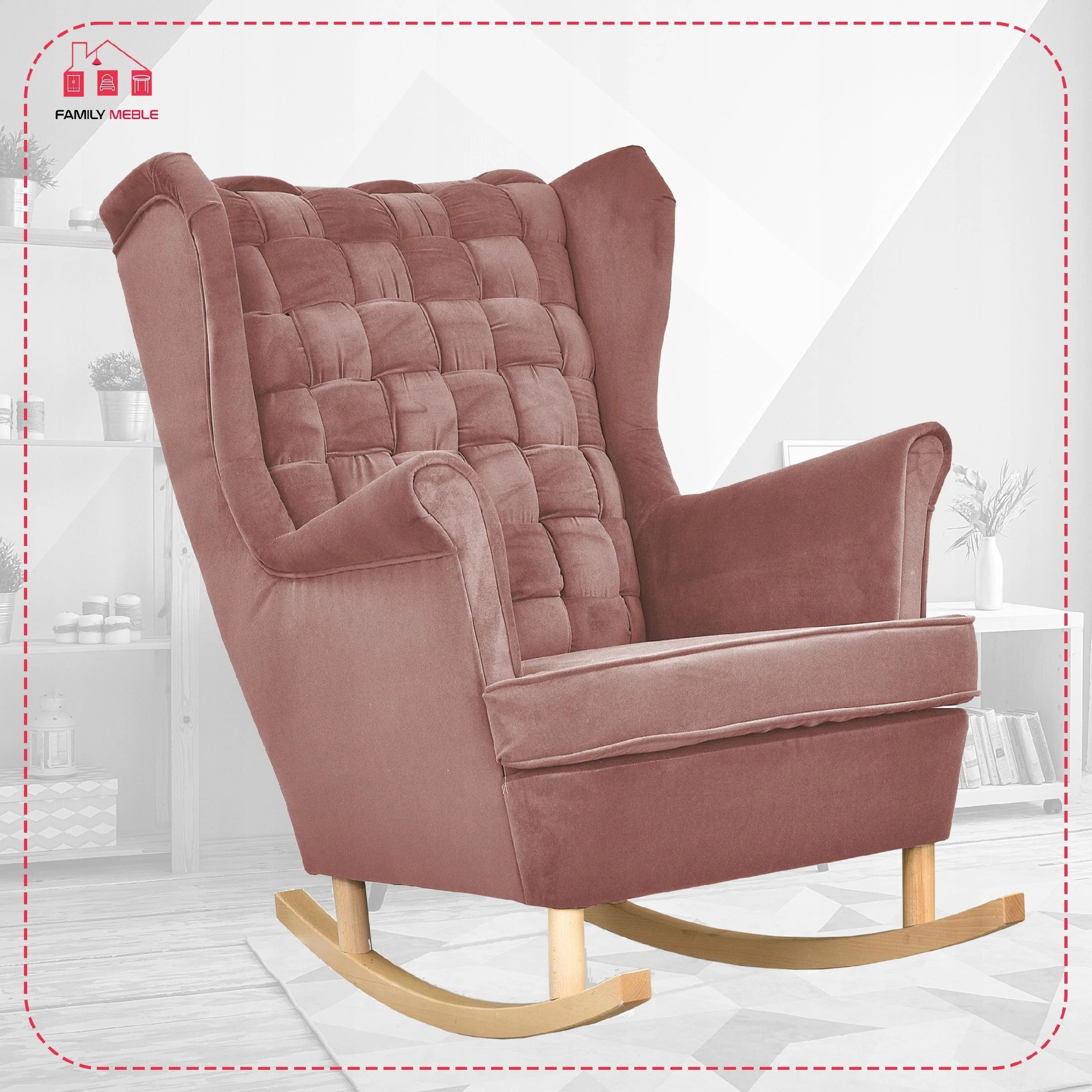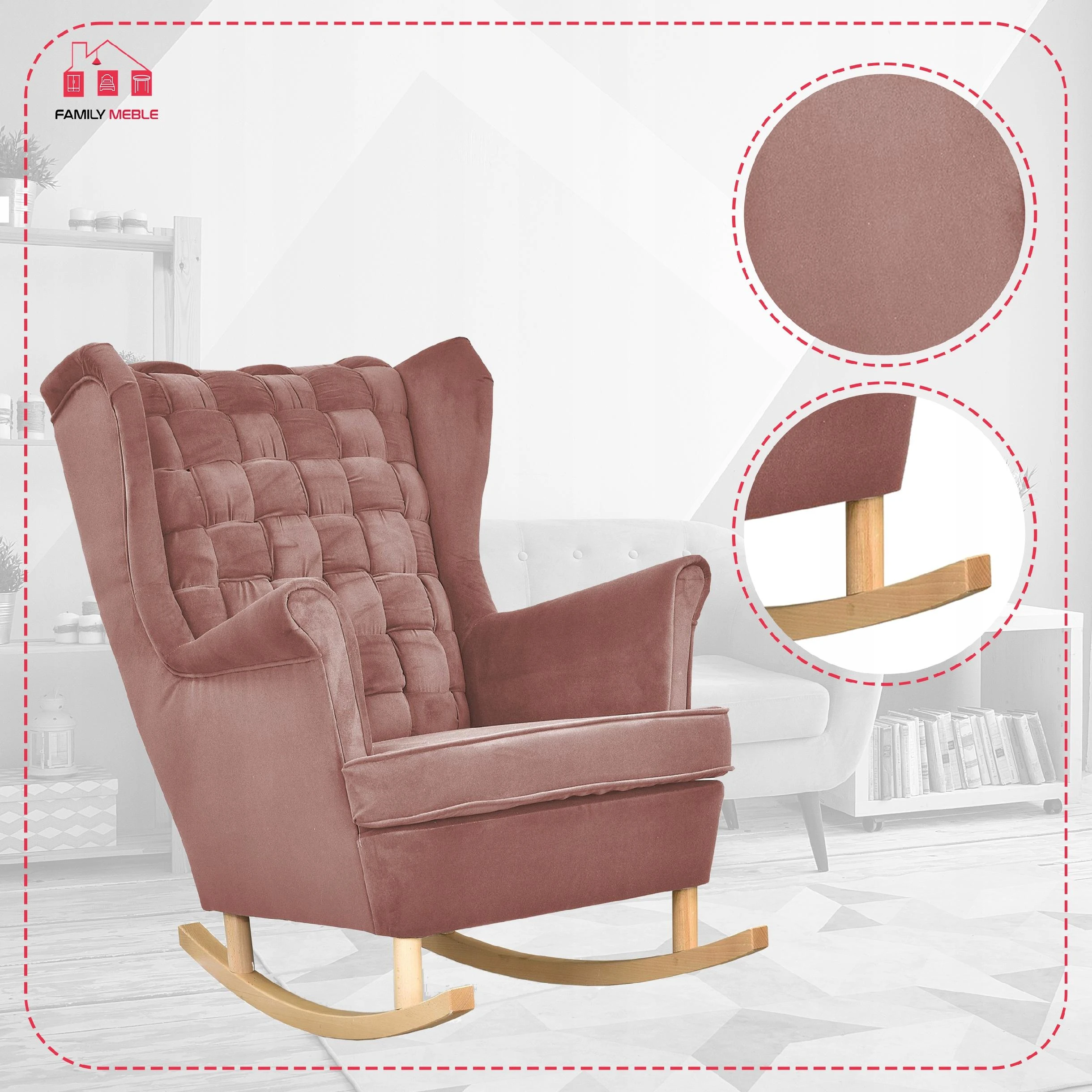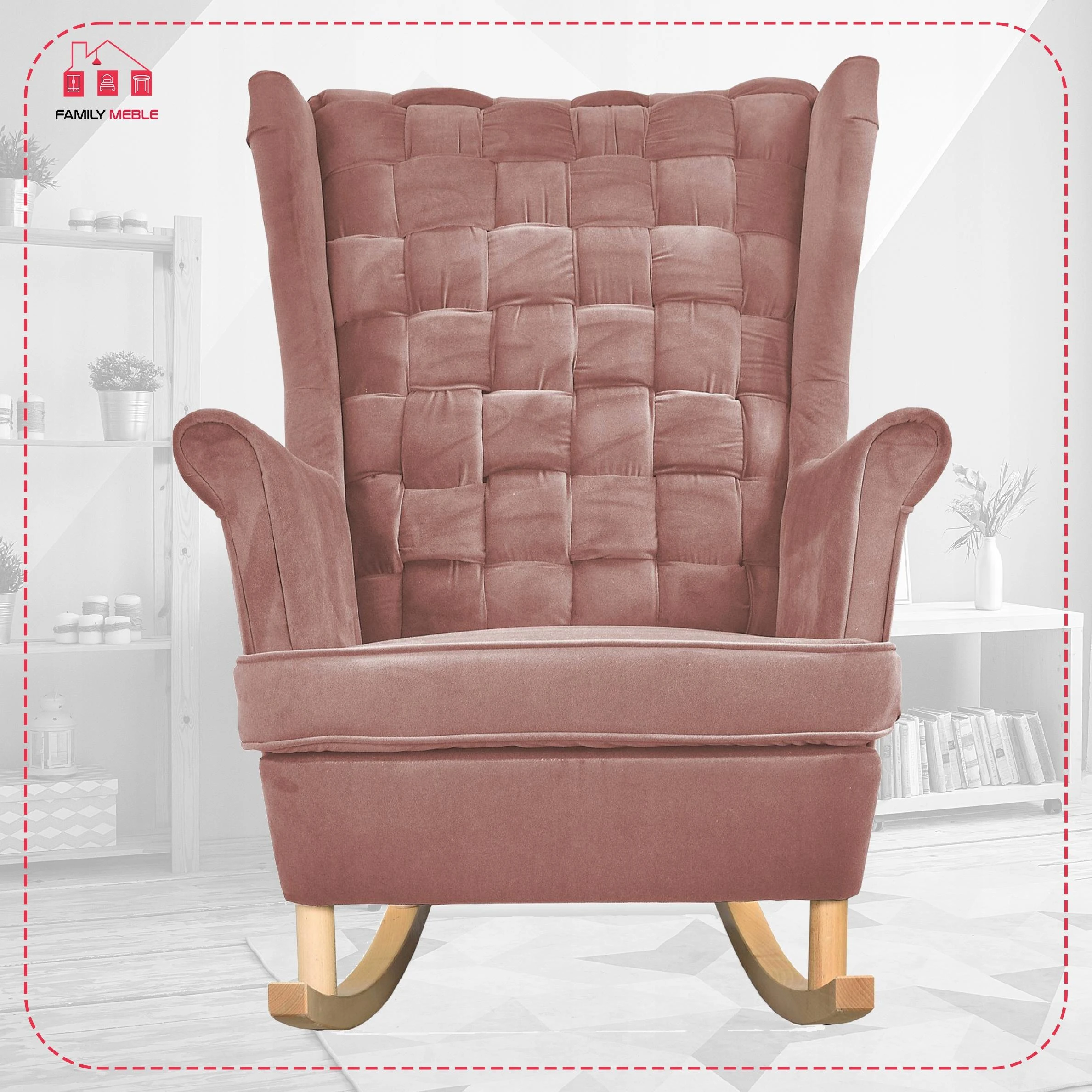 Fotel uszak Carol bujany skandynawski Family Meble brudny różowy
