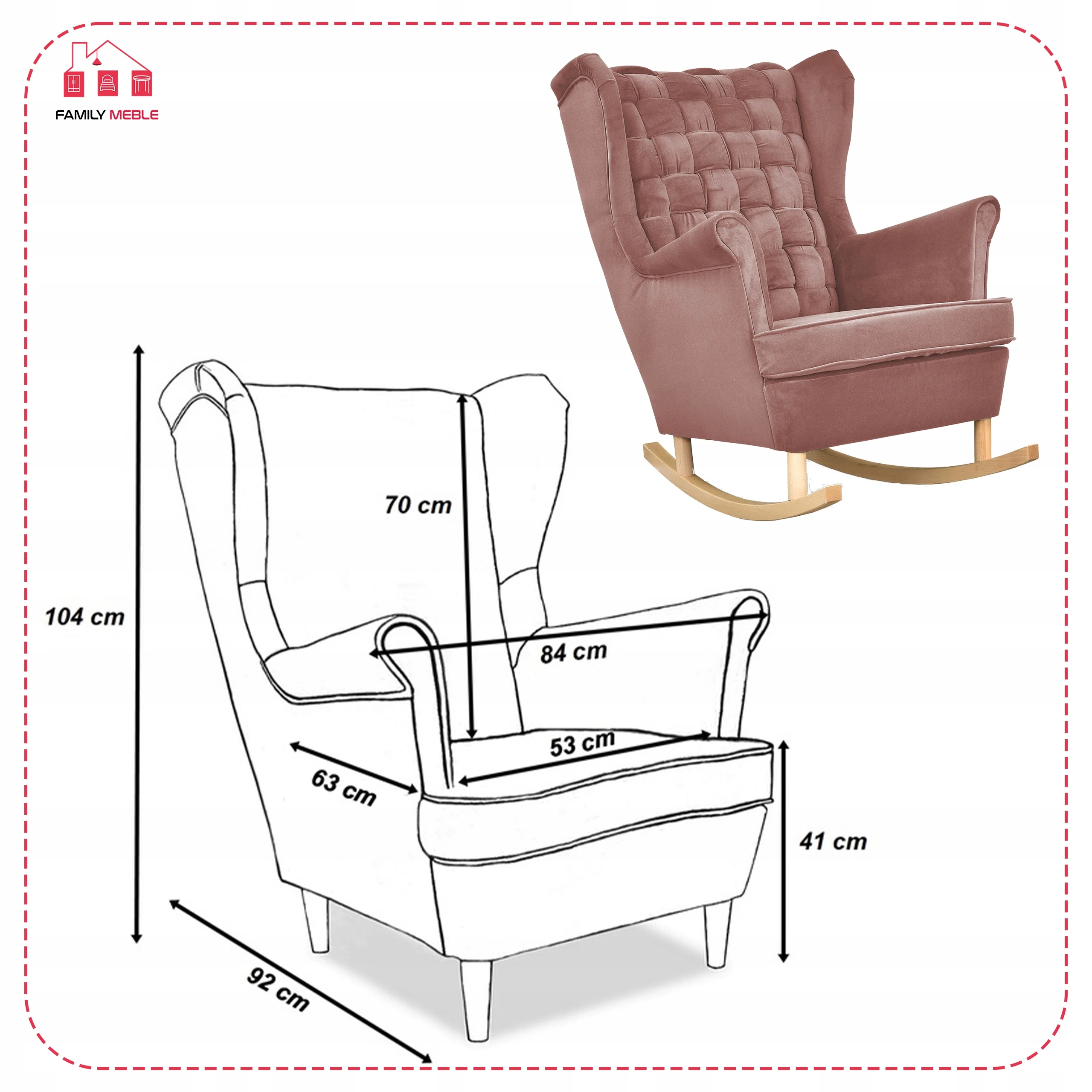 - wysokość siedziska: 41 cm