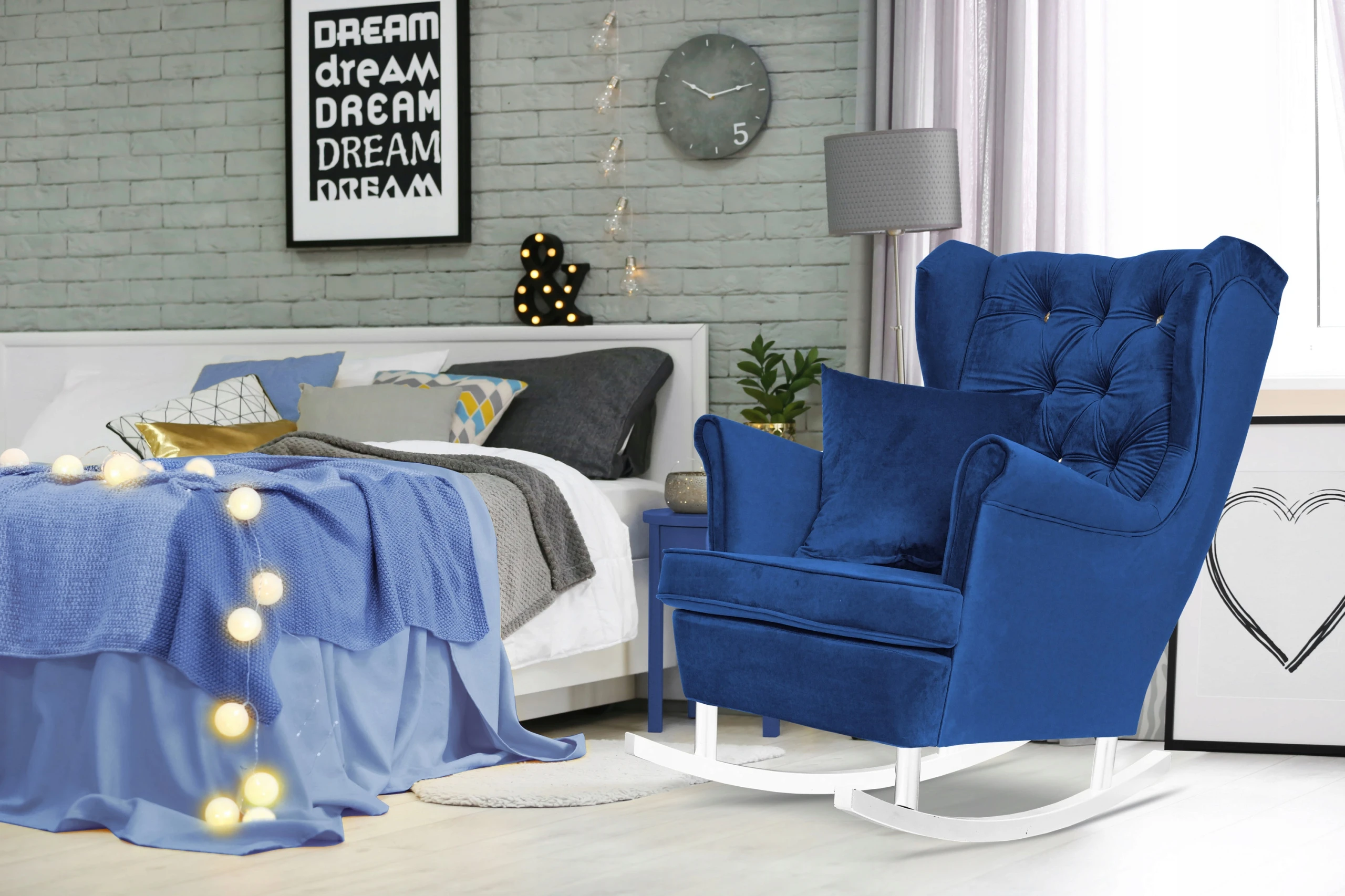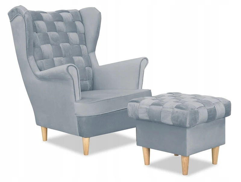 Fotel uszak Carol skandynawski Family Meble błękitno szary aksamit