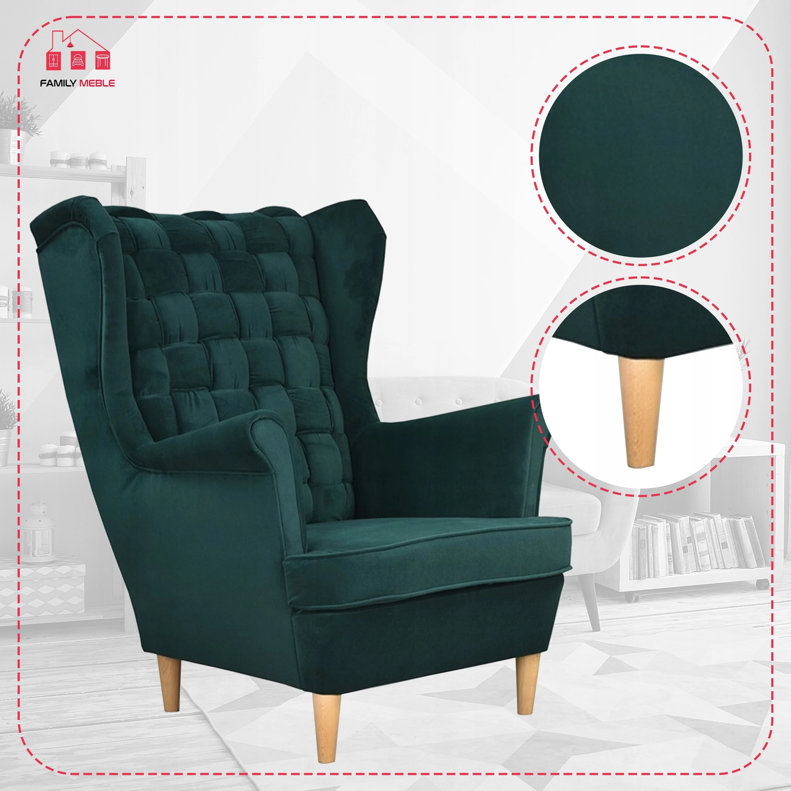 Fotel uszak Carol skandynawski Family Meble butelkowa zieleń, zielony
