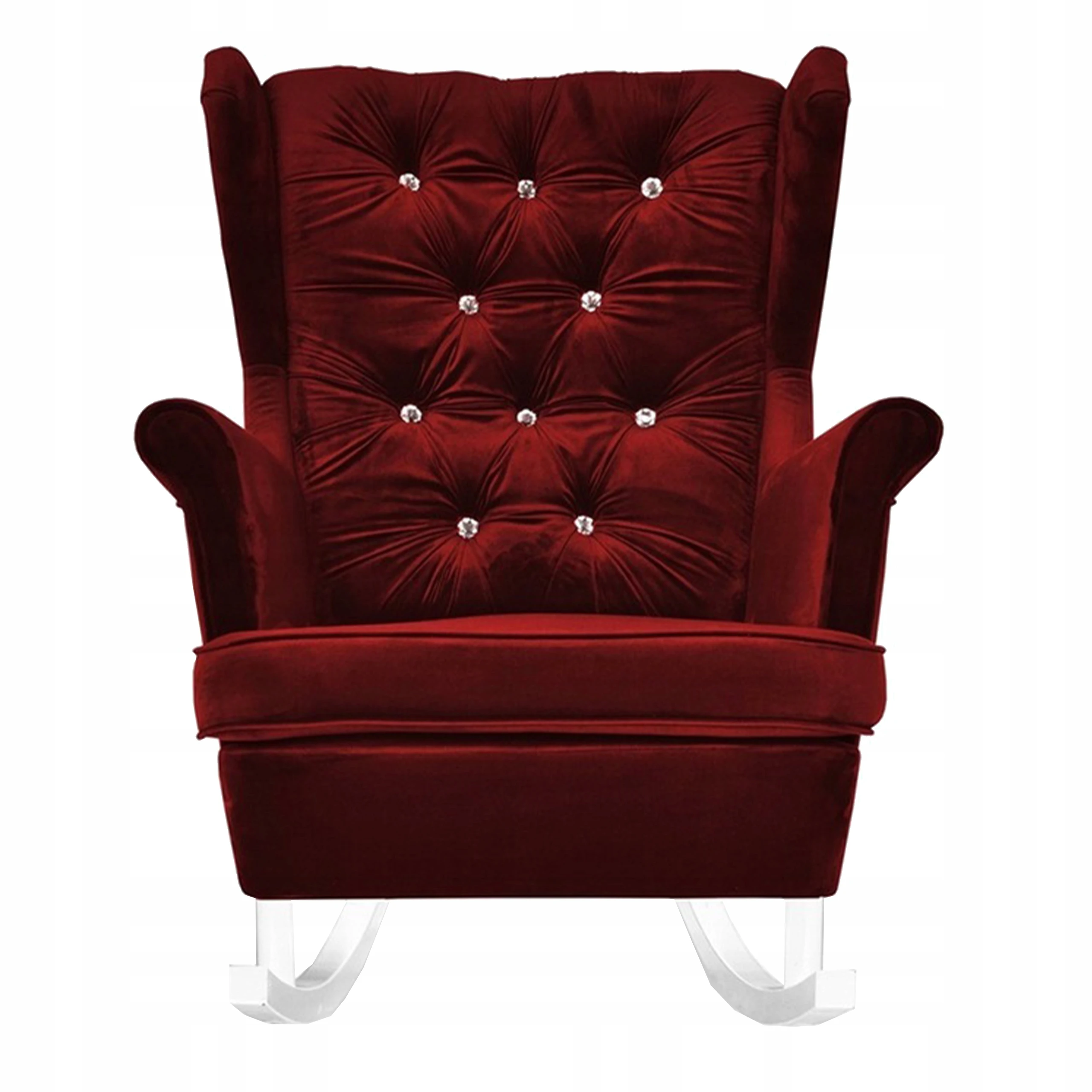 Oparcie fotela jest standardowo zdobione kryształkami Swarovskiego, istnieje jednak możliwość zamienienia ich na guziki materiałowe. W przypadku zainteresowania ozdobą tego rodzaju, poinformuj nas o tym w Wiadomości do Sprzedającego.