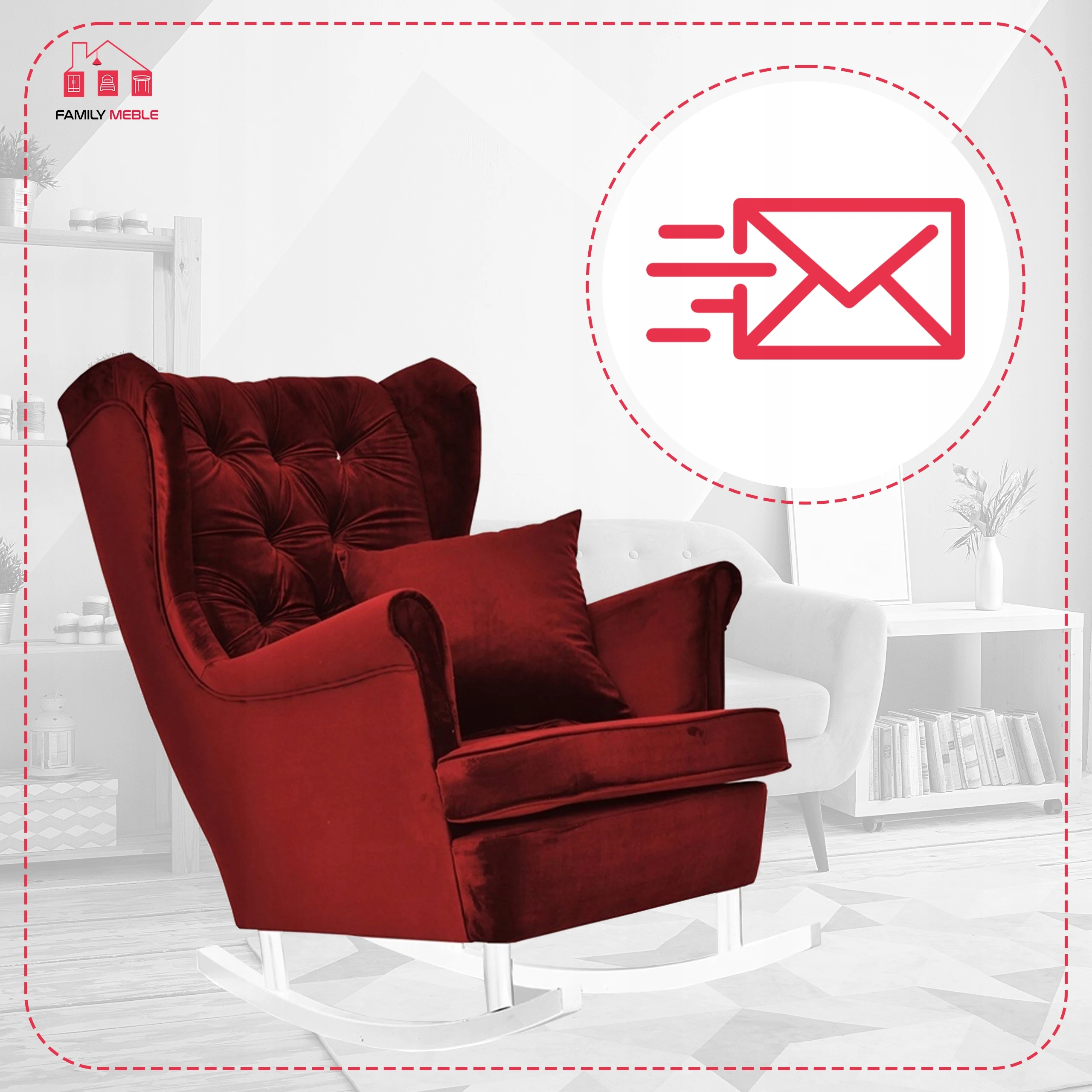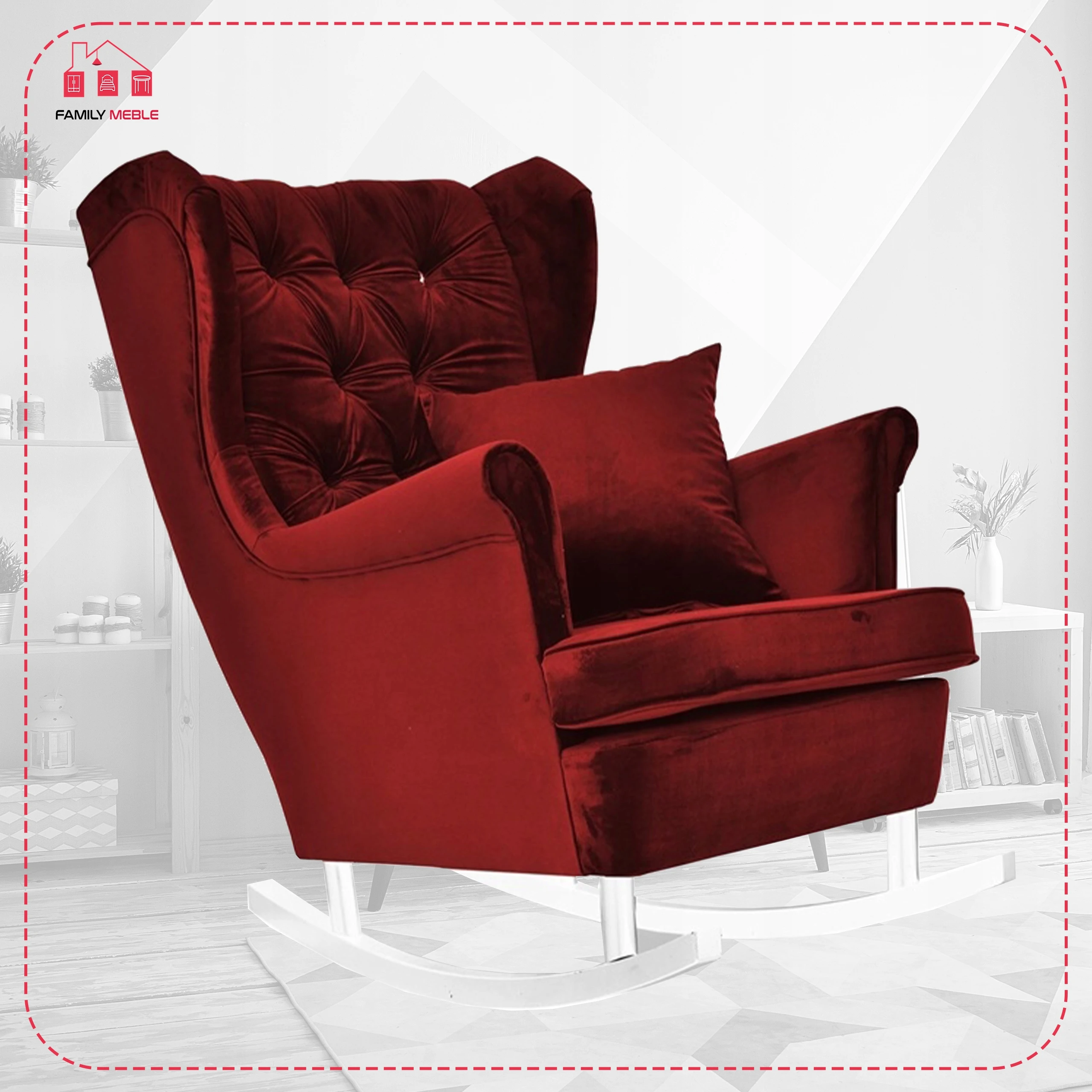 Fotel uszak Gaja bujany skandynawski Family Meble aksamitny czerwony
