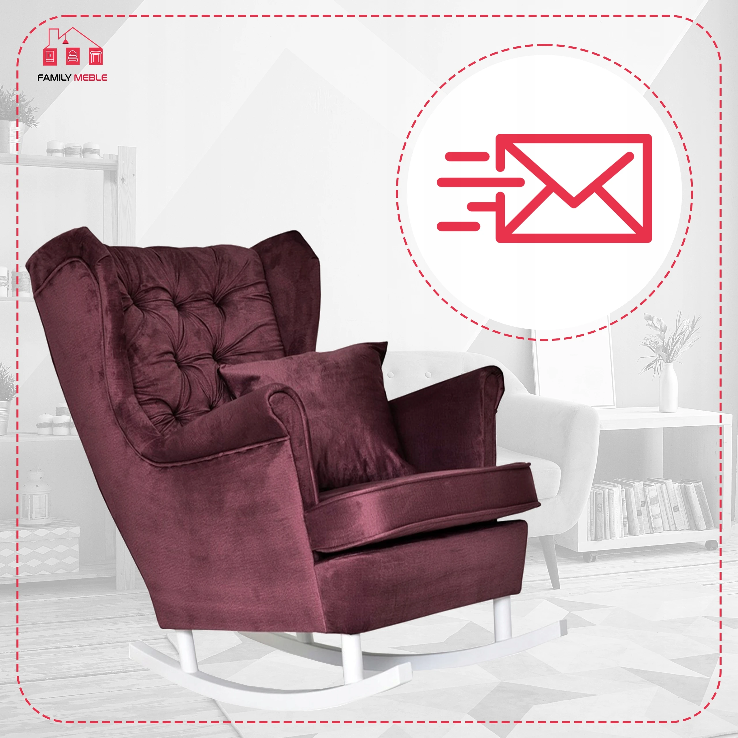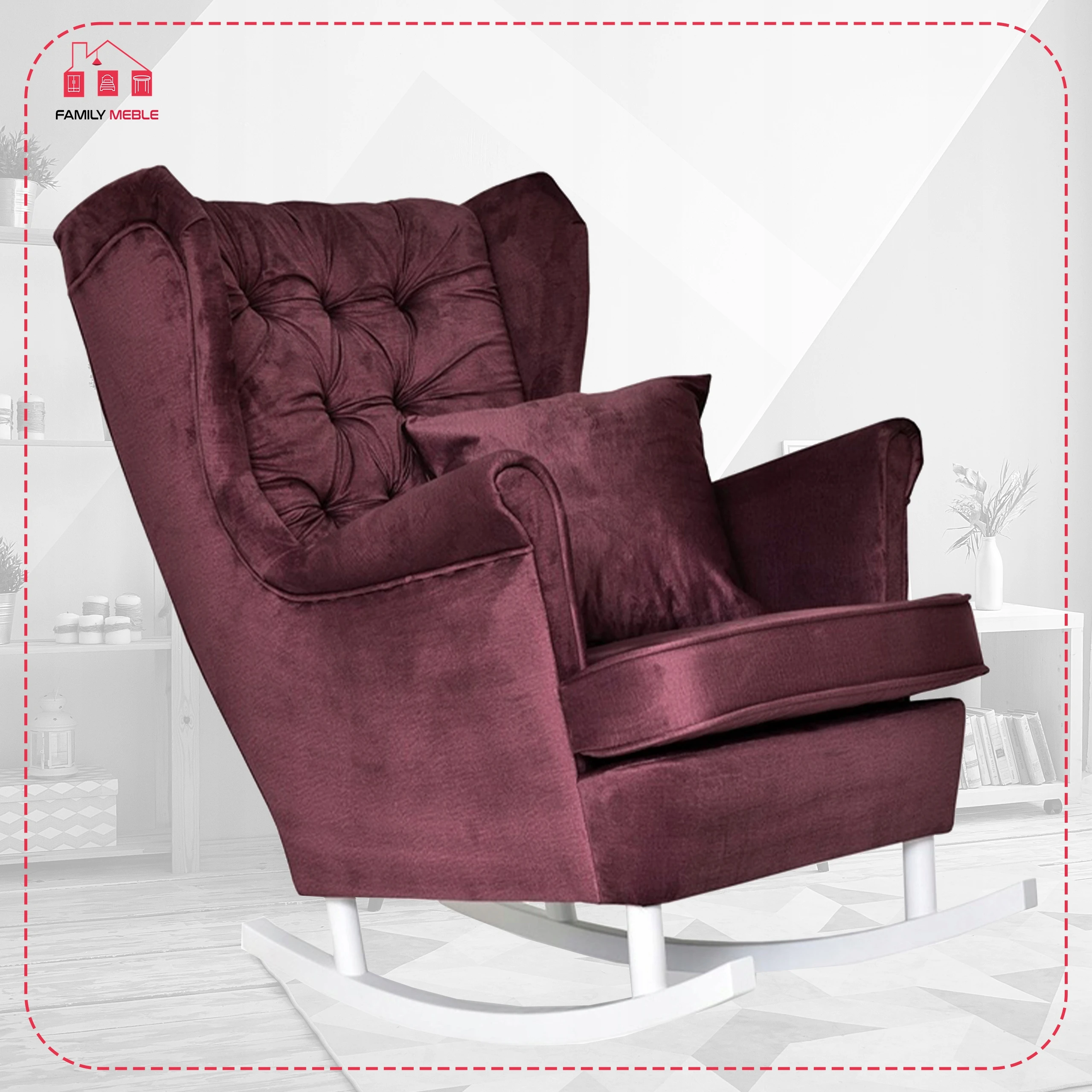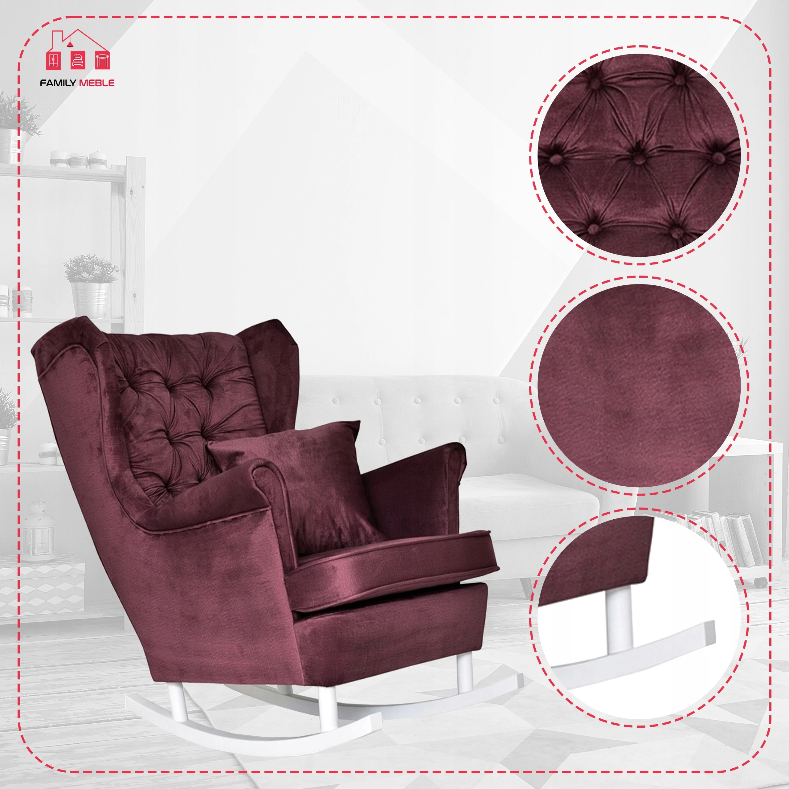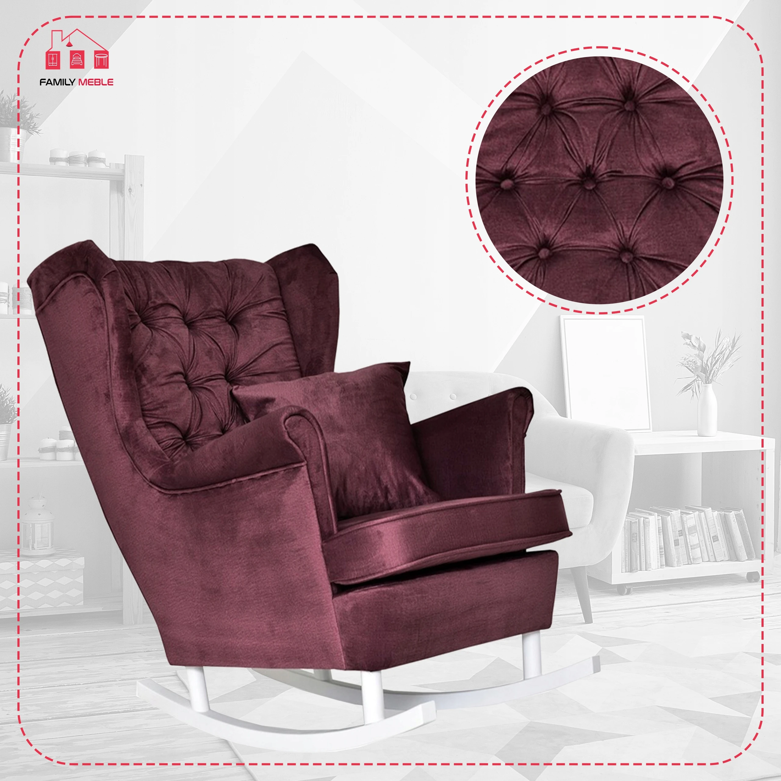 Fotel uszak Gaja bujany skandynawski Family Meble purpurowy rubinowy