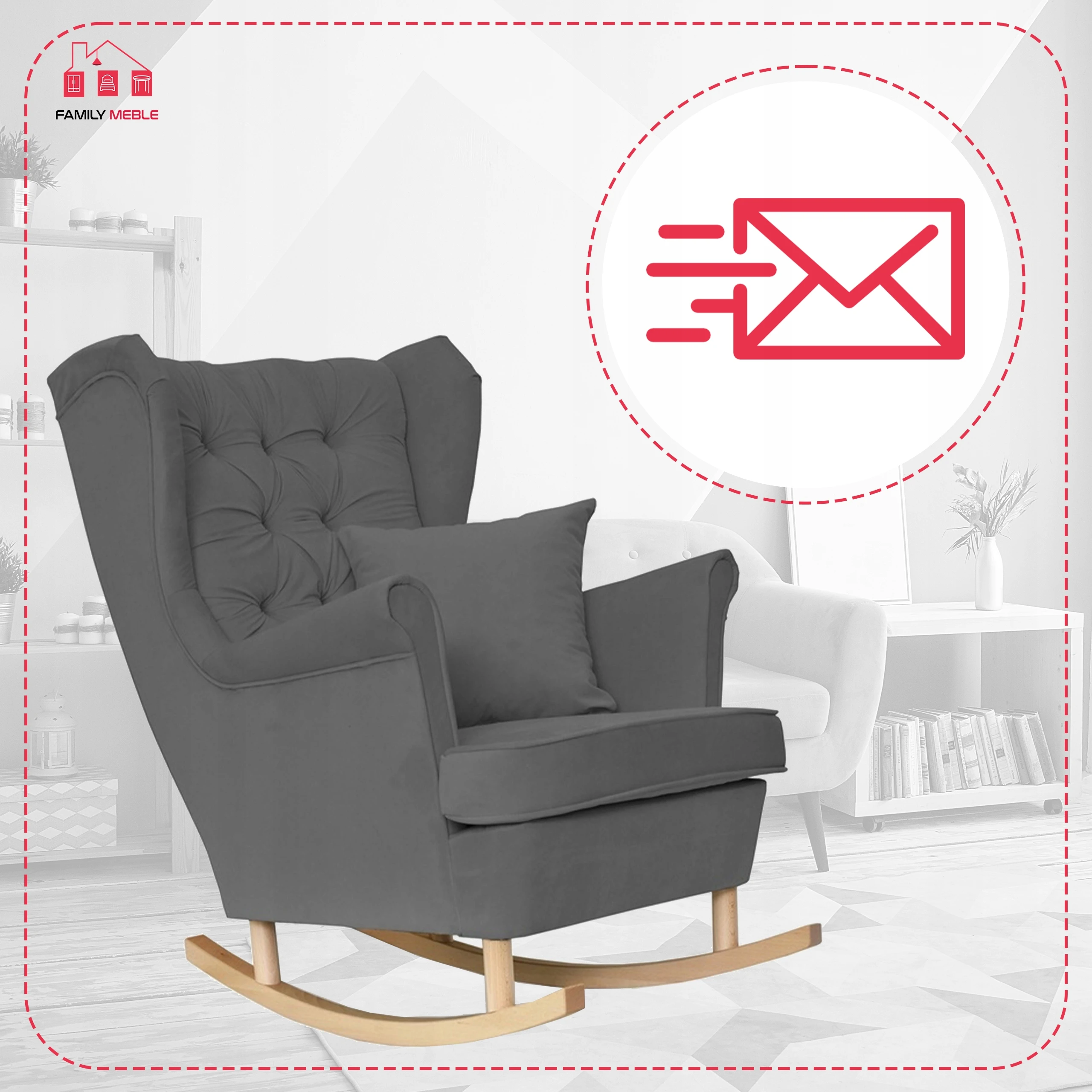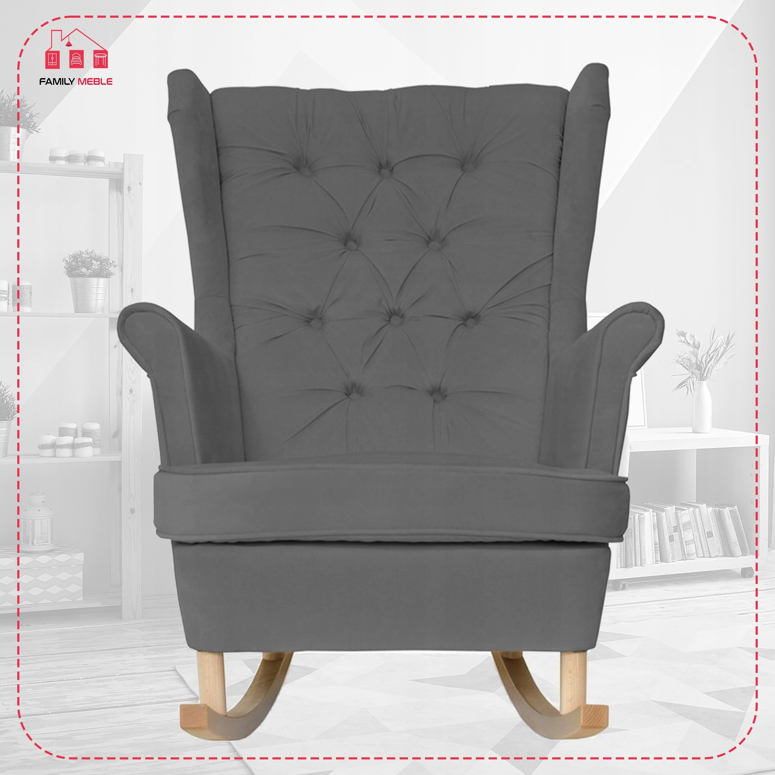 Fotel uszak Gaja bujany skandynawski Family Meble szary welur wygodny antracyt
