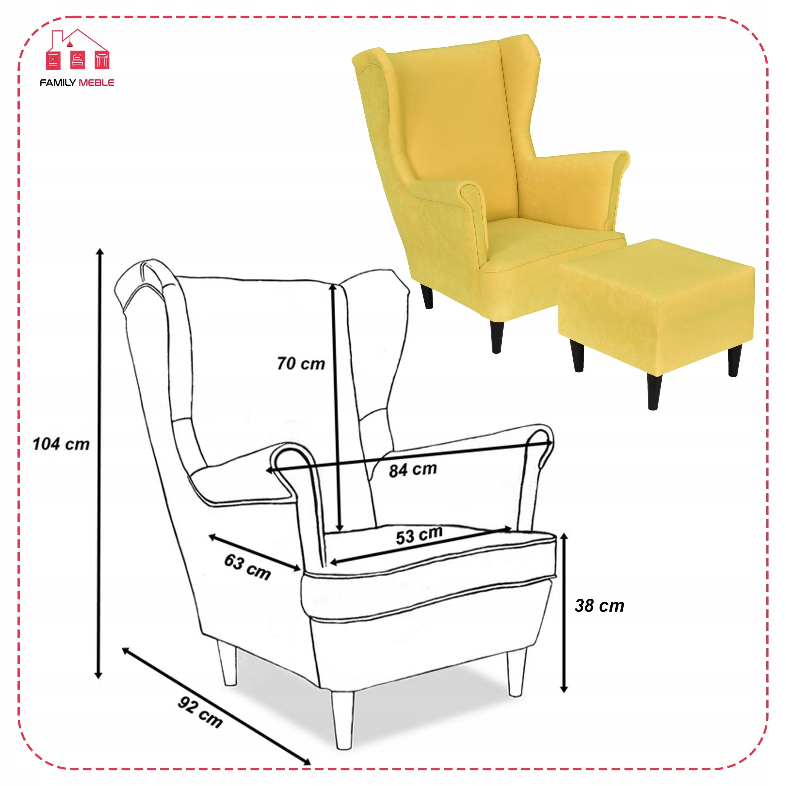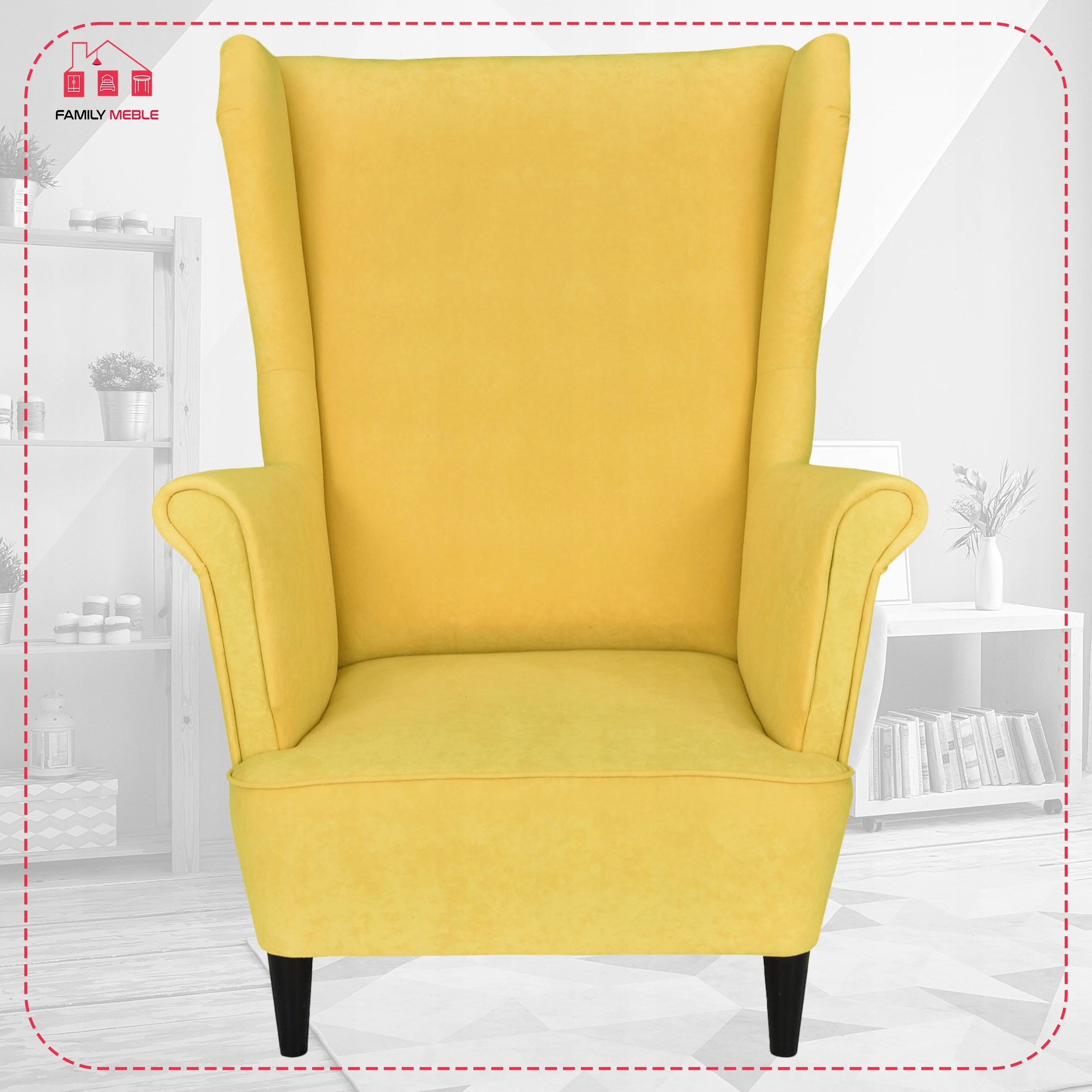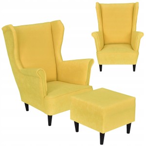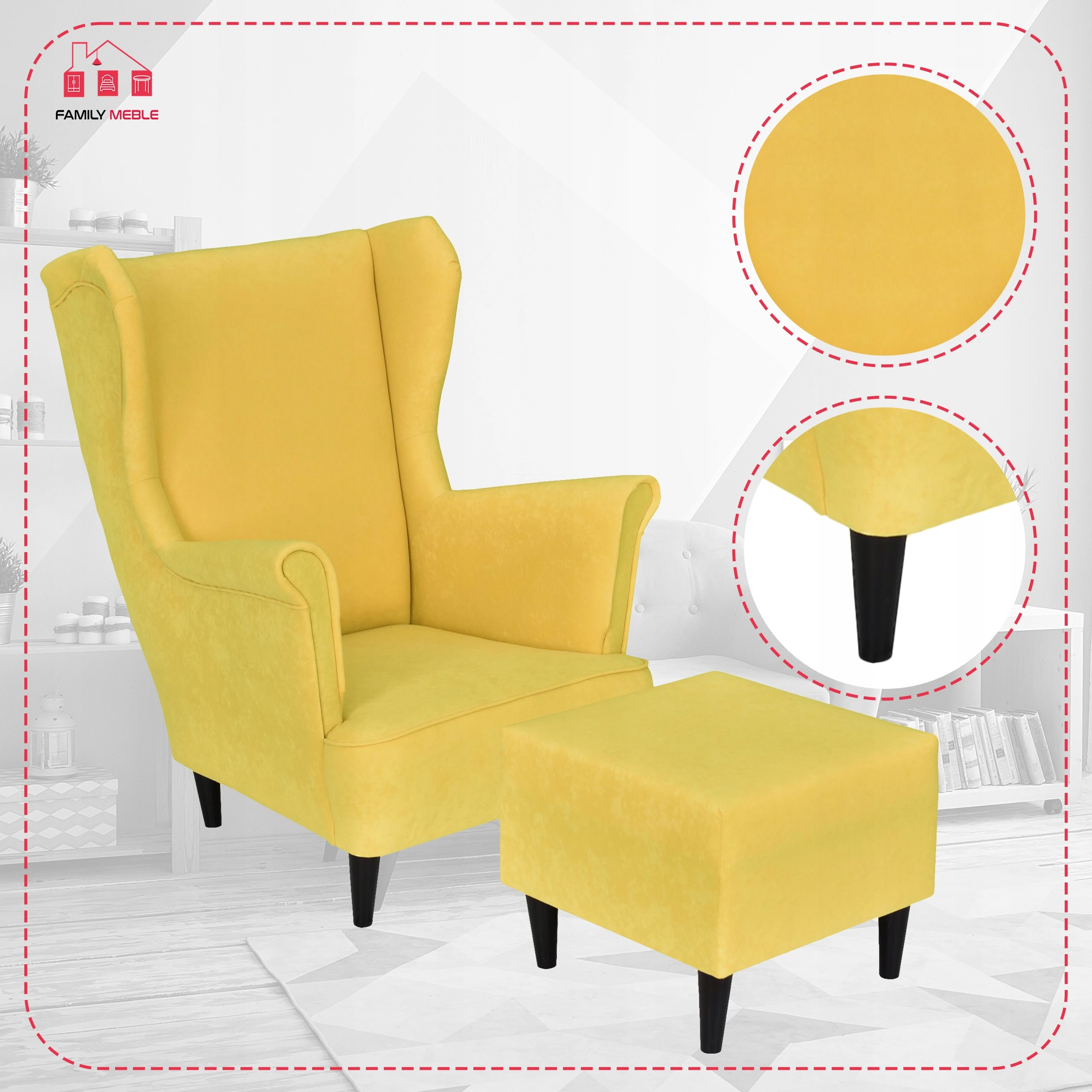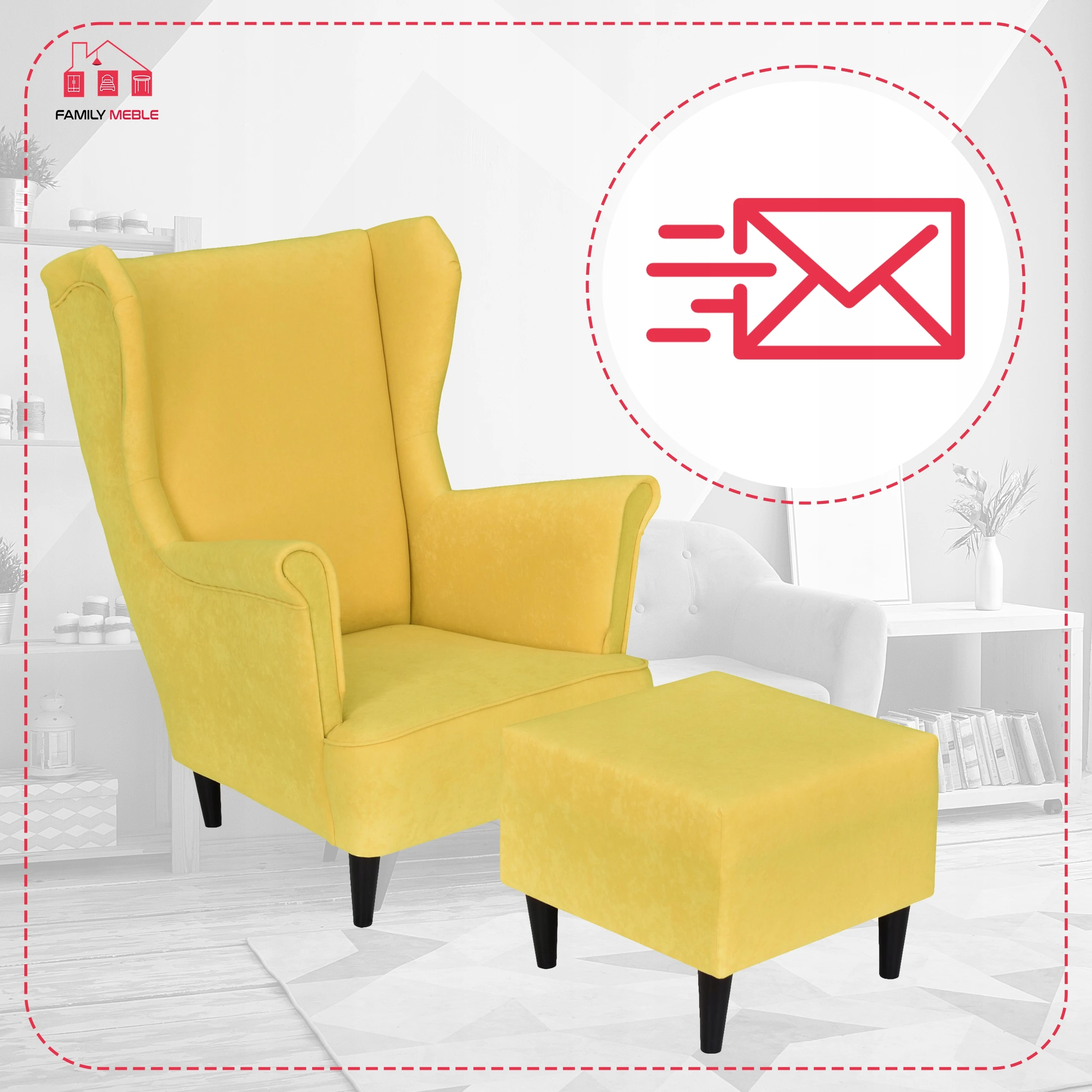 Fotel uszak MAX z podnóżkiem skandynawski Family Meble cytrynowy żółty