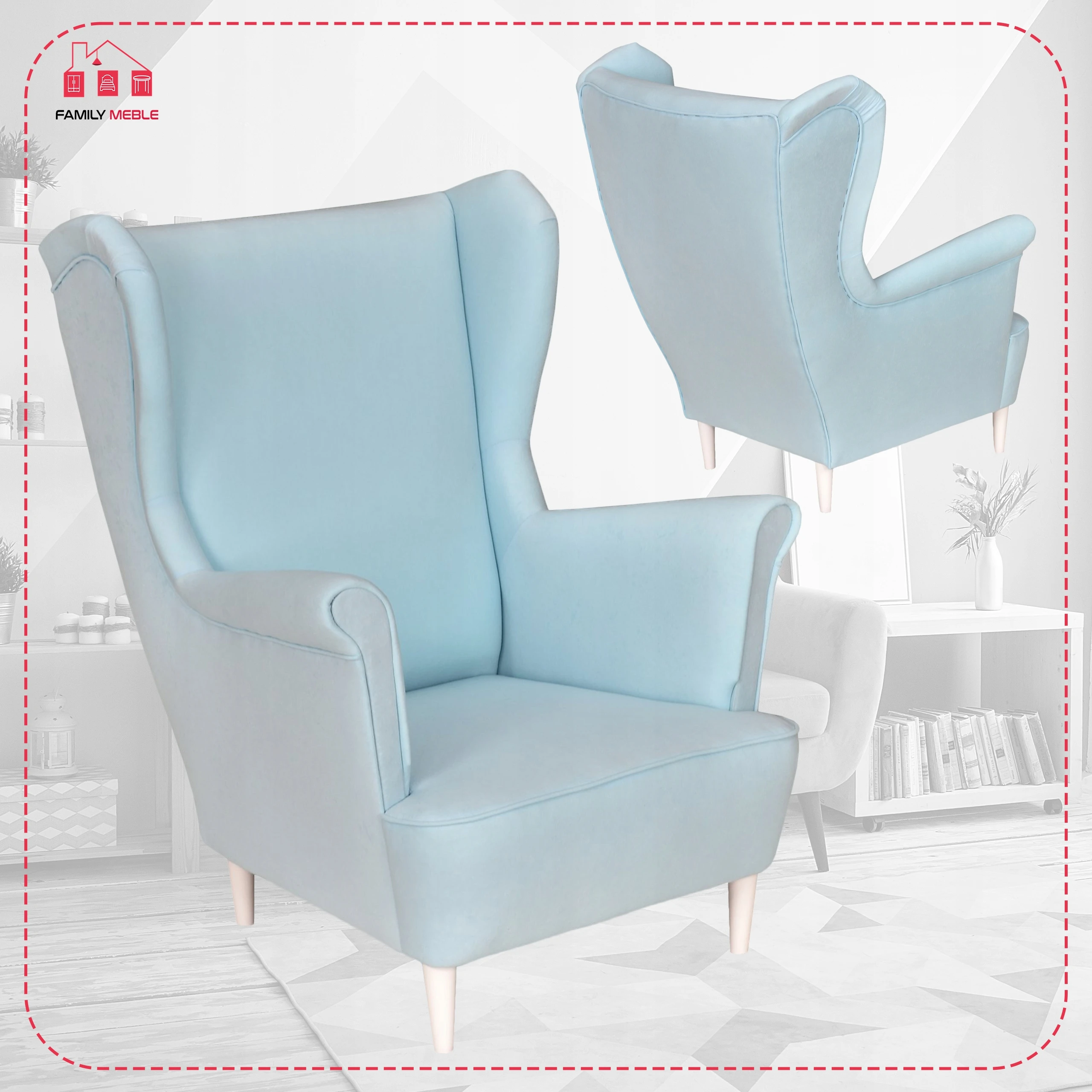 Fotel uszak Max skandynawski Family Meble błękitny jasno niebieski PRO