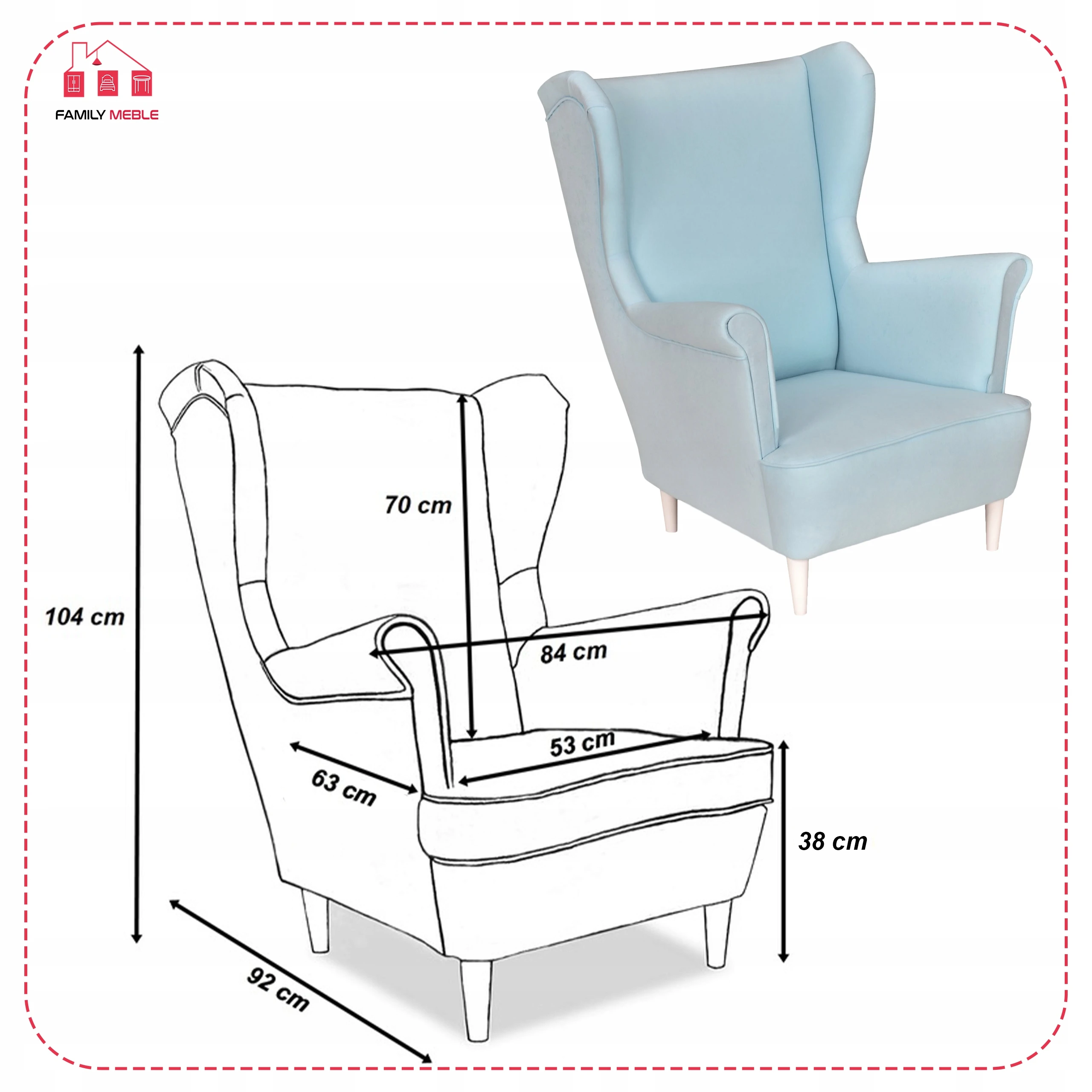 Fotel uszak skandynawski Max Family Meble Składając zamówienie w naszym sklepie internetowym z kodem OLX2023 otrzymasz rabat w wysokości 10% na całe zamówienie! Swoją niezwykłą nazwę fotel Uszak zawdzięcza charakterystycznym „uszom”, czyli połączonym z podłokietnikami bokom oparcia. Choć powstał setki lat temu (prawdopodobnie na dworze Ludwika XIV), wciąż jest popularny. Dzięki łagodnym liniom i klasycznemu kształtowi prezentuje się bardzo elegancko. Zastosowanie dwóch rodzajów obicia (wzorzyste i jednokolorowe) sprawia, że bez trudu dopasuje się do każdego wystroju wnętrza. Do tego jest wyjątkowo wygodny. Wybierz interesujący Cię materiał spośród kilkudziesięciu modeli naszych kolekcji. Każda tkanina i oraz kolor nóżek z oferty są w tej SAMEJ CENIE. Meble wysyłamy w ciagu 5-10 dni, za pobraniem w cenie 119 zł - zapłać za towar przy odbiorze. Oferujemy sprzedaż na RATY w atrakcyjnym finansowaniu - zapytaj sprzedawce. Specyfikacja: - Fotel Uszak z kolekcji Max - Typ: mebel wolnostojący (tył obity tkaniną) - Stelaż: wzmocniony listwami bukowymi i sklejką - Pianka: T-30 - Siedzisko: na sprężynie falistej - Oparcie: profilowane (zdobienie trzema guzikami materiałowymi) - Kolor nóżek: do wyboru* - Kolor obicia: do wyboru* - Zdobienie żyłką: boczki, siedzisko oraz tył - Poduszka/siedzisko posiada zamek błyskawiczny, który umożliwia wypranie pokrowca Wymiary: - wysokość całkowita: 104 cm - głębokość całkowita: 92 cm - szerokość całkowita: 84 cm - głębokość siedziska: 63 cm - szerokość siedziska: 53 cm - wysokość siedziska: 41 cm - długość podłokietnika: 50 cm - wysokość nóżek: 13 cm *Podaj wybrane kolory w Wiadomości do sprzedającego. Zapraszamy do zapoznania się z ofertą na naszej stronie internetowej: family-meble.pl Składając zamówienie w naszym sklepie internetowym z kodem OLX2023 otrzymasz rabat w wysokości 10% na całe zamówienie Sprzedaż tylko wysyłkowa, możliwy odbiór osobisty 63-600 Kępno Tkaniny Zamieszczone zdjęcia mają charakter poglądowy – w rzeczywistości kolorystyka obić może się nieco różnić. Jest to zależne od indywidualnych ustawień monitora i/lub ekranu urządzenia mobilnego, na którym są wyświetlane.
