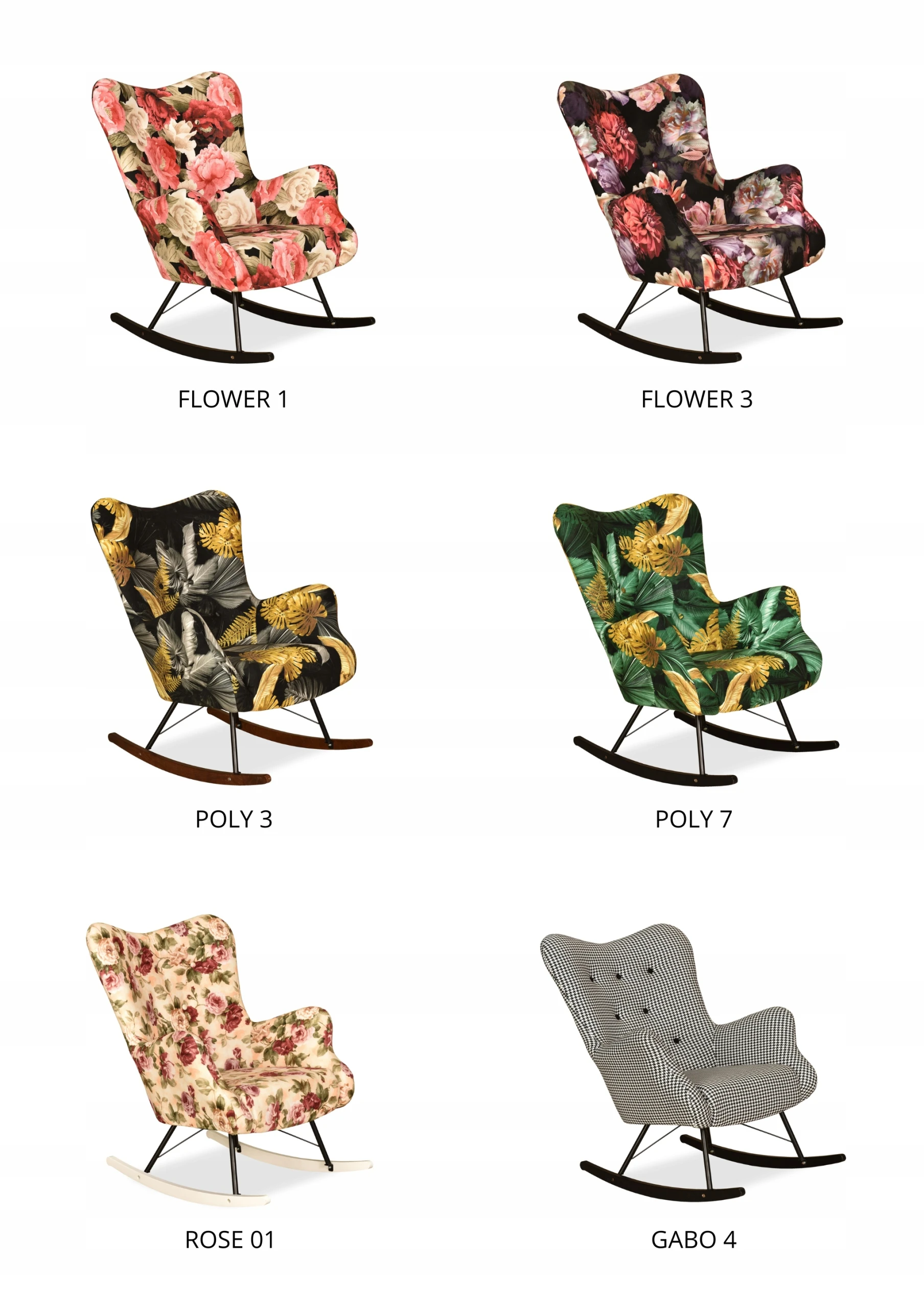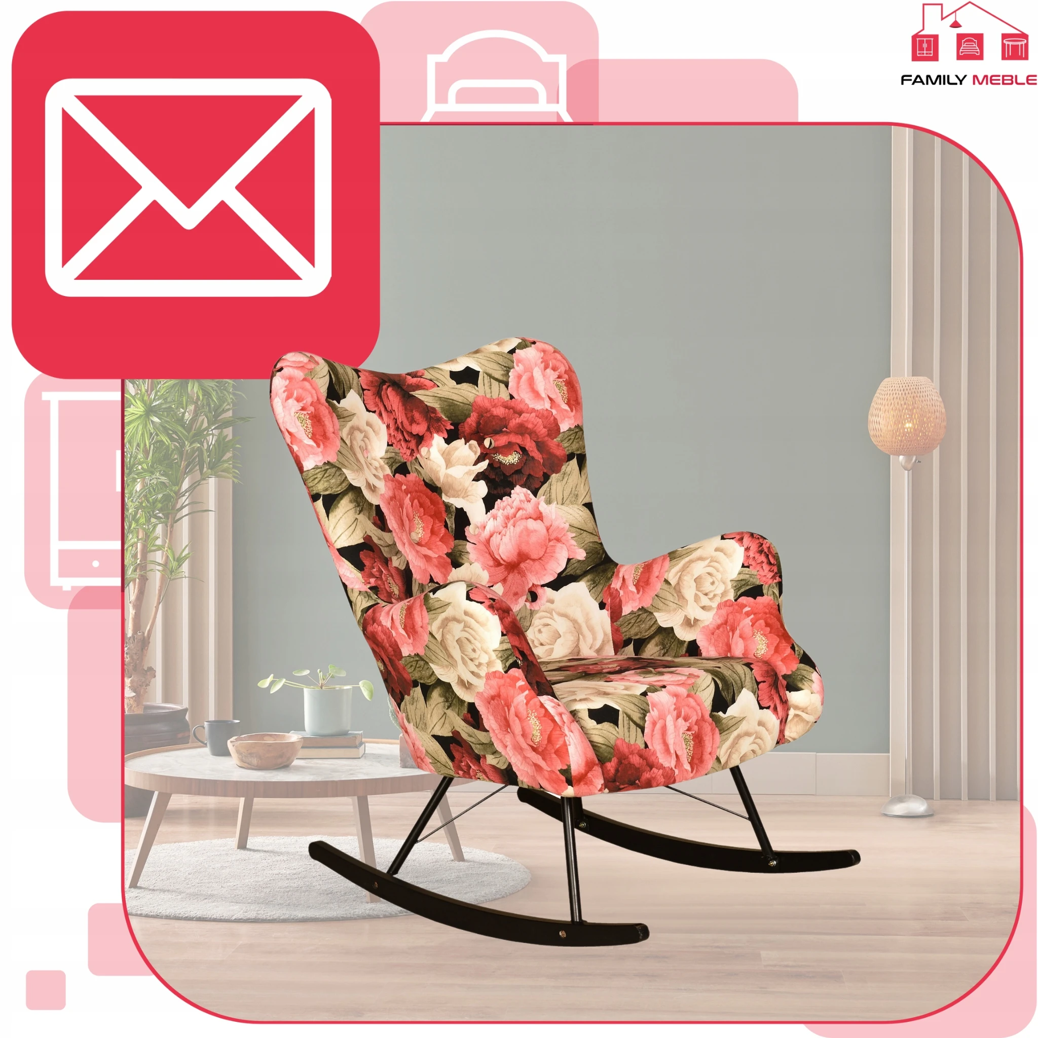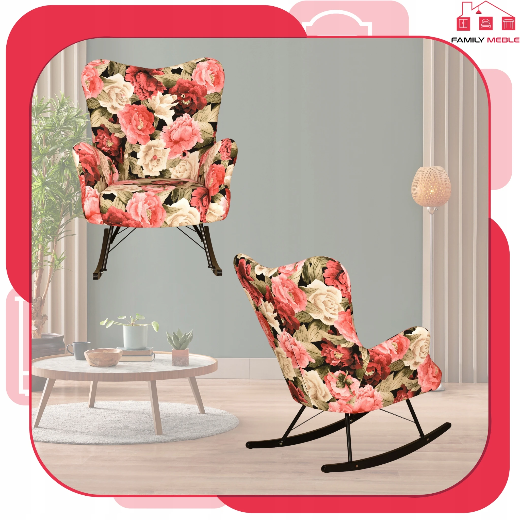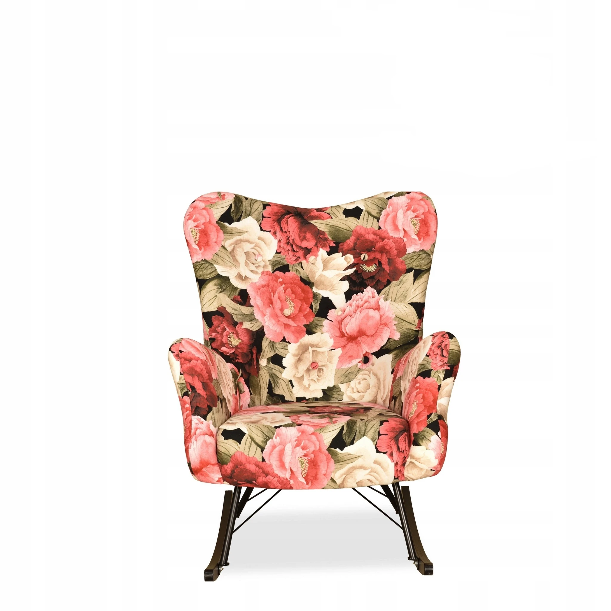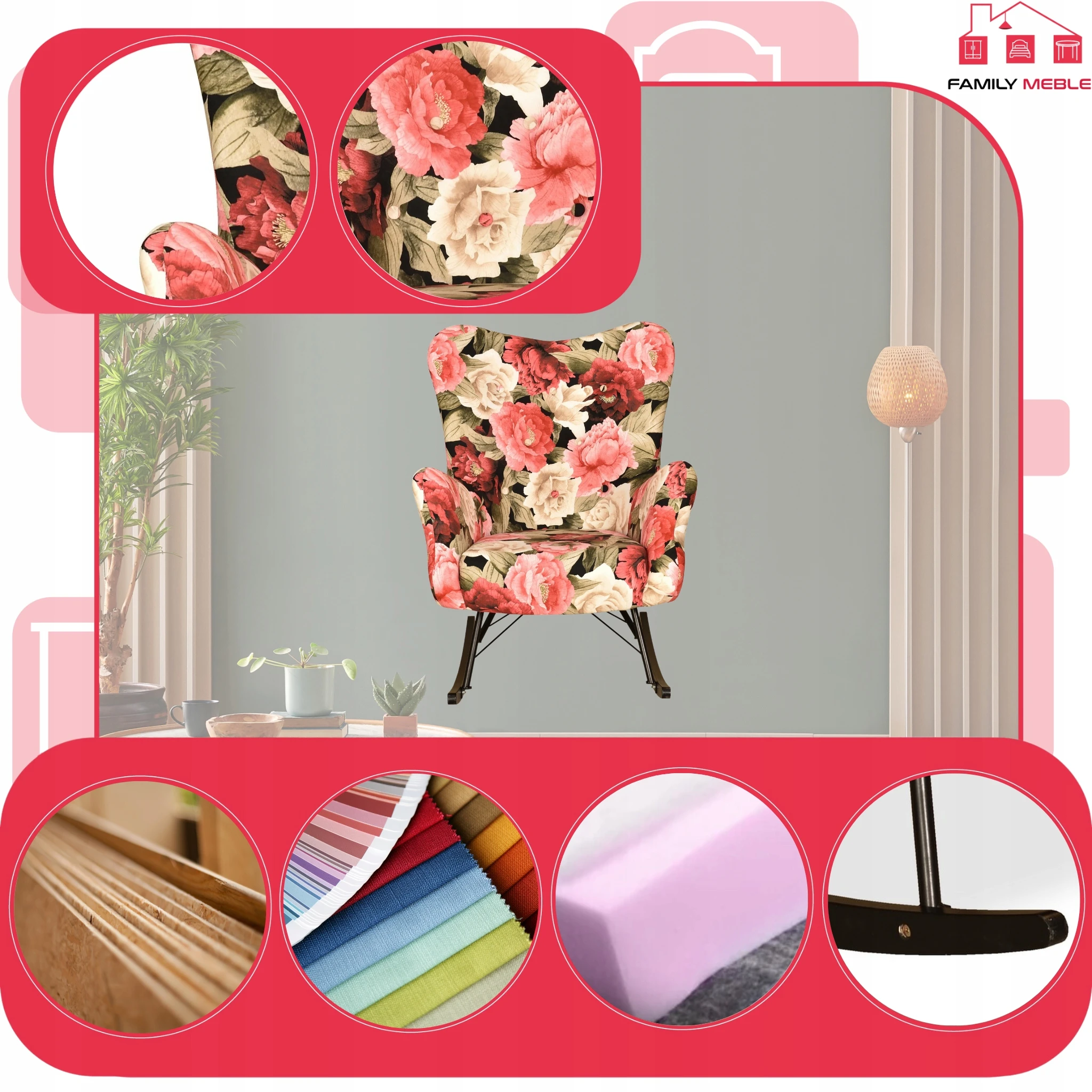 Fotel uszak skandynawski Luna Print bujany na płozach Family Meble kwiaty