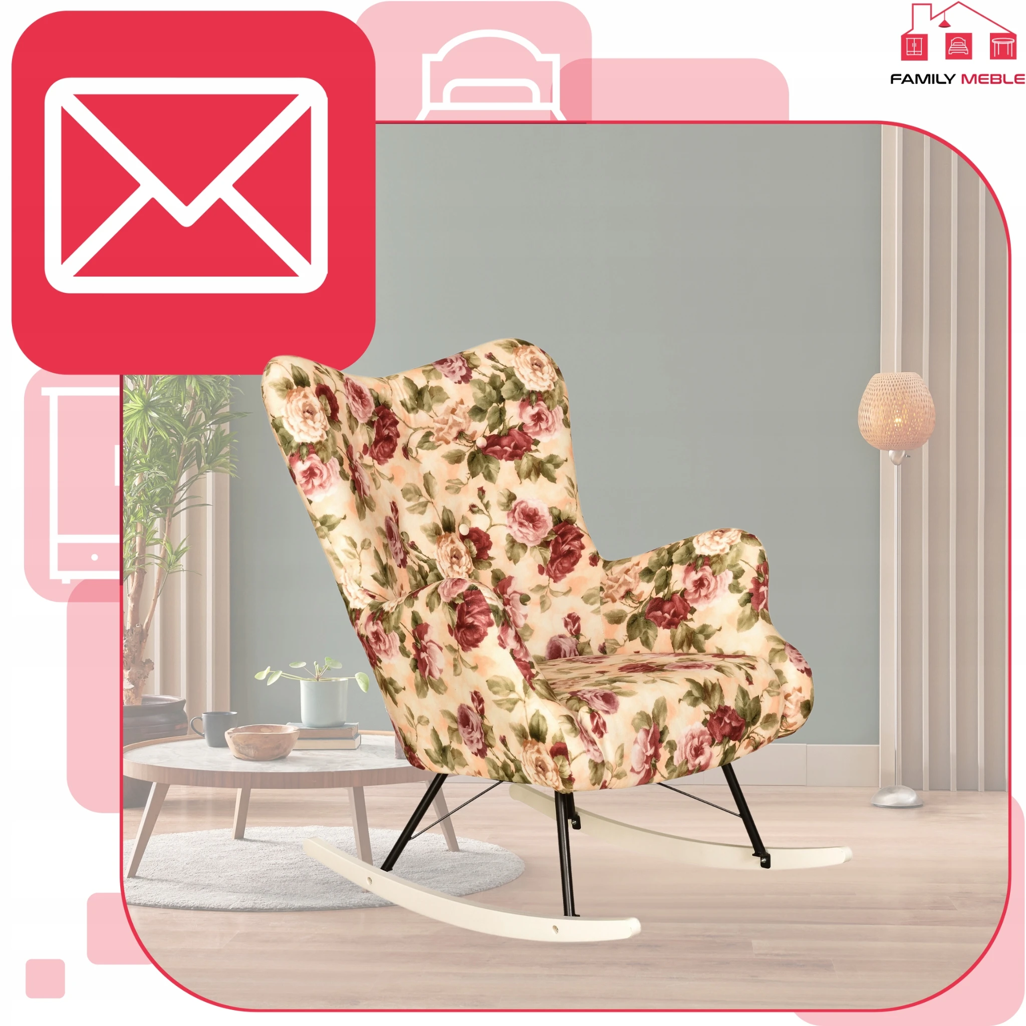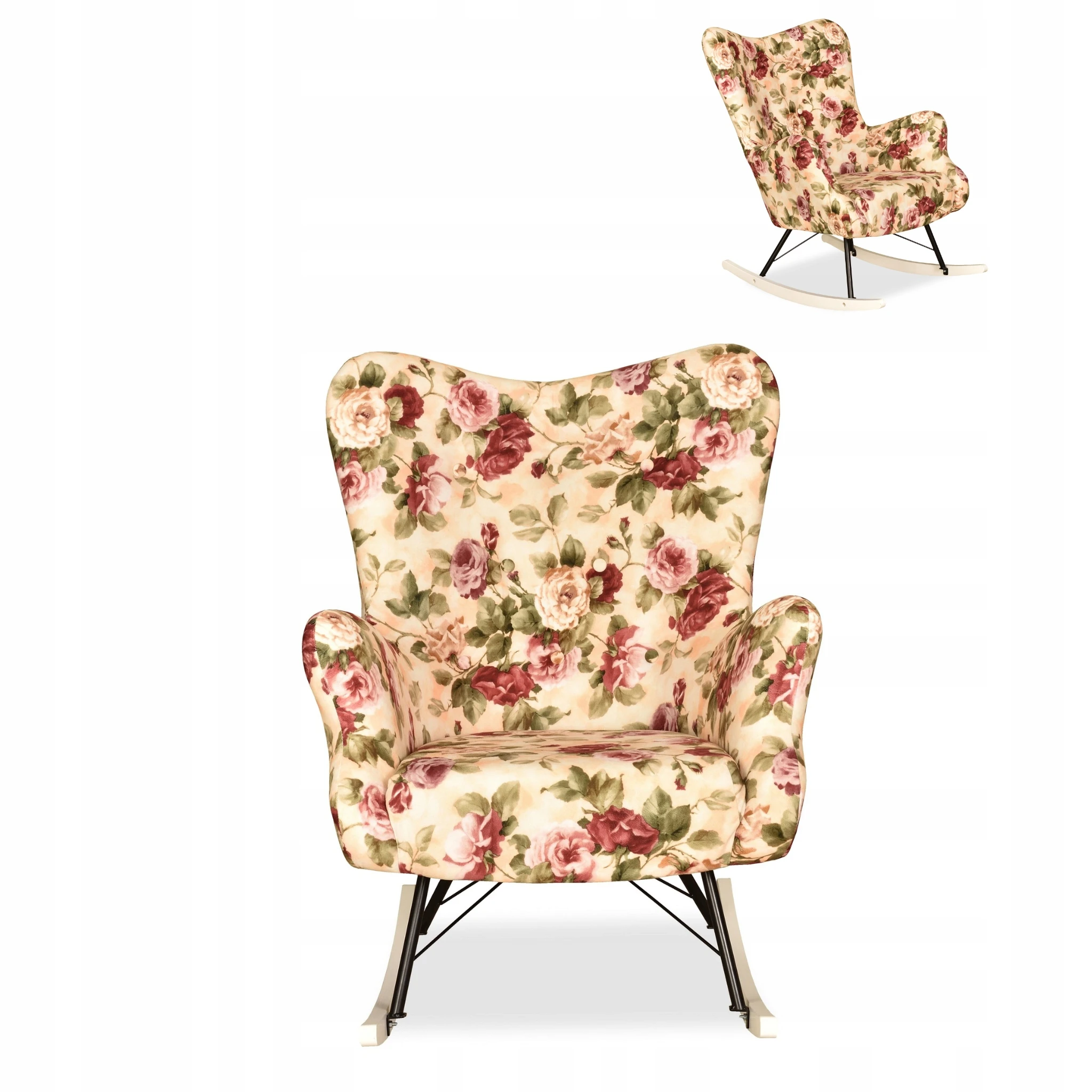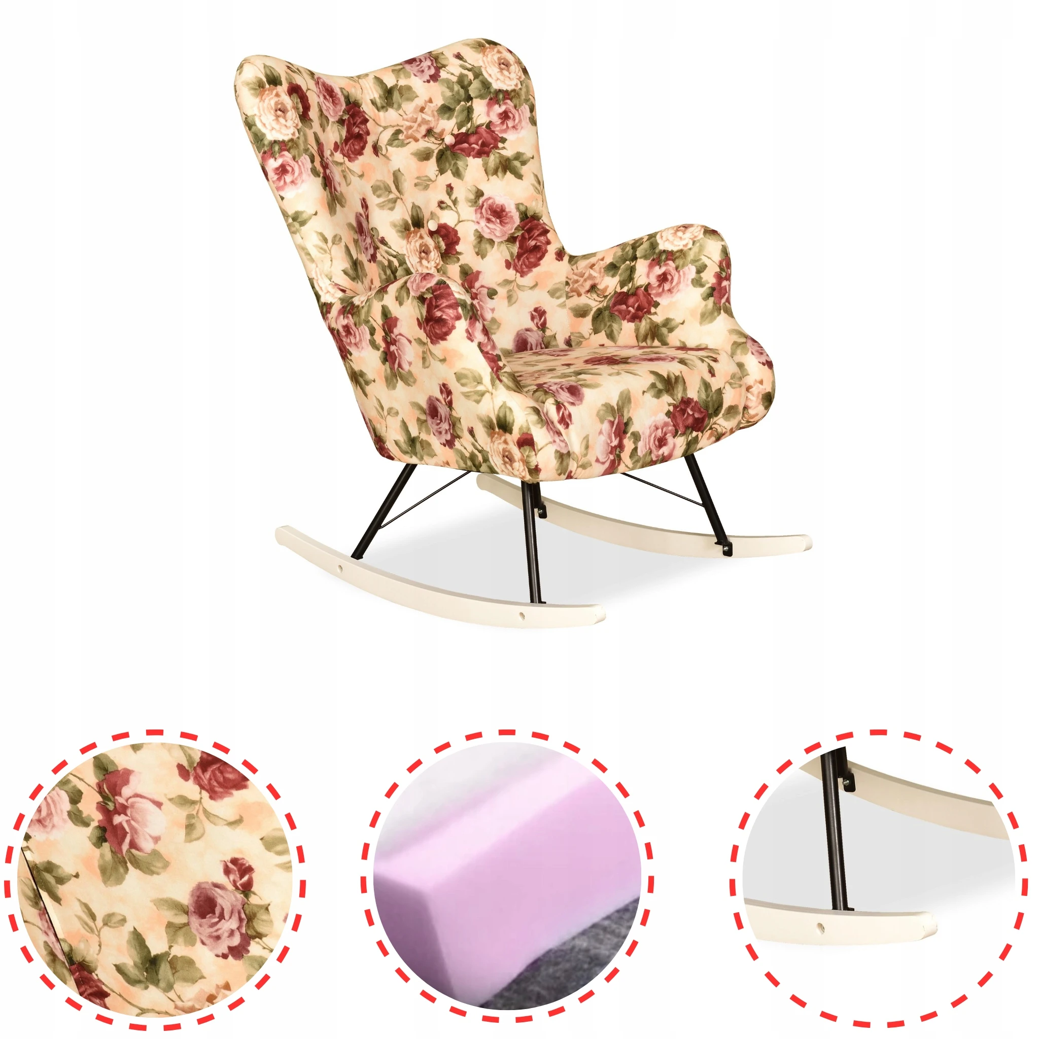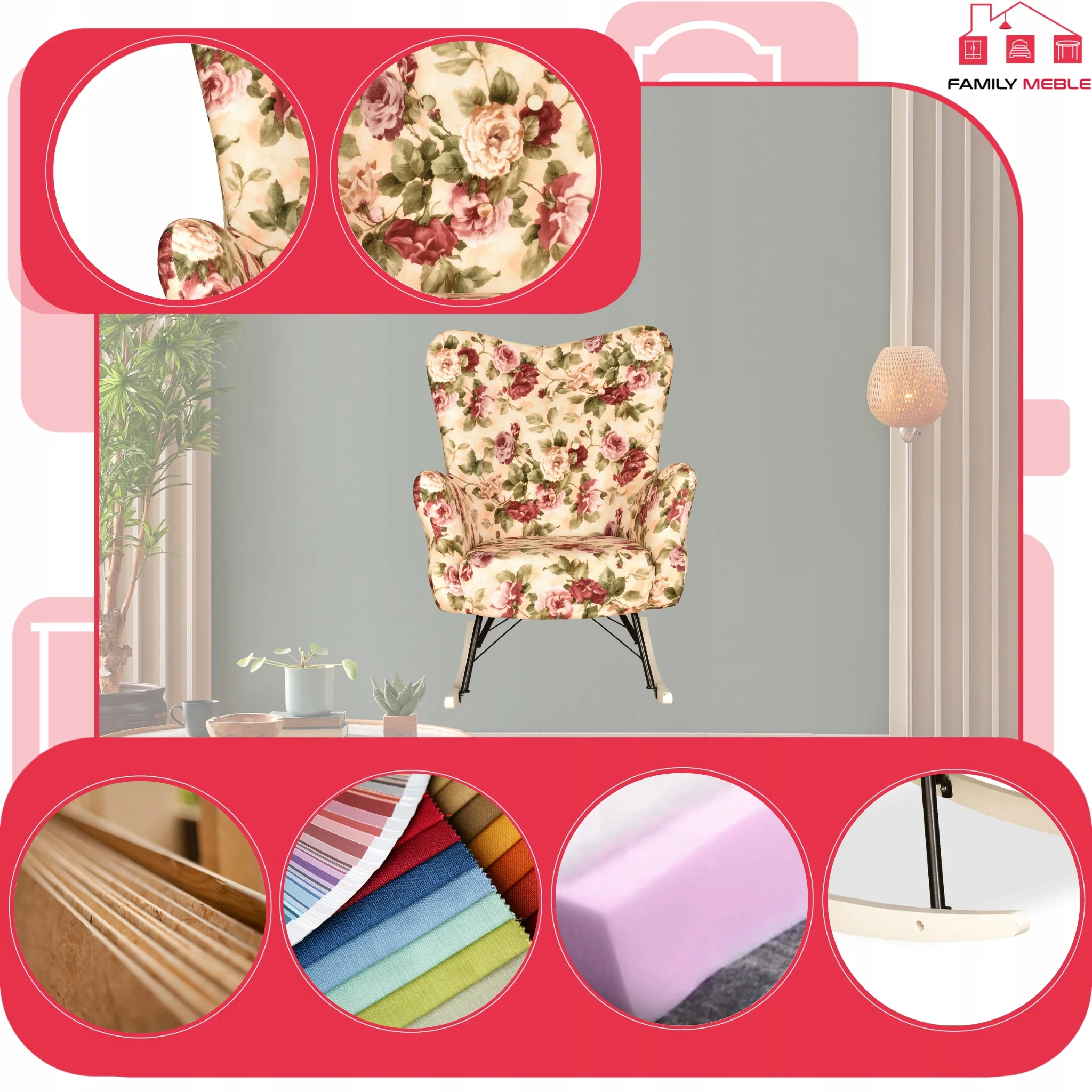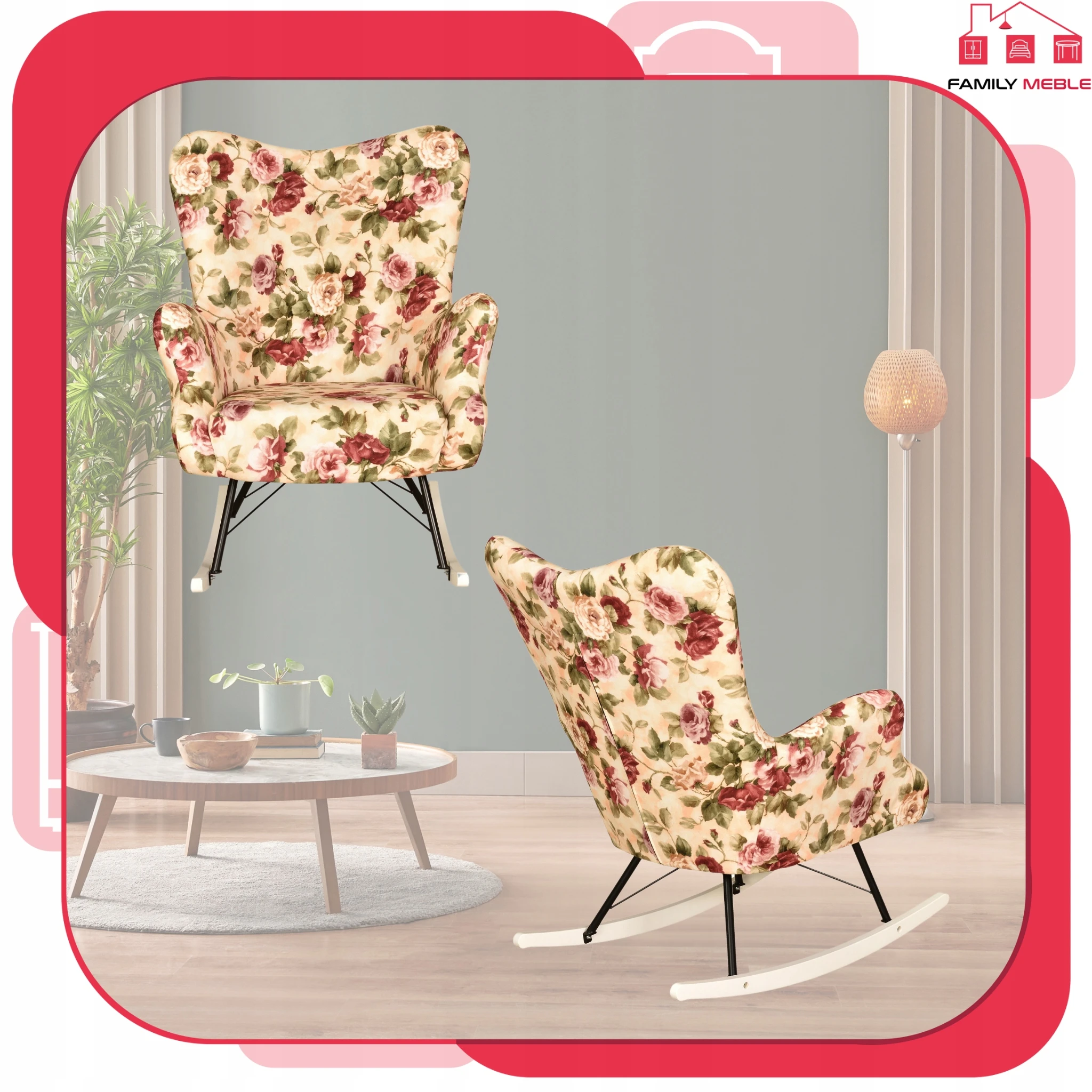 Fotel uszak skandynawski Luna Print bujany na płozach Family Meble róże ang