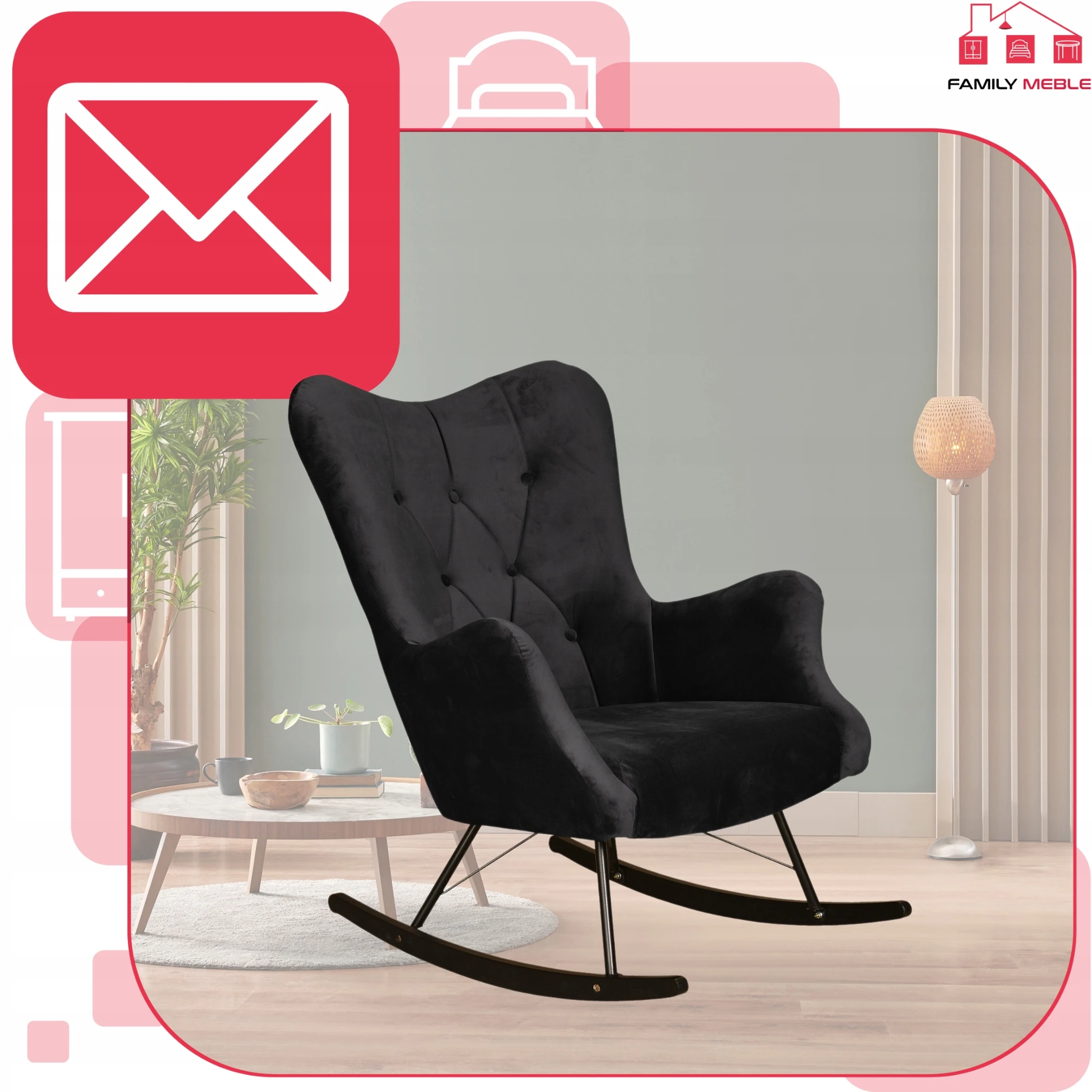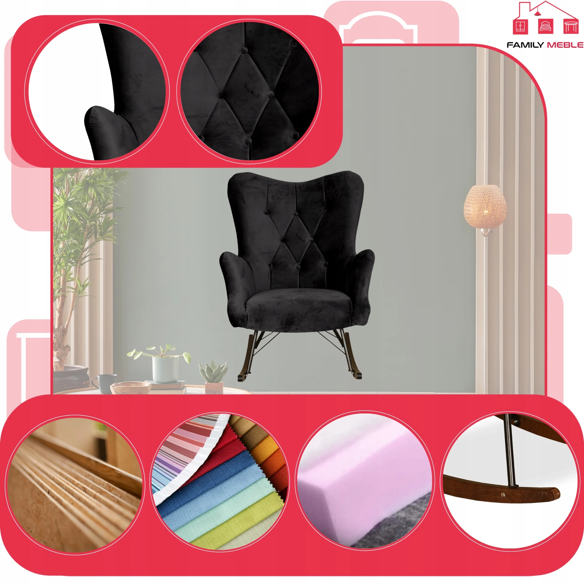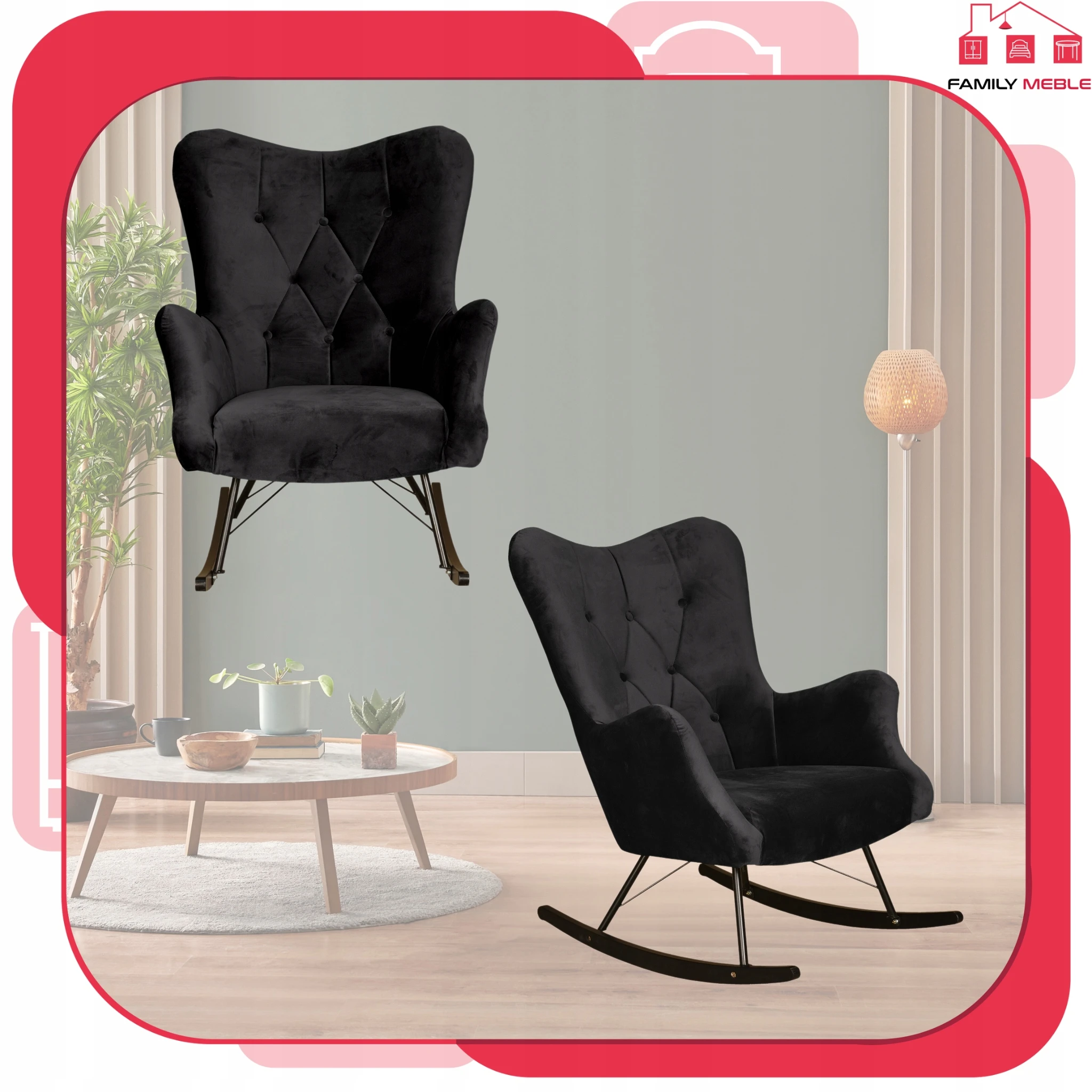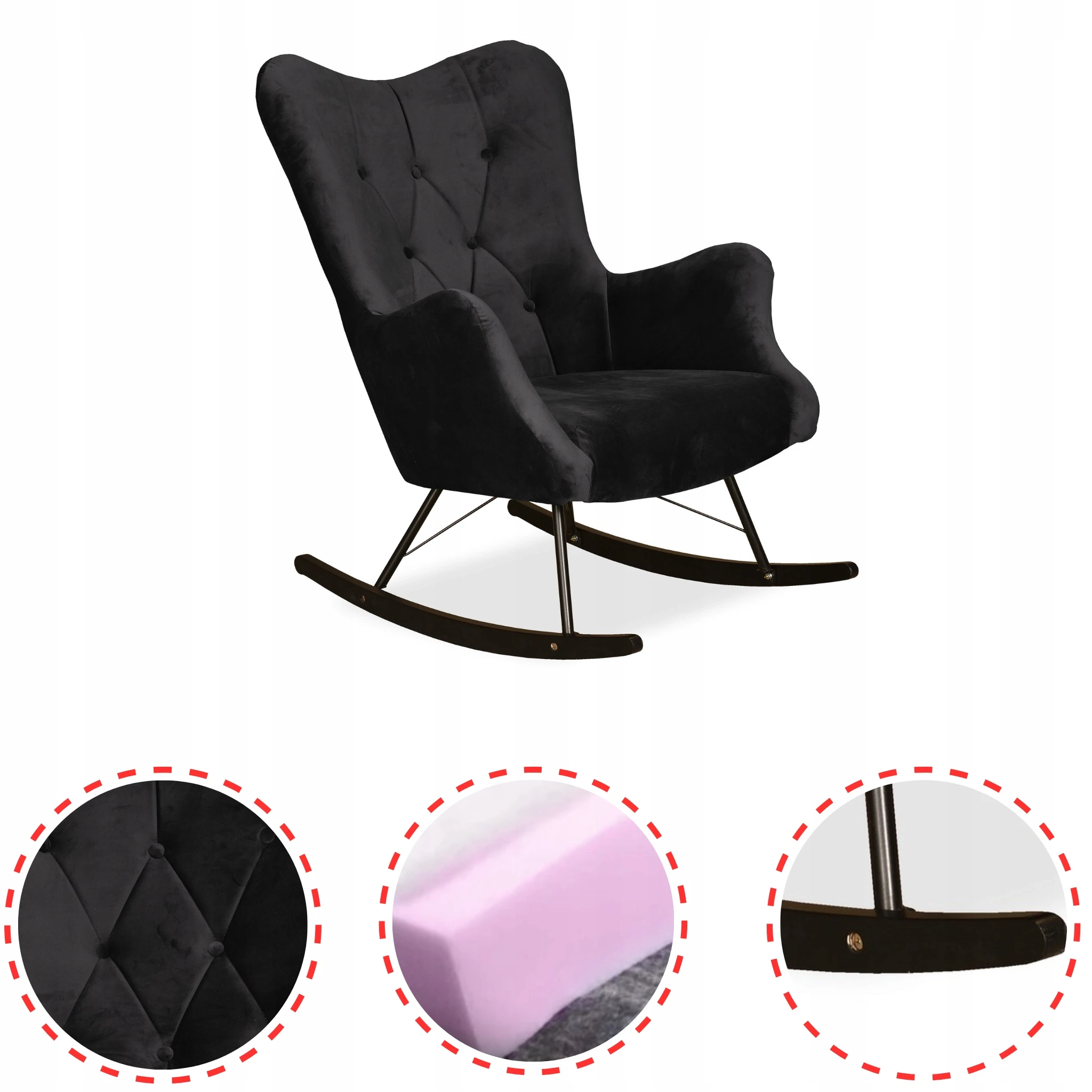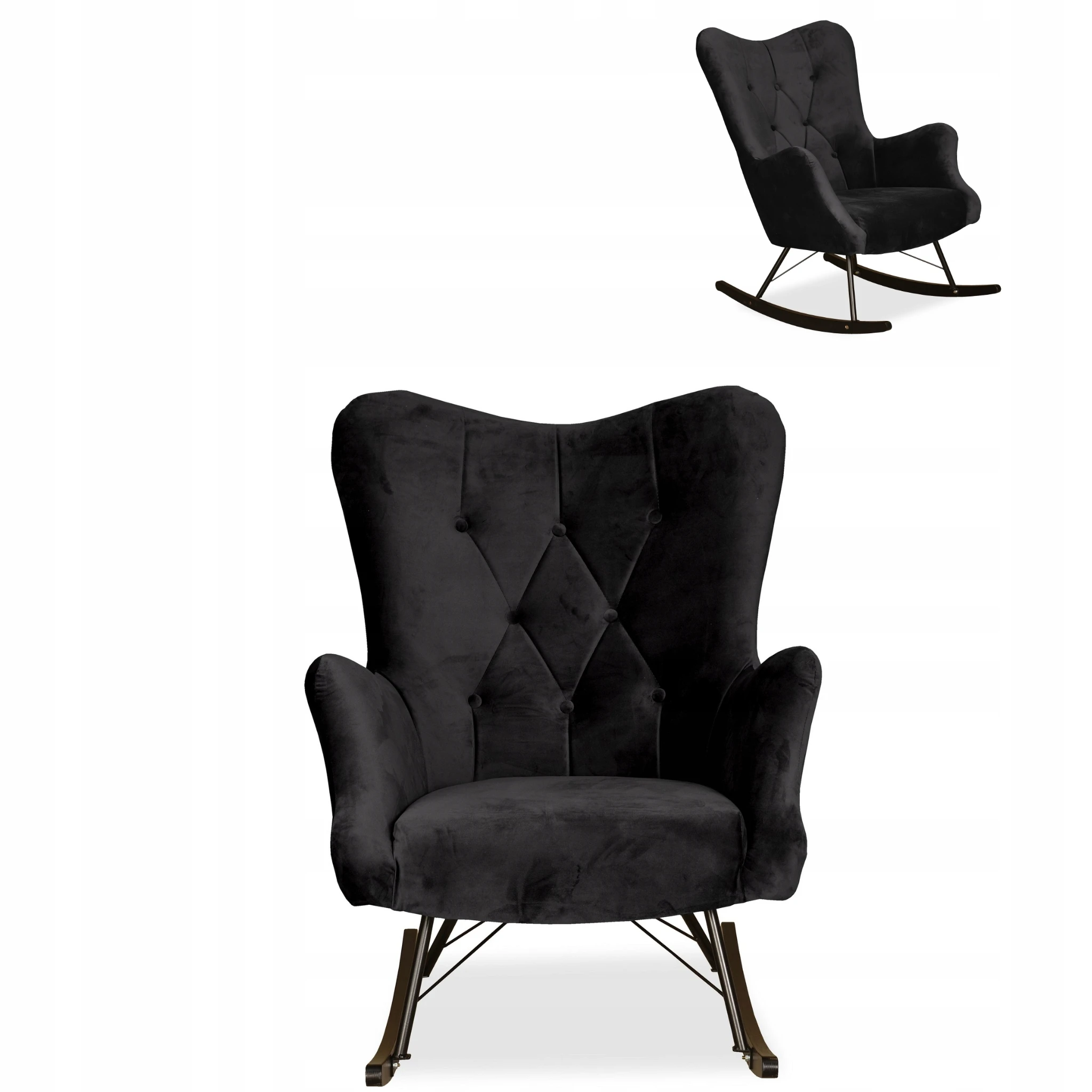 Fotel uszak skandynawski Luna bujany na płozach Family Meble głęboki czarny