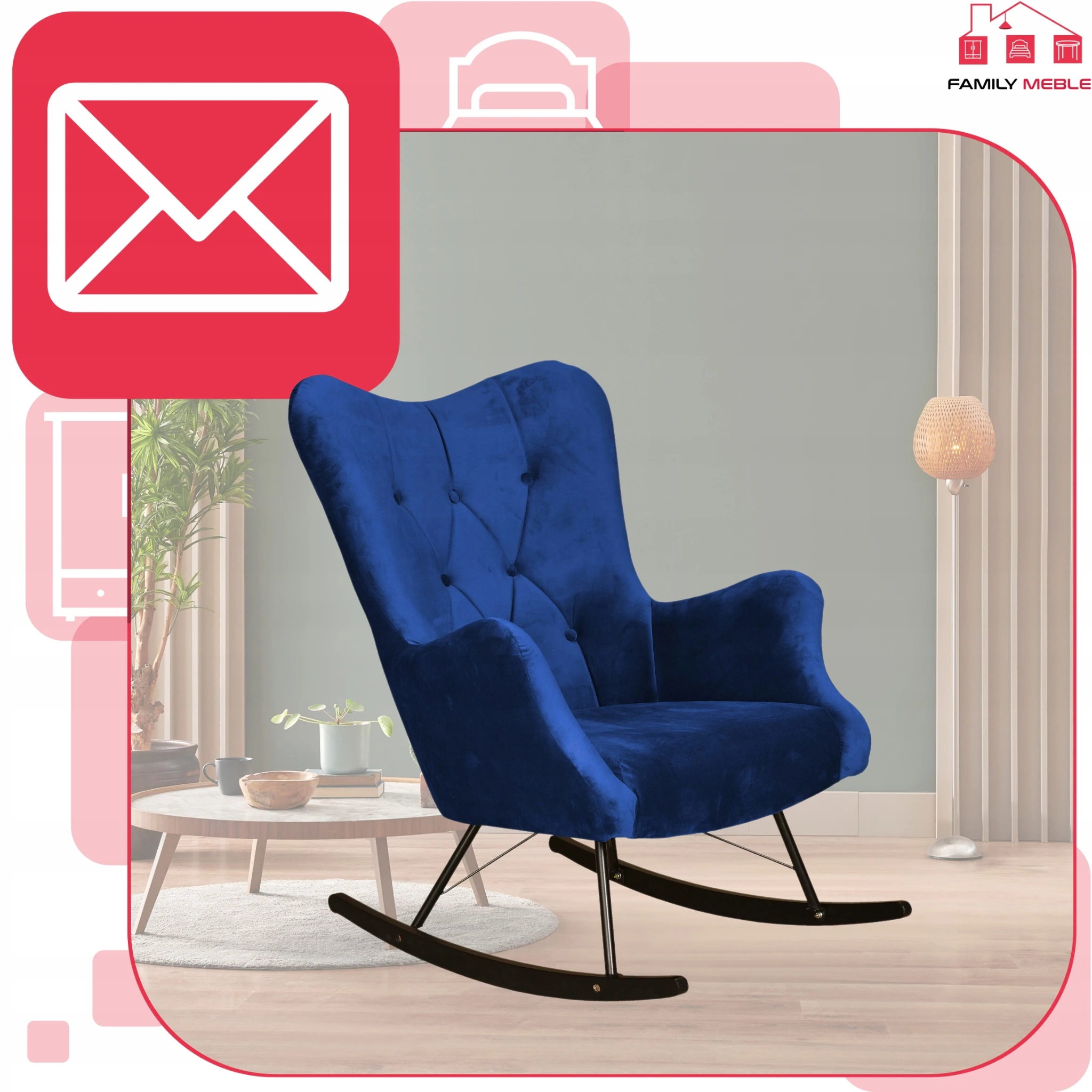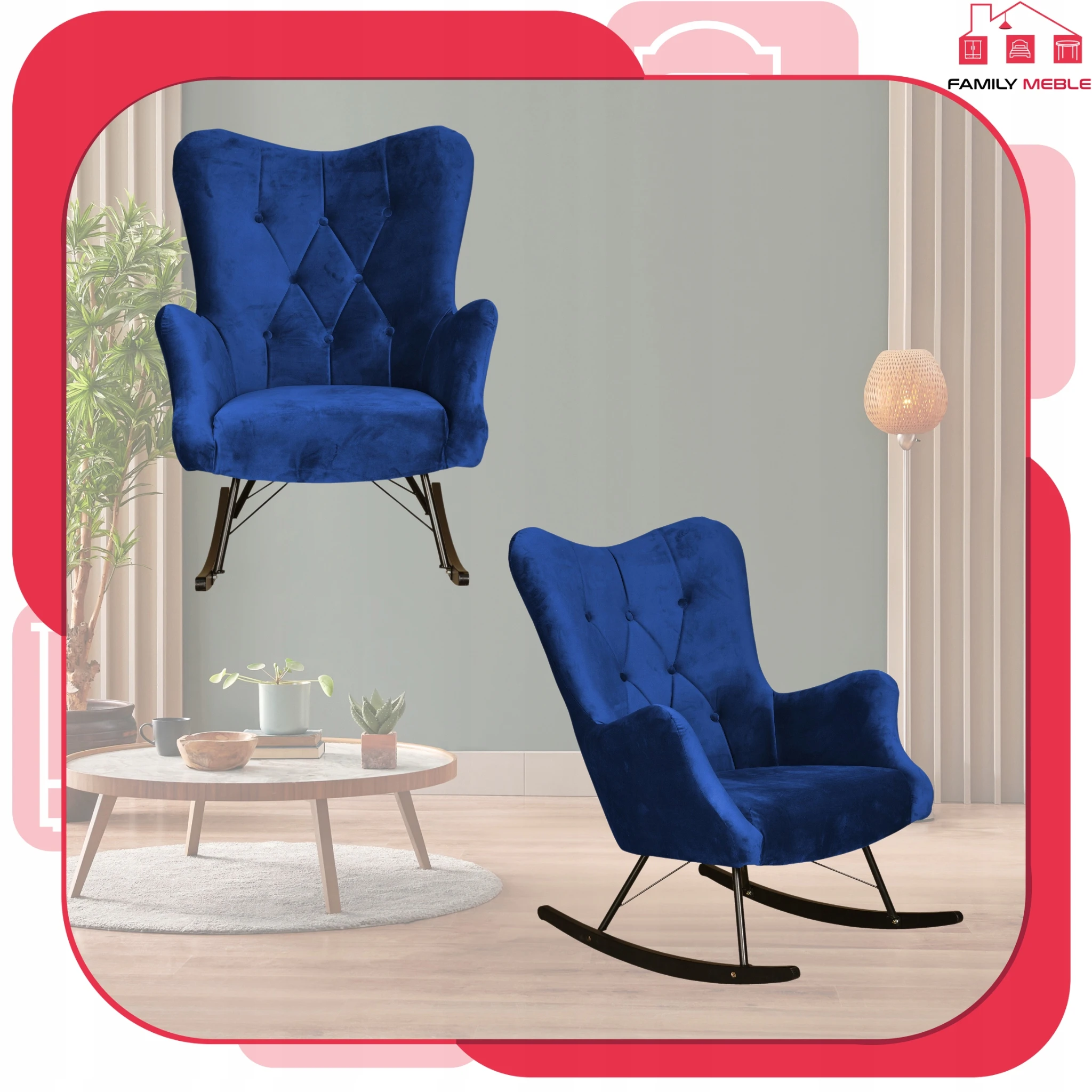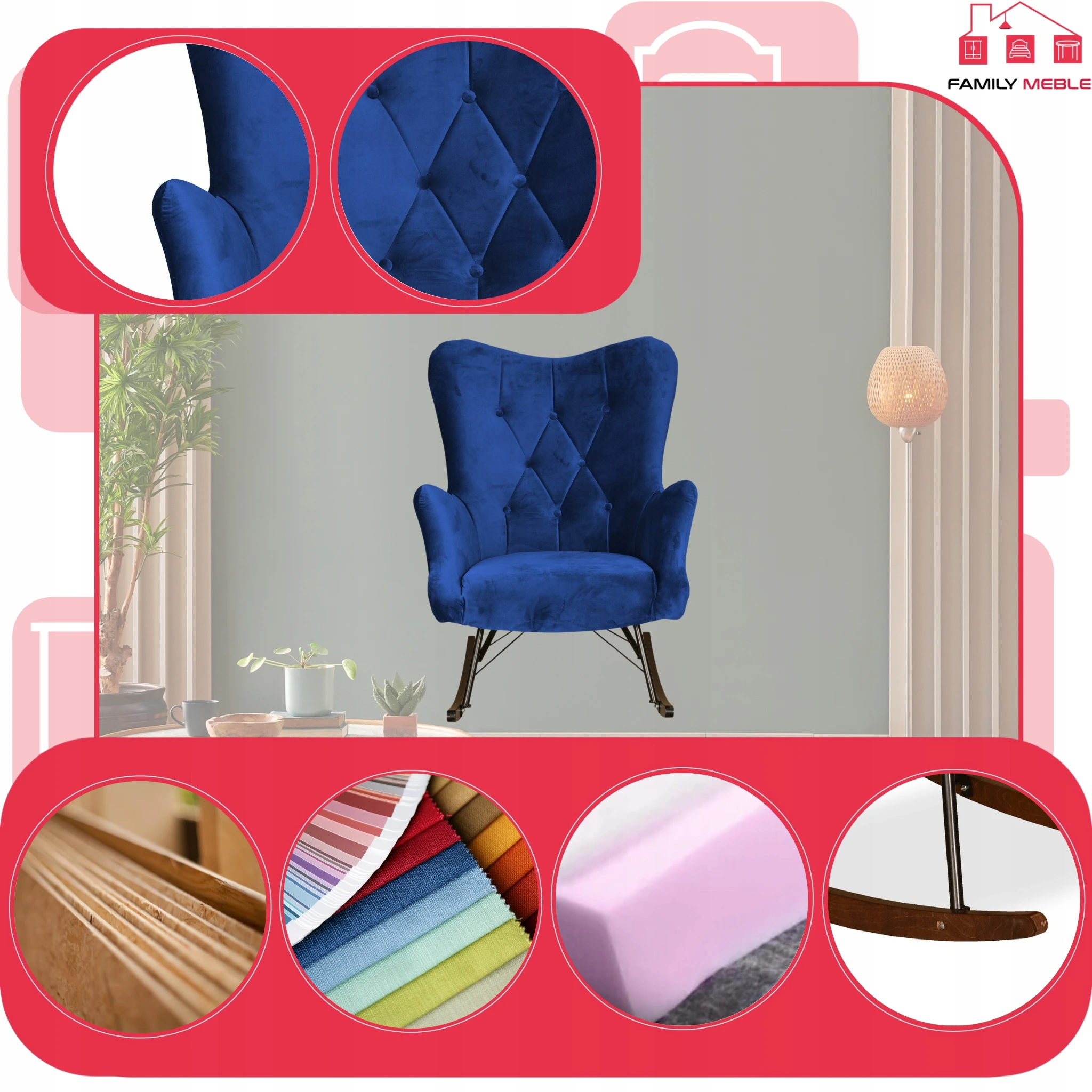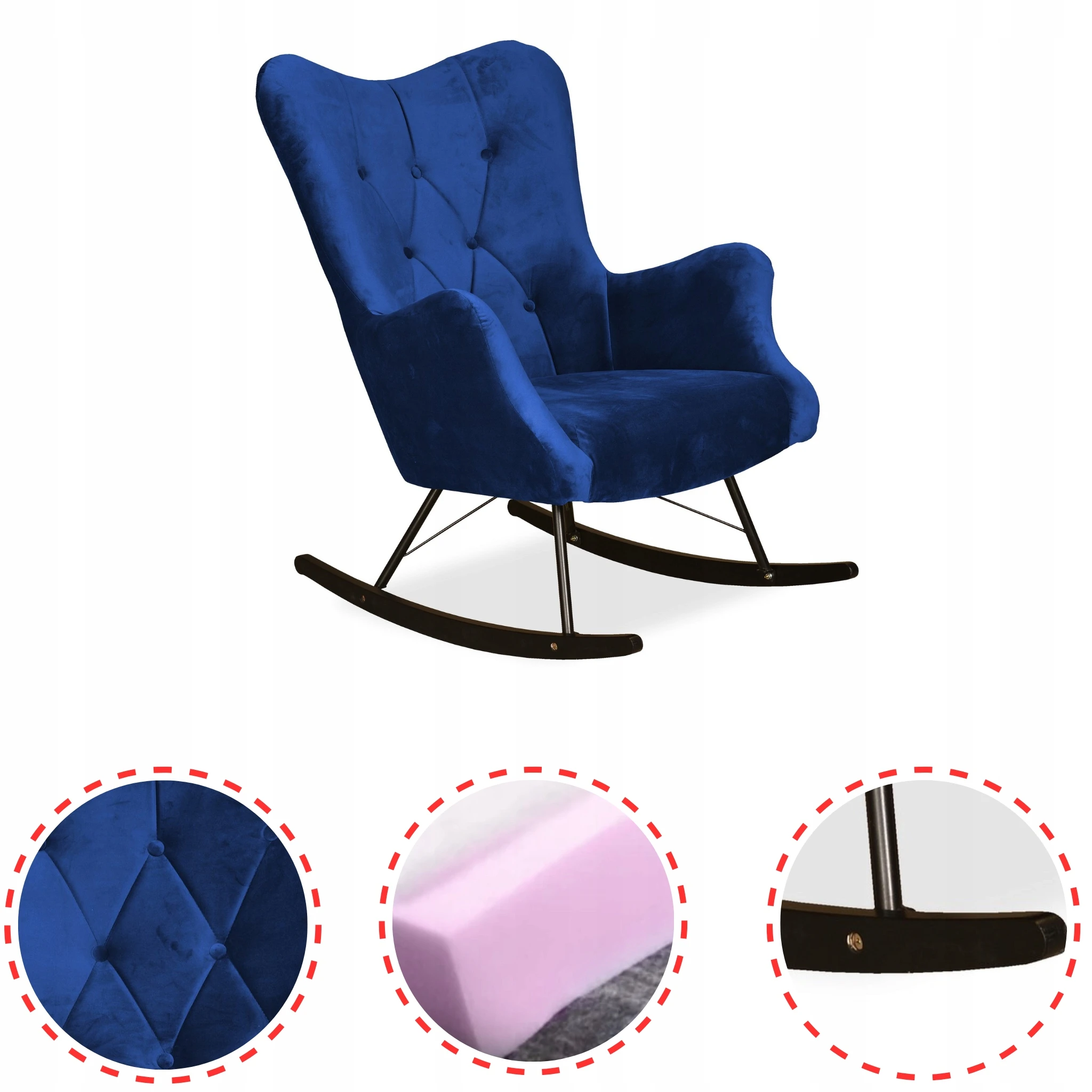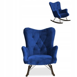 Fotel uszak skandynawski Luna bujany na płozach Family Meble indygo niebieski