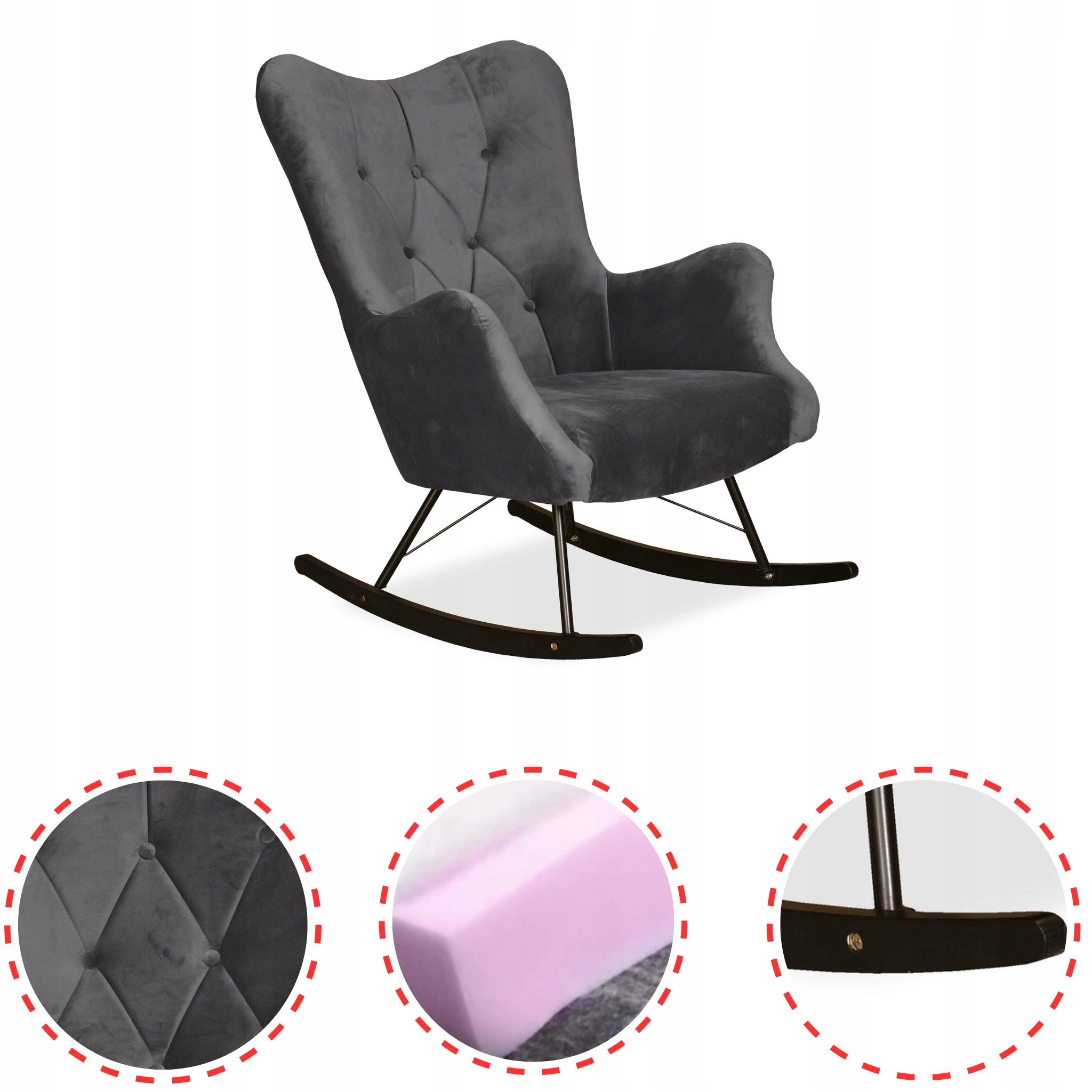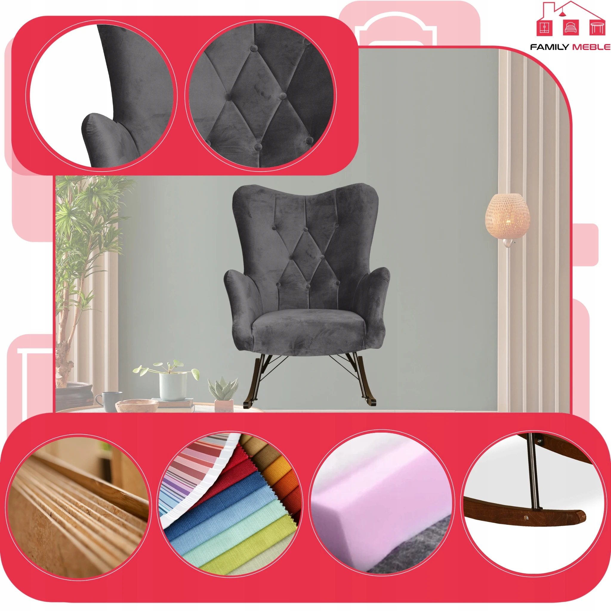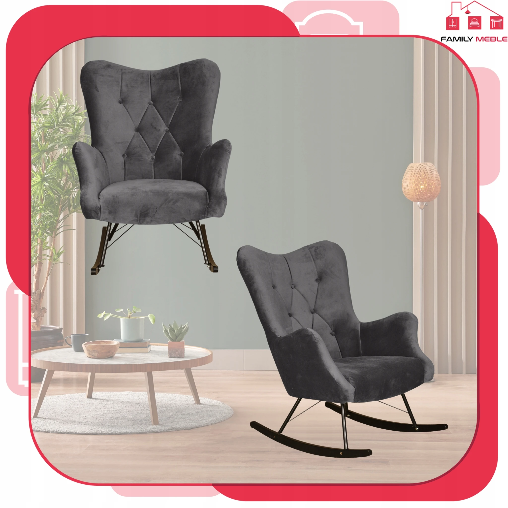 Fotel uszak skandynawski Luna bujany na płozach Family Meble szary grafitowy