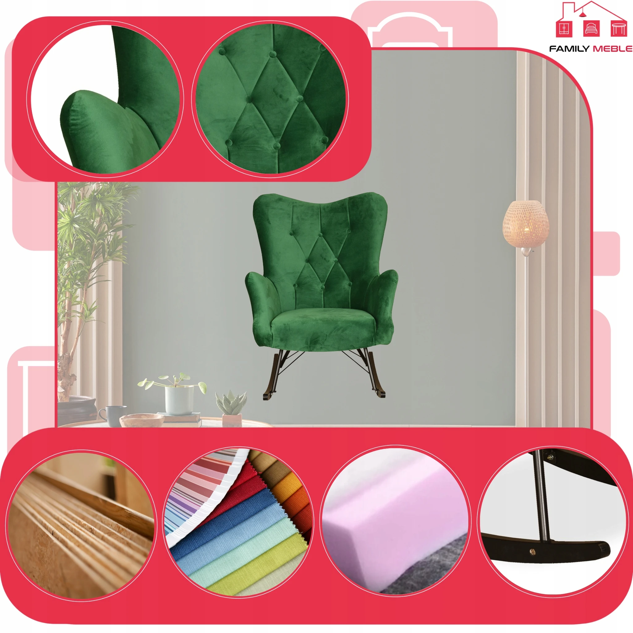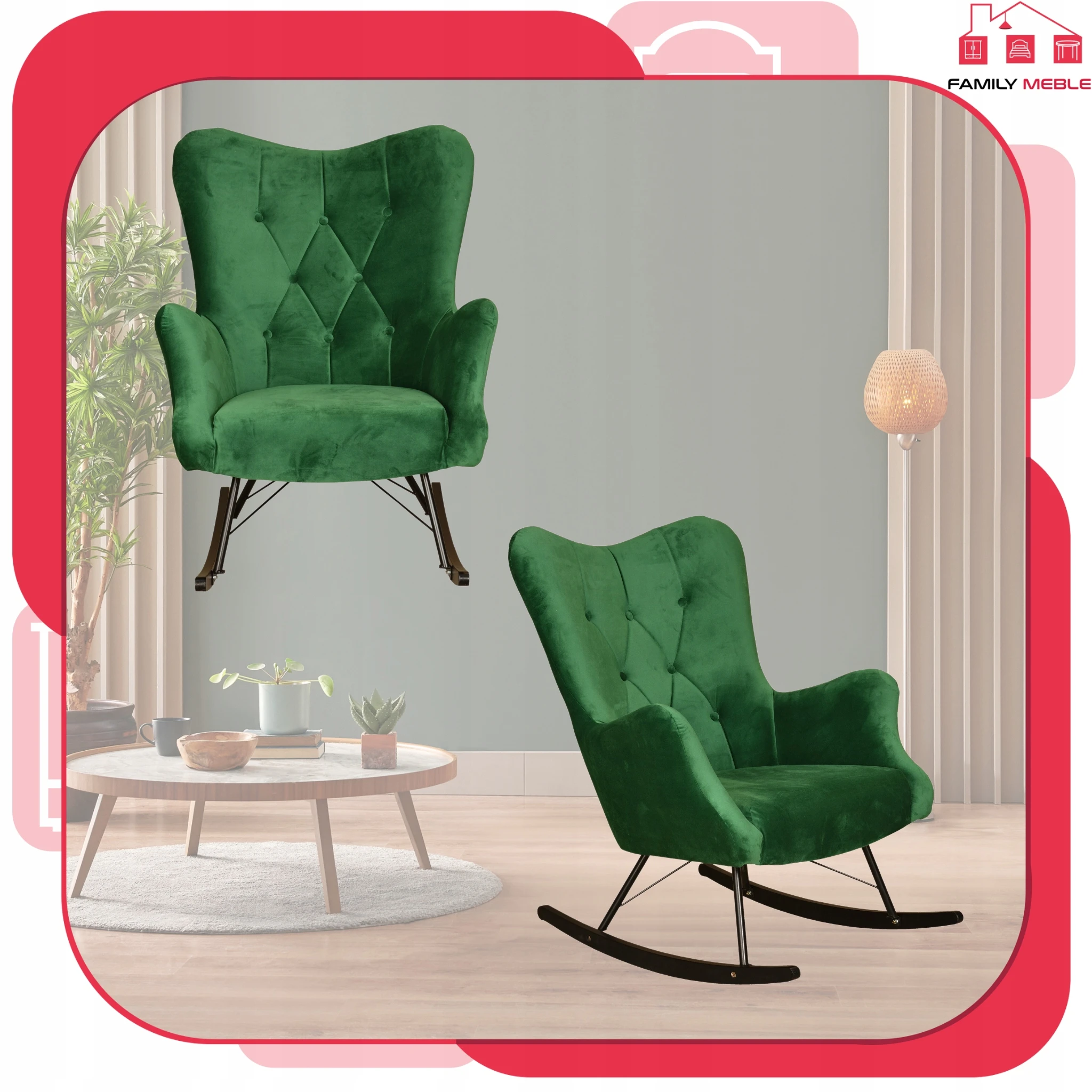 Fotel uszak skandynawski Luna bujany na płozach Family Meble zielony jasny