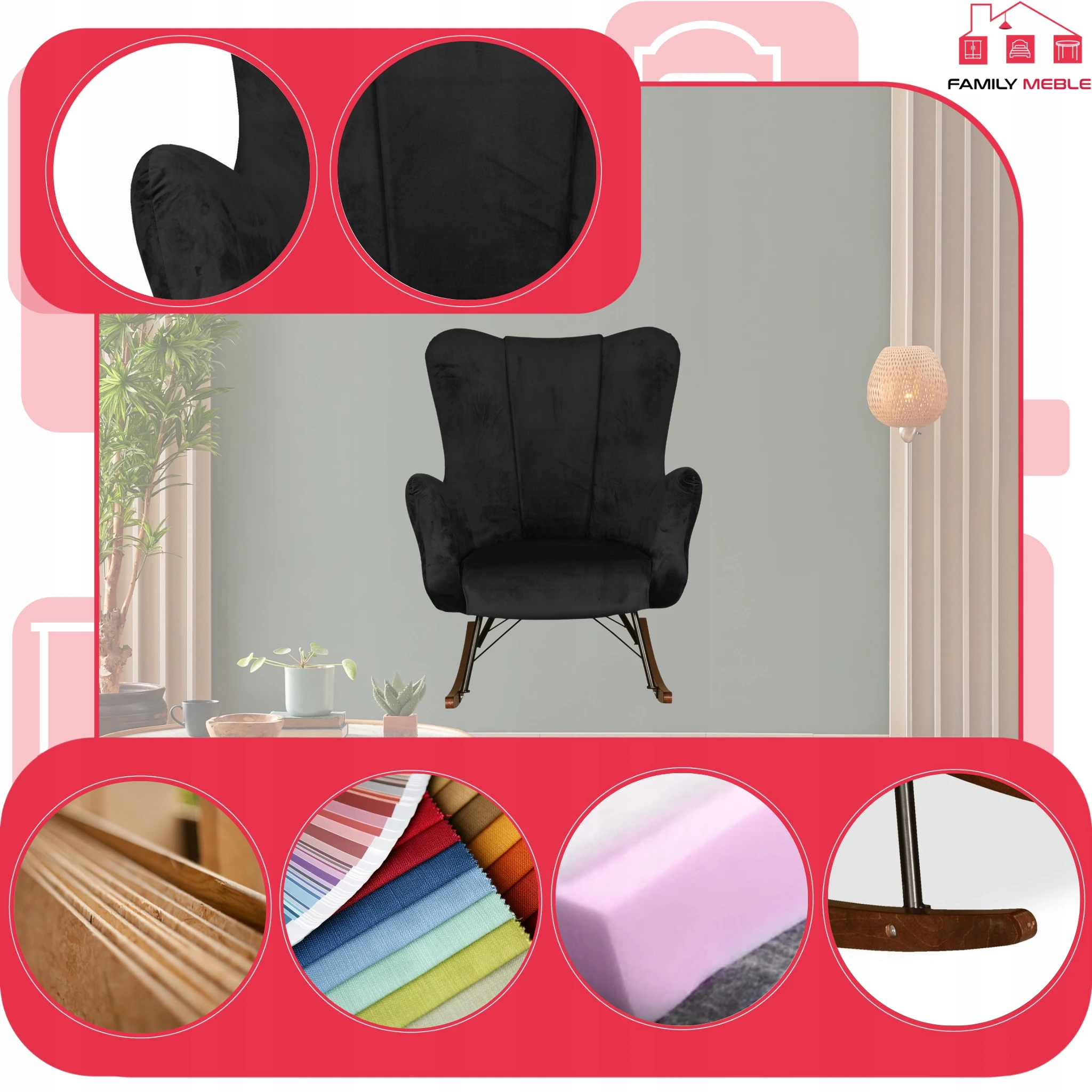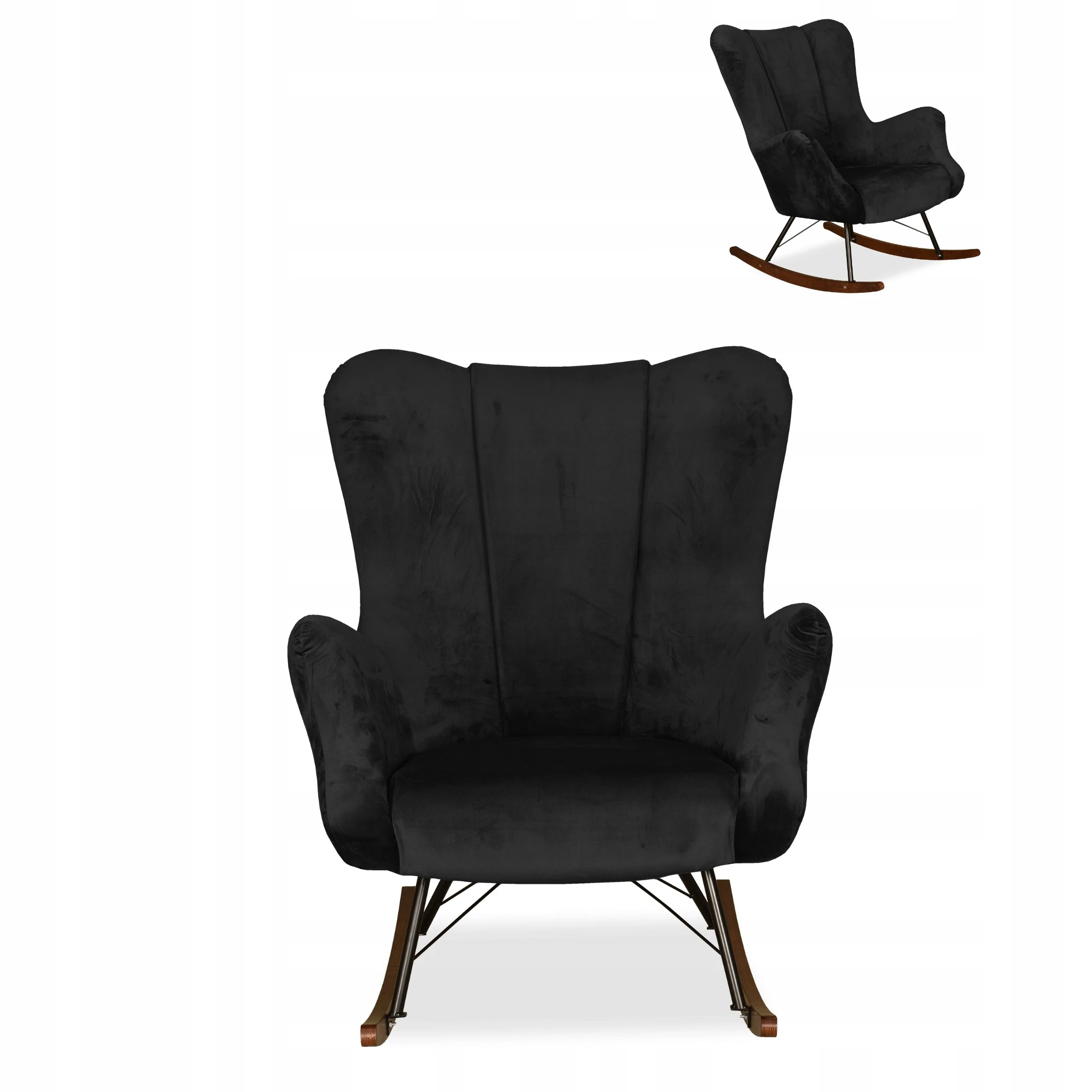 Fotel uszak skandynawski Vika bujany na płozach Family Meble czarny welur