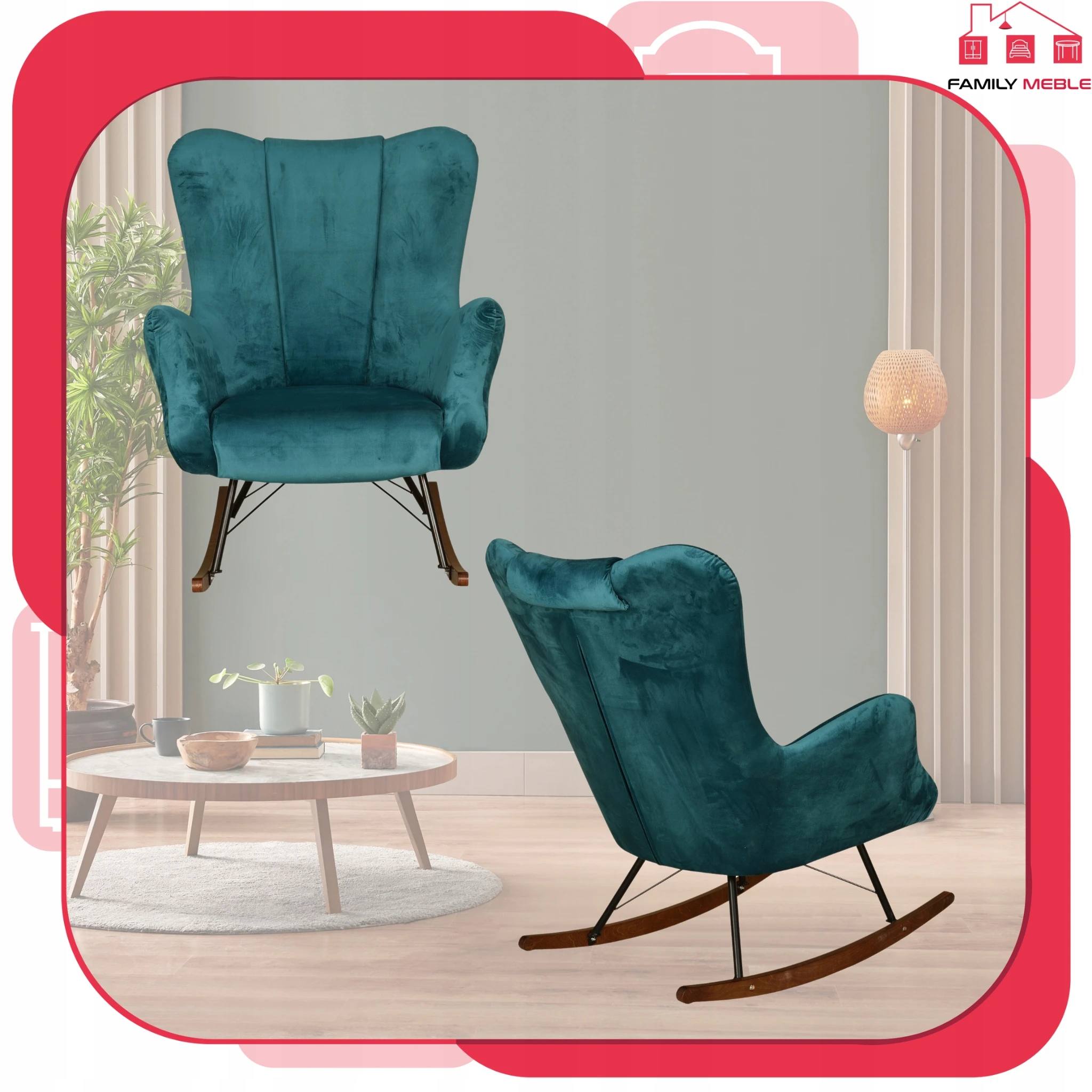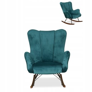 Fotel uszak skandynawski Vika bujany na płozach Family Meble turkus niebieski