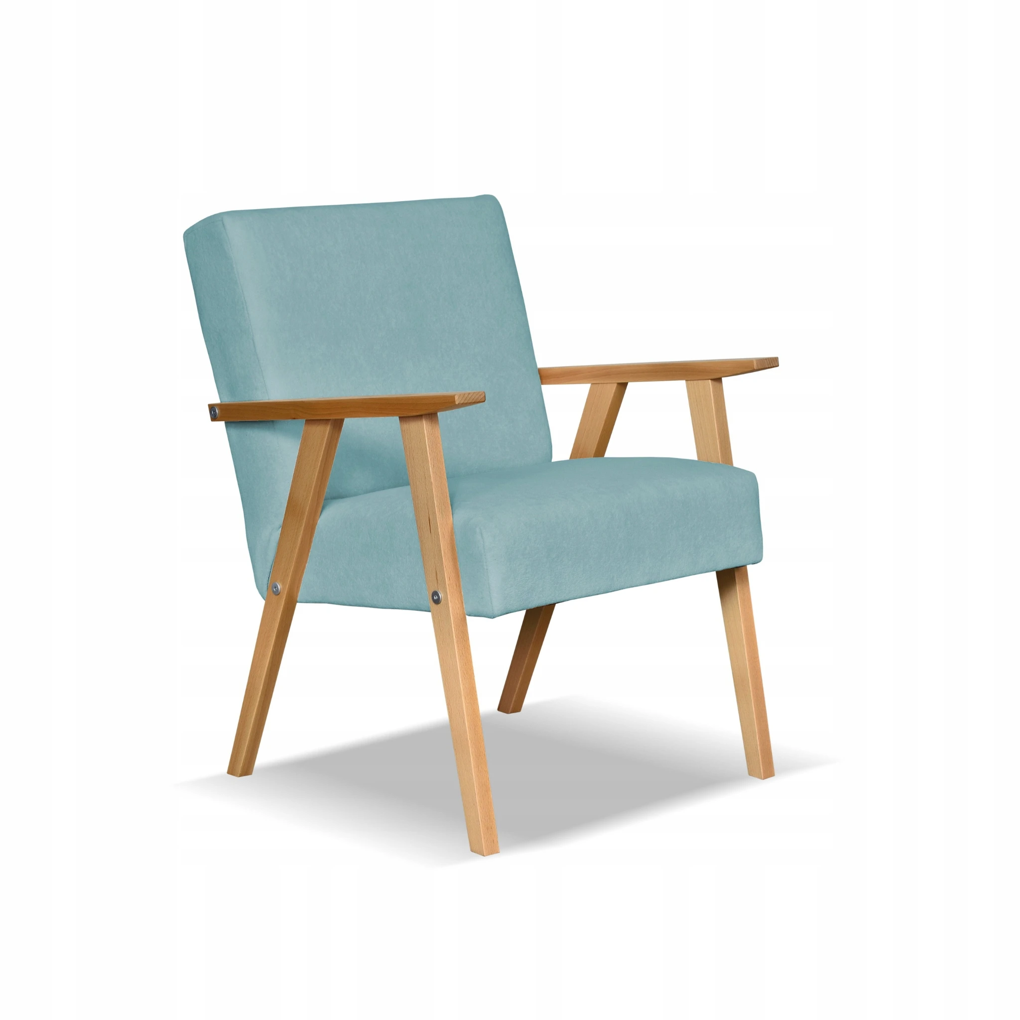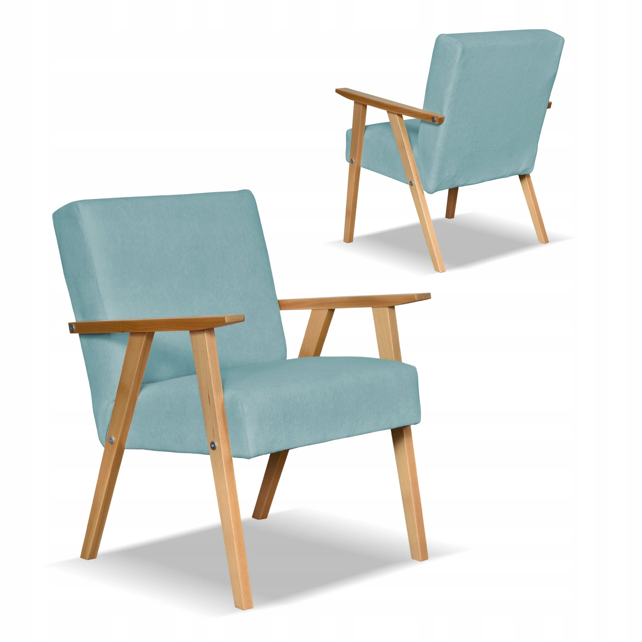 Fotel w stylu PRL retro vintage SOLER Family Meble turkusowy welur Hunter