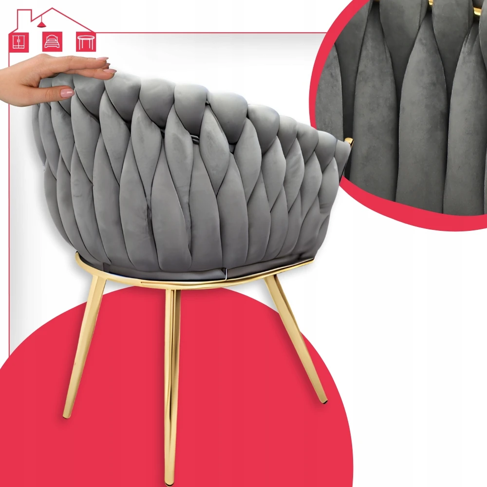 ✅ Dekoracyjny przeplot na oparciu dodaje elegancji i wyjątkowego stylu, dzięki czemu fotel staje się przyciągającą wzrok ozdobą każdego wnętrza;