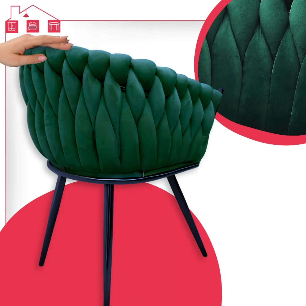 ✅ Dekoracyjny przeplot na oparciu dodaje elegancji i wyjątkowego stylu, dzięki czemu fotel staje się przyciągającą wzrok ozdobą każdego wnętrza;