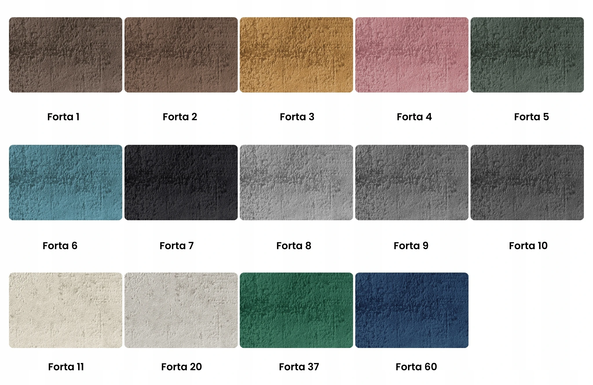 Tkaniny tapicerskie z kolekcji Forte to materiały nowoczesne, z grupy welwetów przypominających zamsz, ich powierzchnia jest bardzo miękka i miła w dotyku. Prezentowane tkaniny są zmywalne, dlatego łatwo utrzymać je w czystości, idealnie sprawdzą się jako obicia foteli, narożników Bonito. Posiadamy bogatą gamę kolorystyczną tkanin z kolekcji Forte, od kolorów stonowanych i naturalnych po bardzo żywe i jaskrawe. Pozwala to na dopasowanie tkanin do każdego wnętrza.