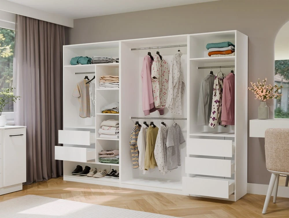 Garderoba Modułowa OPENO ZESTAW 260/200 BIAŁA Szuflady Drążki Półki Duża Do Sypialni