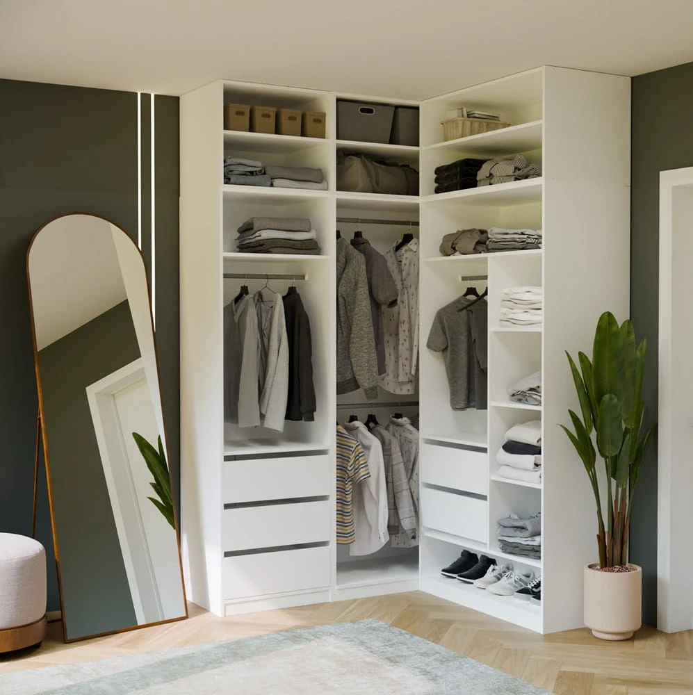 Garderoba Modułowa OPENO ZESTAW 260/250 BIAŁA Szuflady Drążki Półki Duża Do Sypialni