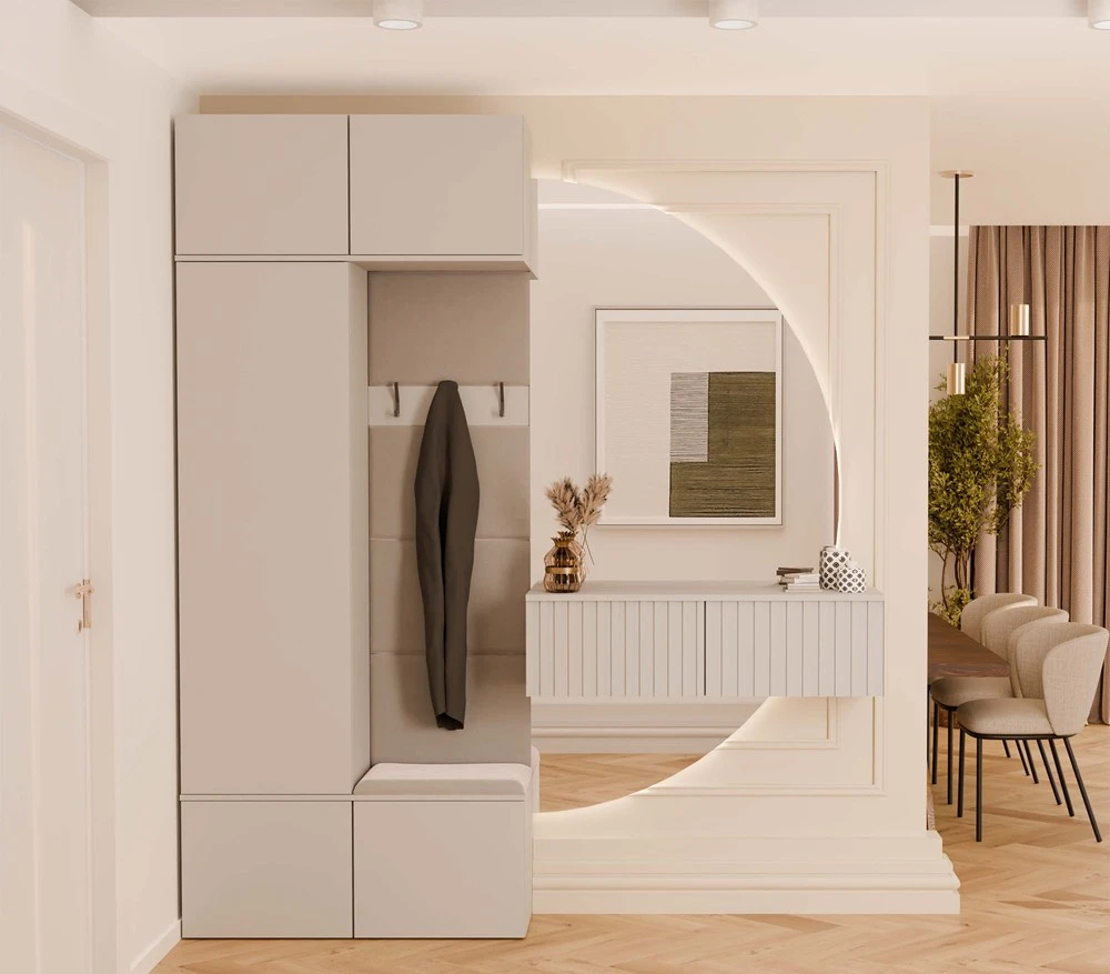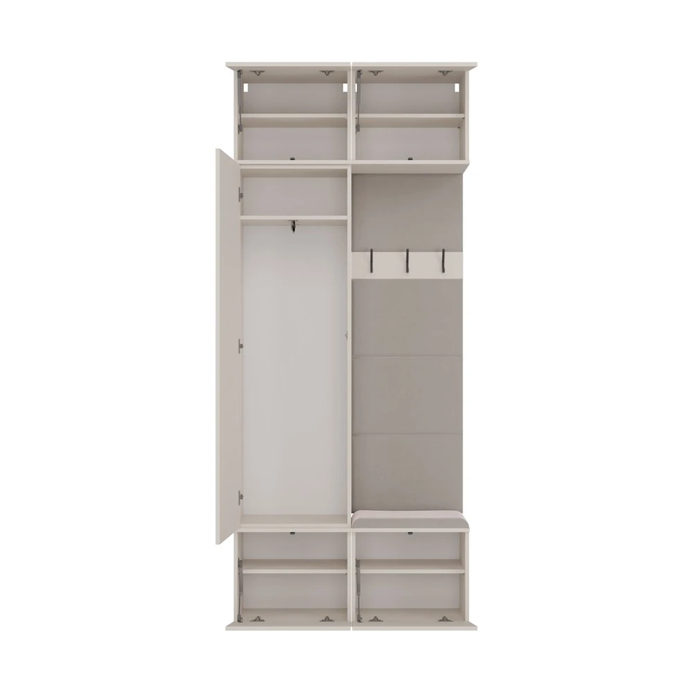 - Tapicerowane siedzisko z zamykaną dolną szafką na buty