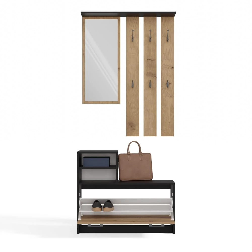 - Szafka na Obuwie: Pomieści 8-9 par butów.