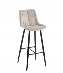 Beżowy hoker tapicerowany to doskonałe połączenie elegancji i wygody. Wykonany z trwałej tkaniny velvet, którą cechuje miękkość i przyjemność w codziennym użytkowaniu. Jego czarne nogi wykonane z chromu dodają charakteru i stabilności.