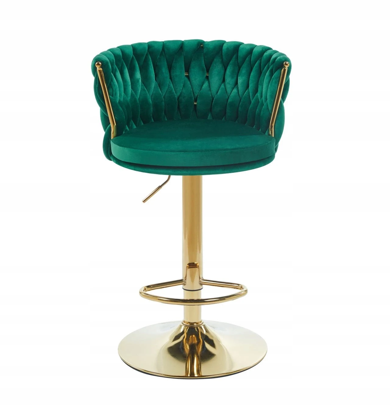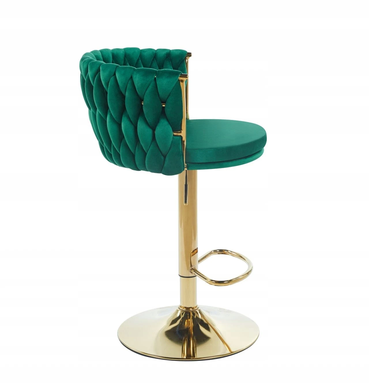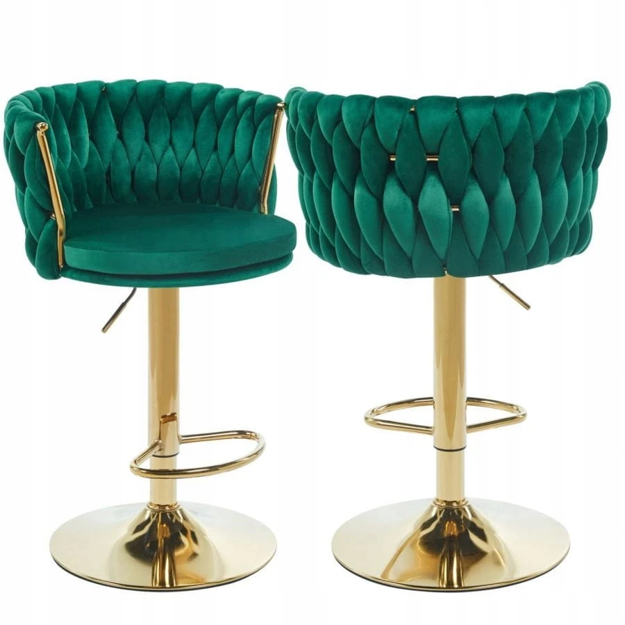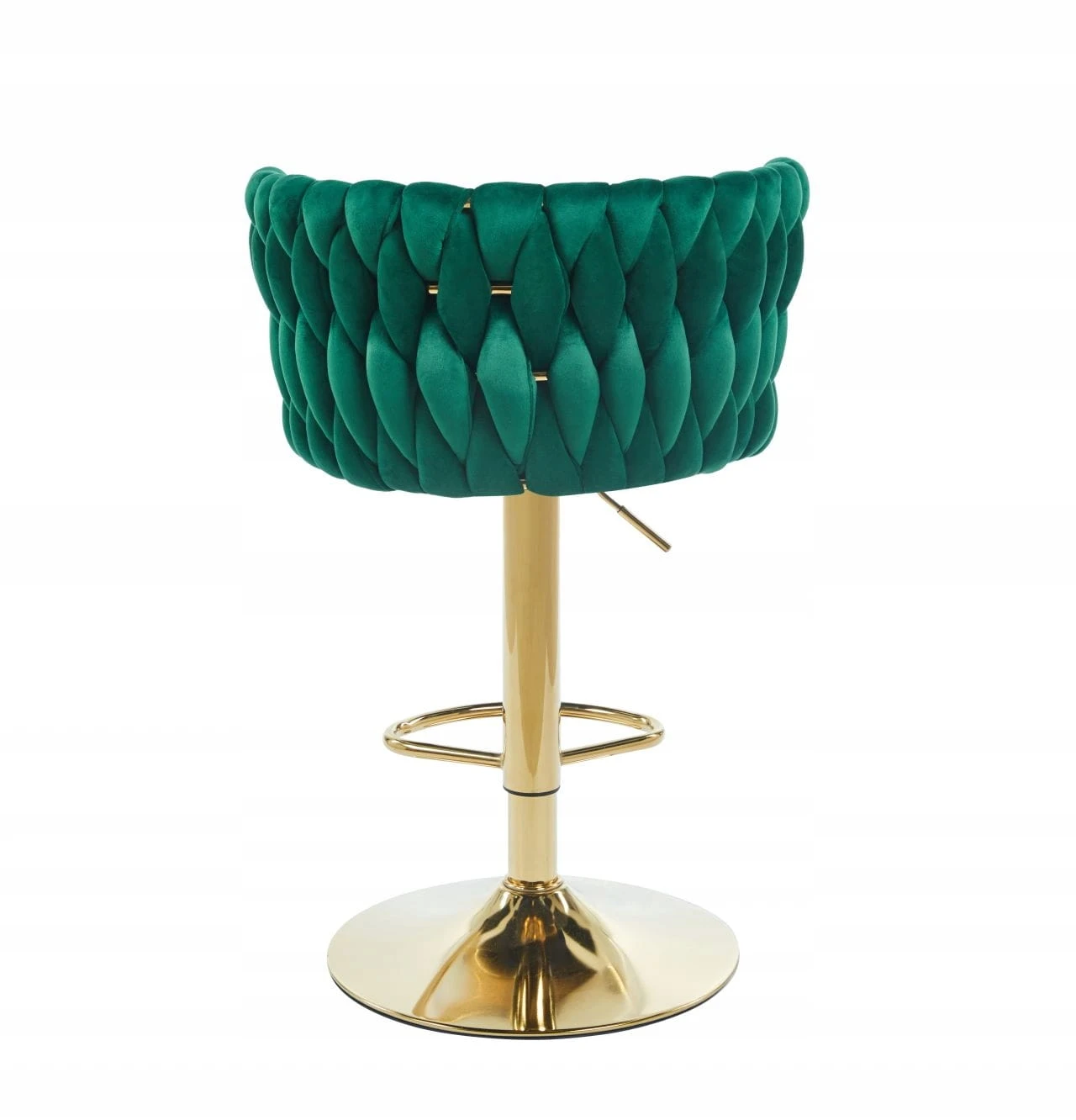 Hoker Krzesło przeplatany ZIELONY na ZŁOTEJ NODZE Regulowany Welur