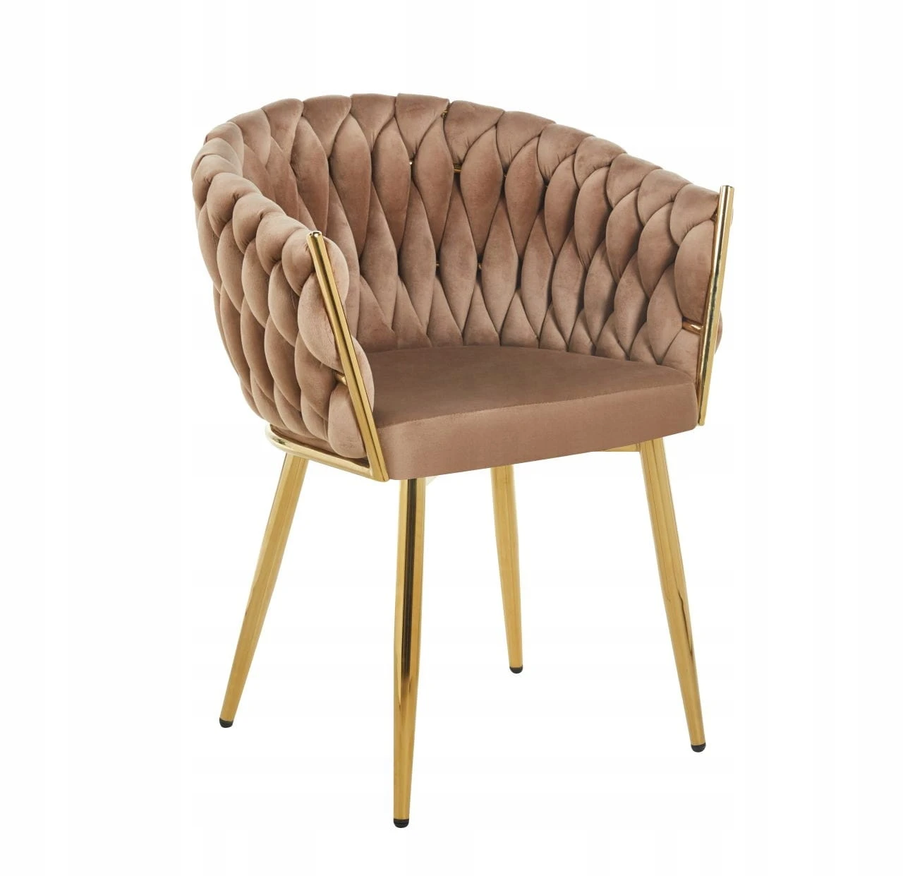 Krzesło PRZEPLATANE CAPPUCCINO welurowe na ZŁOTYM STELAŻU Furnitex Glamour