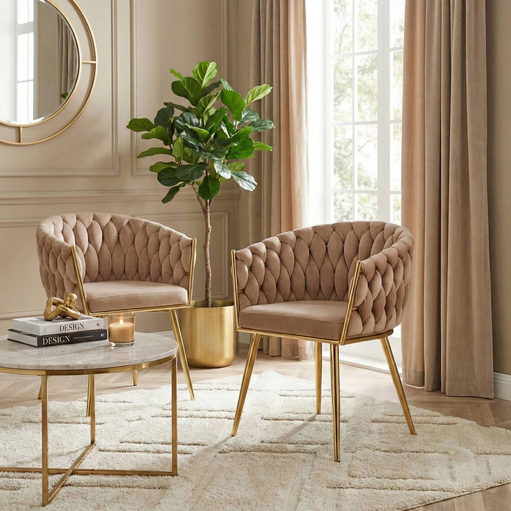 Krzesło welwet przeplatane idealnie wpisuje się w obecnie panujące trendy. Jego niebanalny wygląd sprawia, że z pewnością stanie się ozdobą wnętrza. Stelaż krzesła wykonany został z metalu pomalowanego proszkowo na kolor złoty. Siedzisko oraz oparcie wypełnione jest wytrzymałą i miękką pianką. Zastosowana tkanina typu velvet jest nie tylko bardzo przyjemna w dotyku ale również świetnie sprawdza się w codziennym użytkowaniu.