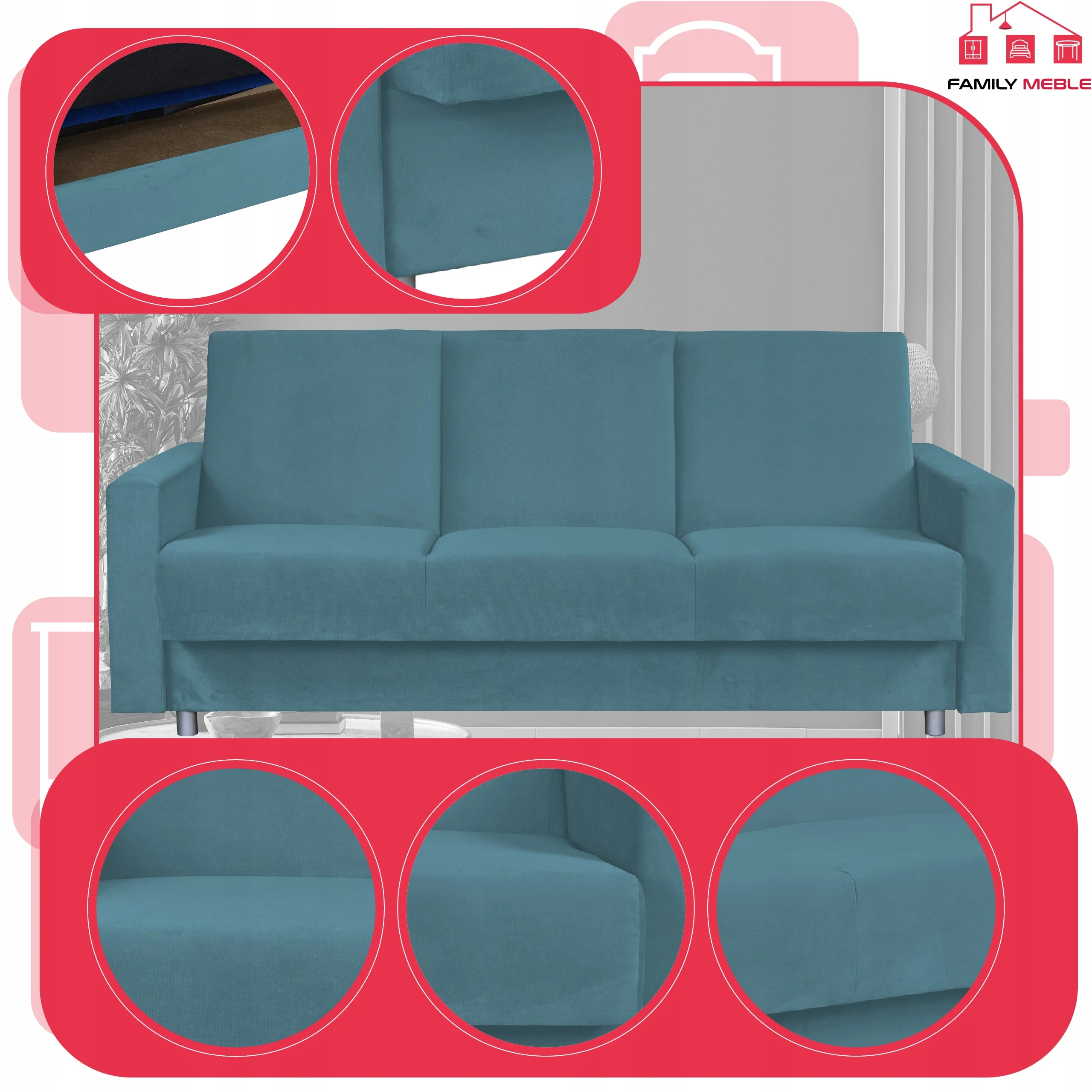 Kanapa sofa Alicja rozkładana wersalka spania bonell łóżko Family meble blue