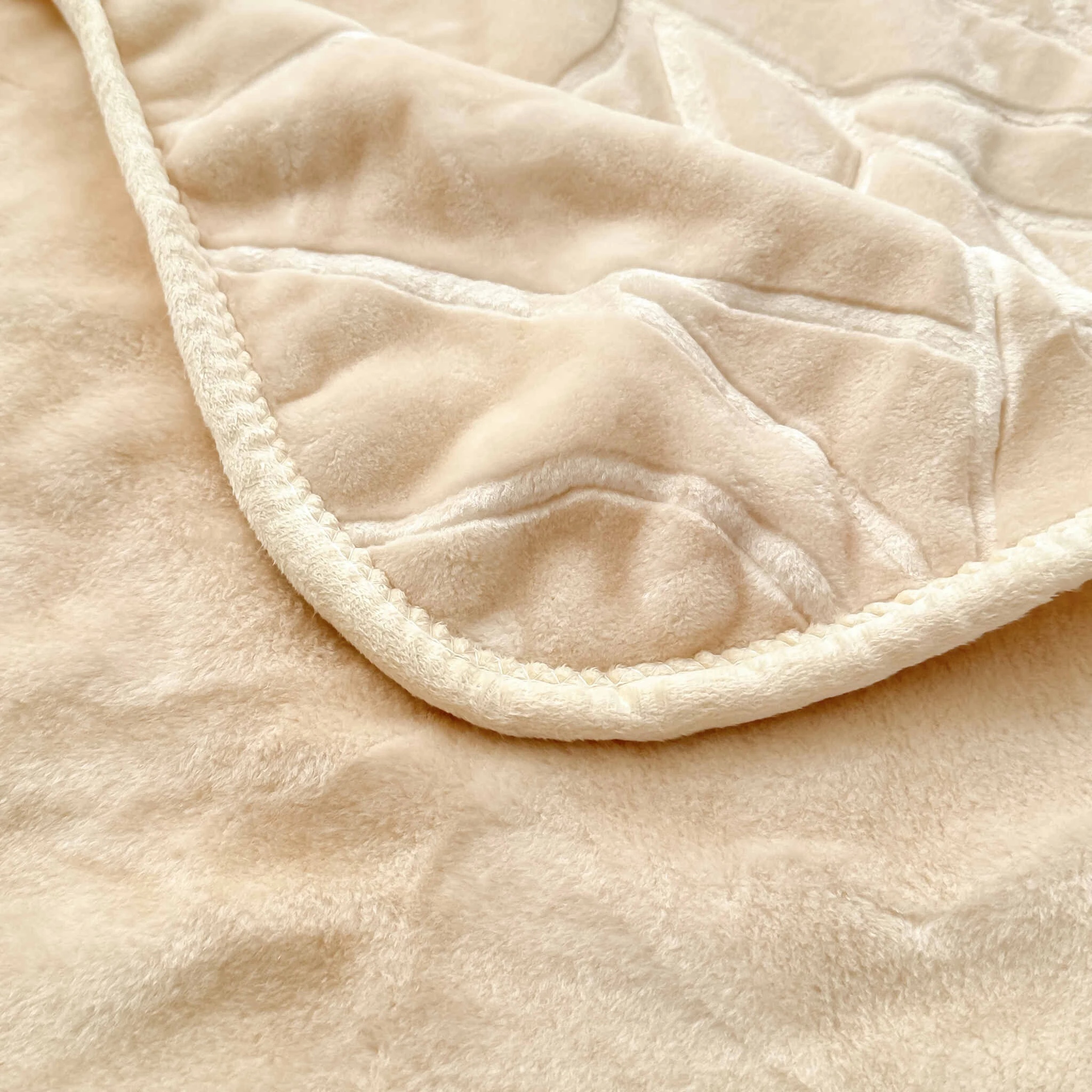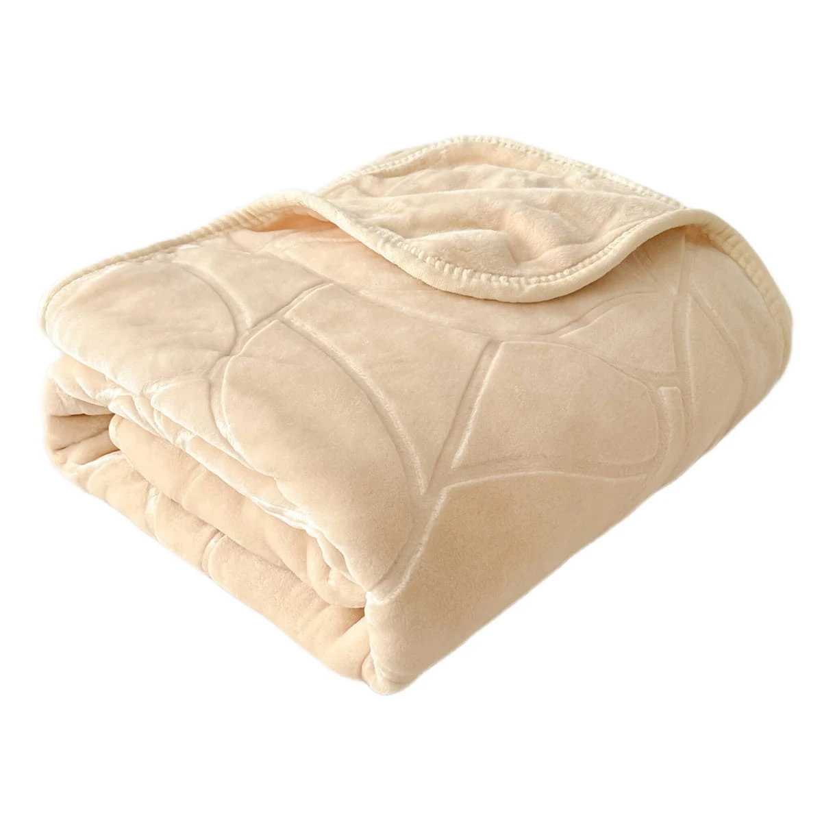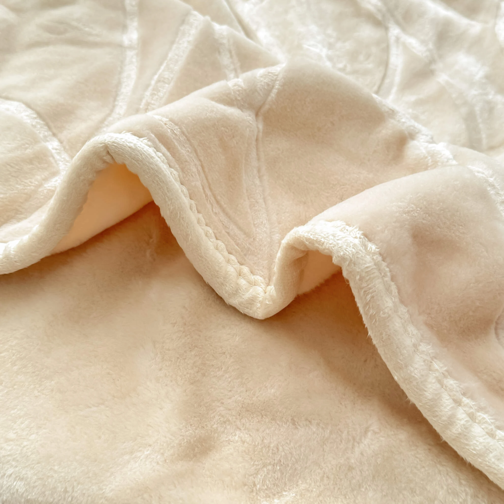 Koc akrylowy na fotel tłoczony LIV 80x160 gruby ciepły masełkowy
