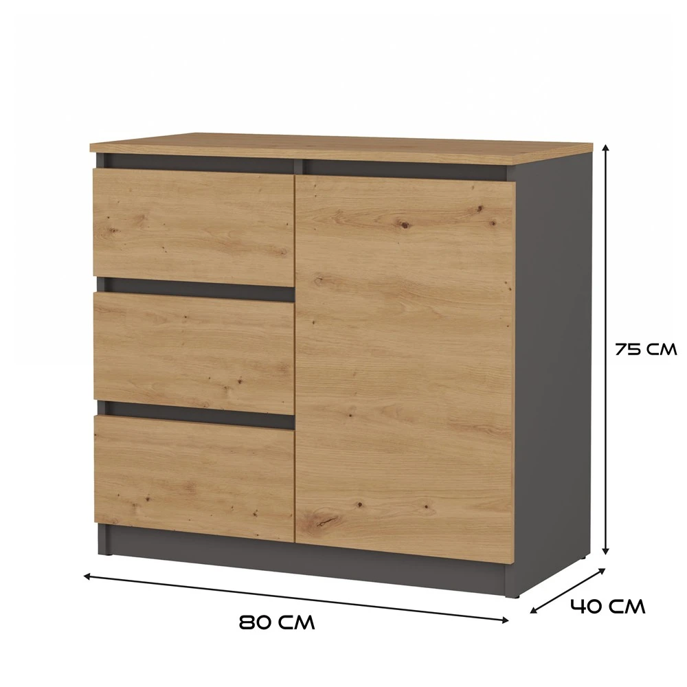 Komoda Malwa 1D3S/BA ANTRACYT DĄB ARTISAN