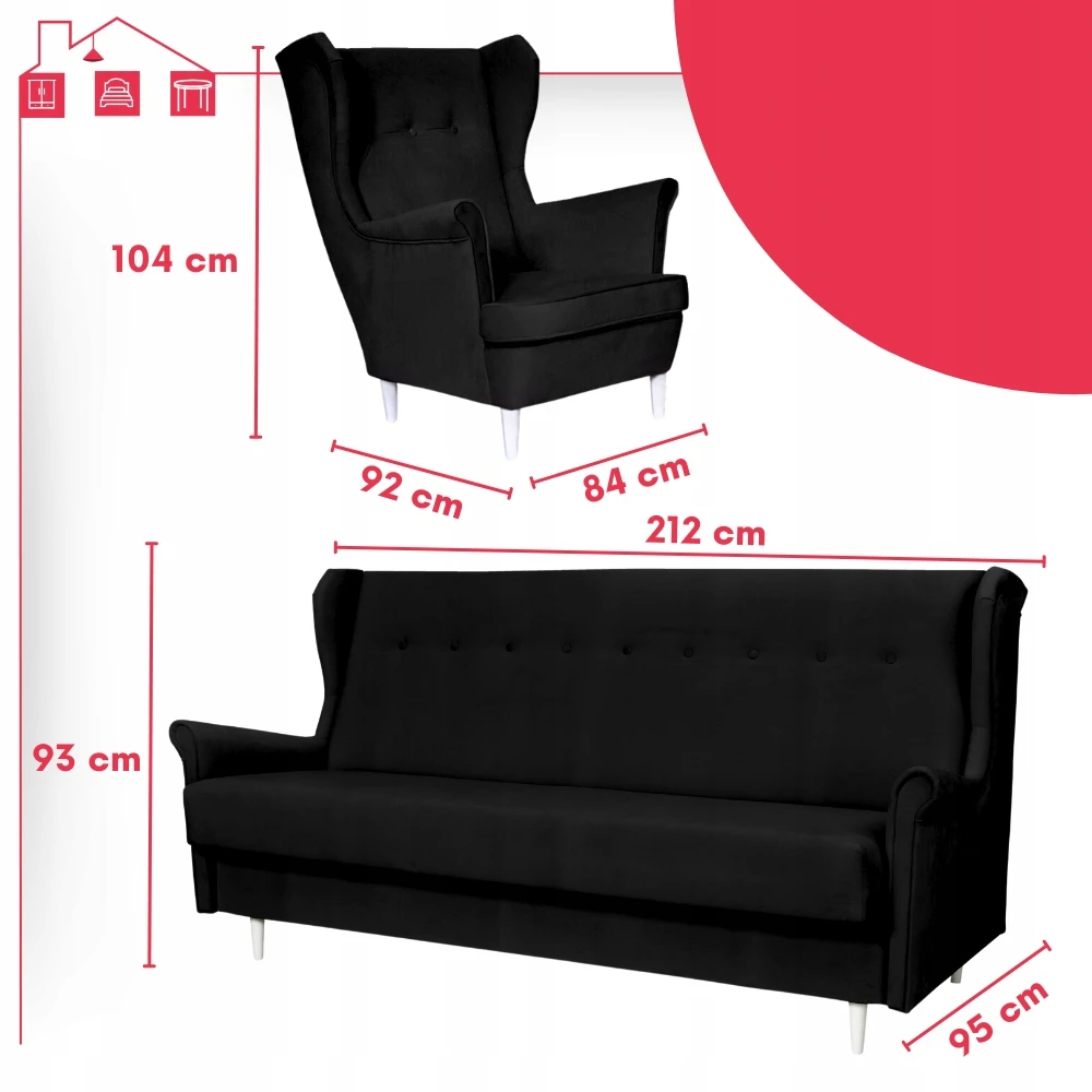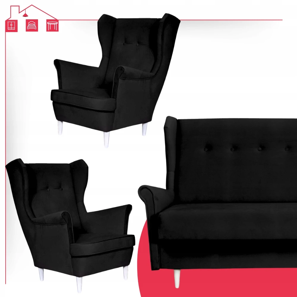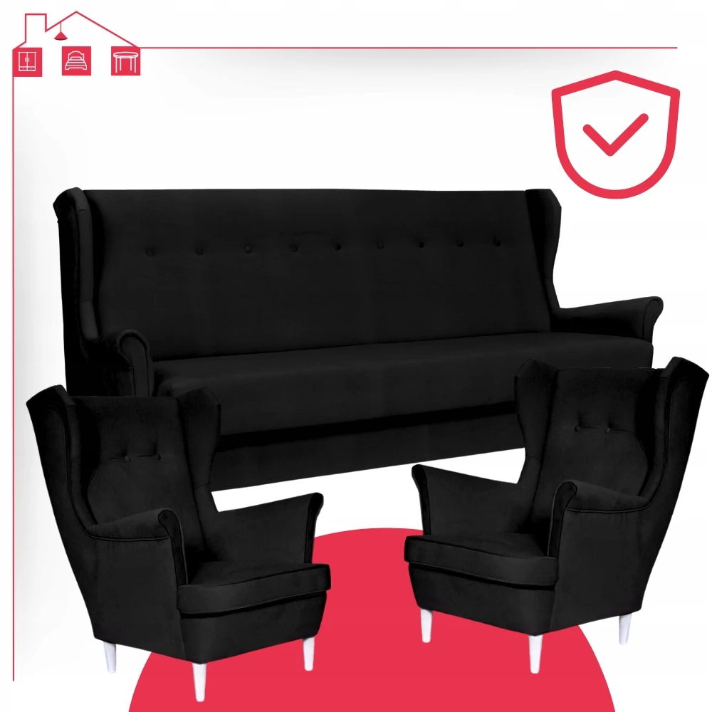 - Typ: zestaw wersalka uszak + 2 fotele uszak