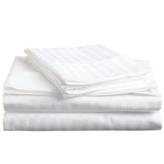 Komplet pościeli hotelowej wykonany specjalną techniką splotów przędzy. Charakteryzuje się odpornością na działanie czynników mechanicznych. Pościel posiada żakardowy wzór pasów, przyjemny chwyt i jest miła dla ciała.