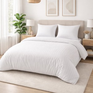 Komplet pościeli hotelowej ze 100% bawełnianej tkaniny, wykonany specjalną techniką splotów przędzy. Charakteryzuje się dużą odpornością na działanie czynników mechanicznych - można prać ją w wysokiej temperaturze. Pościel posiada żakardowy wzór pasów, delikatny połysk, przyjemny chwyt, jest przewiewna i miła dla ciała.