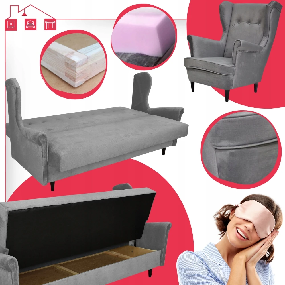 - Typ: zestaw wersalka uszak + 2 fotele uszak