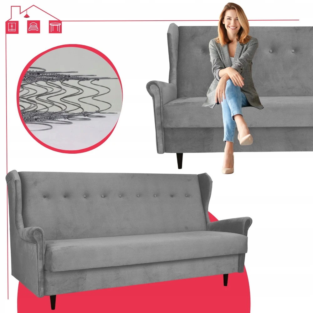 - Dodatkowe funkcje wersalki: funkcja spania, podłokietniki, pojemnik na pościel