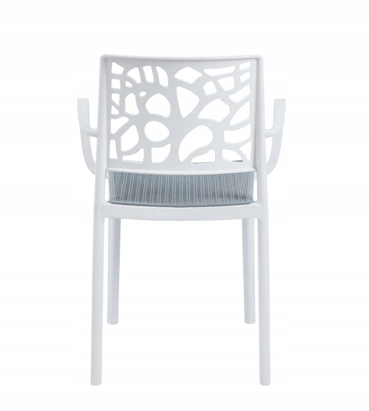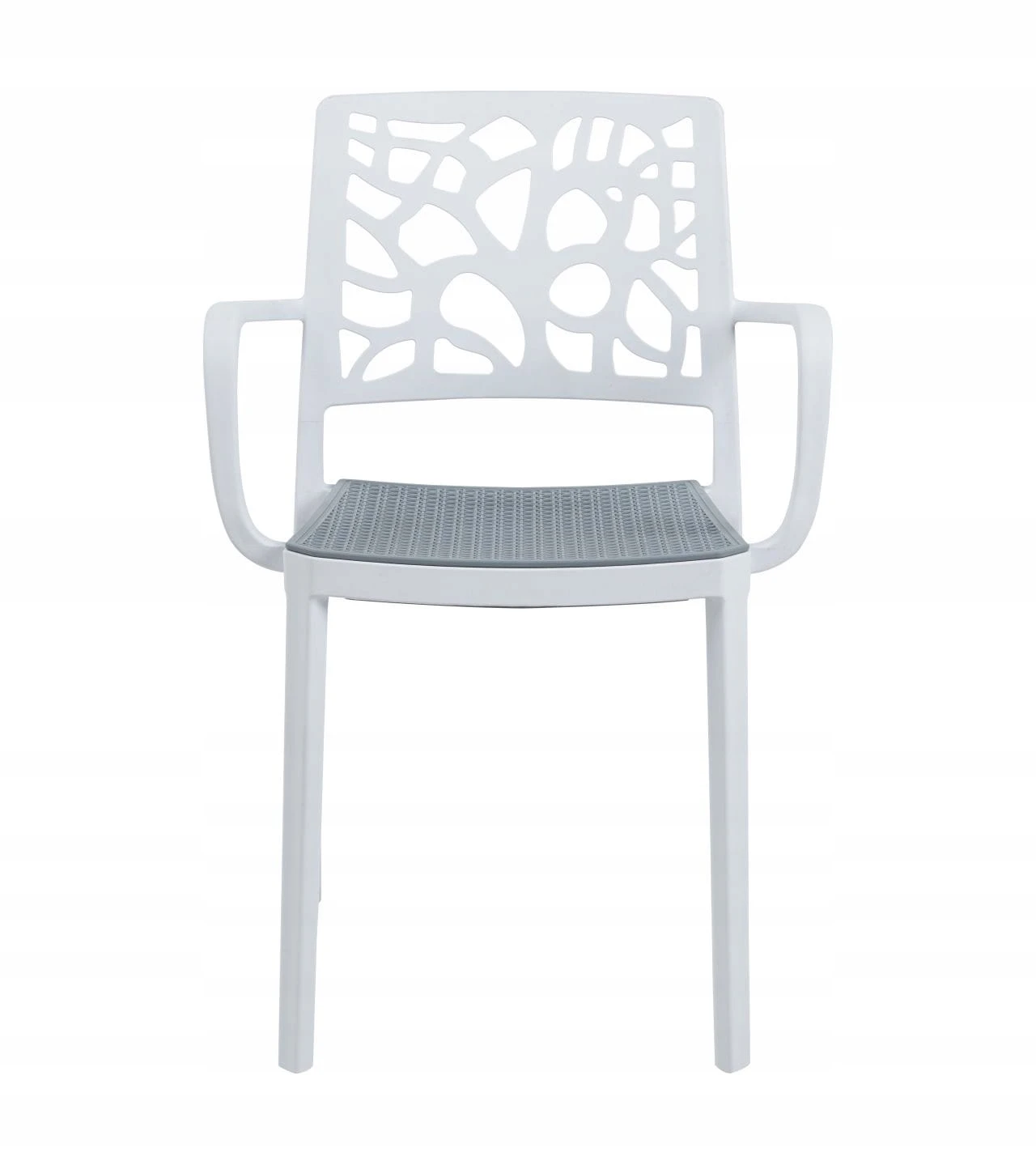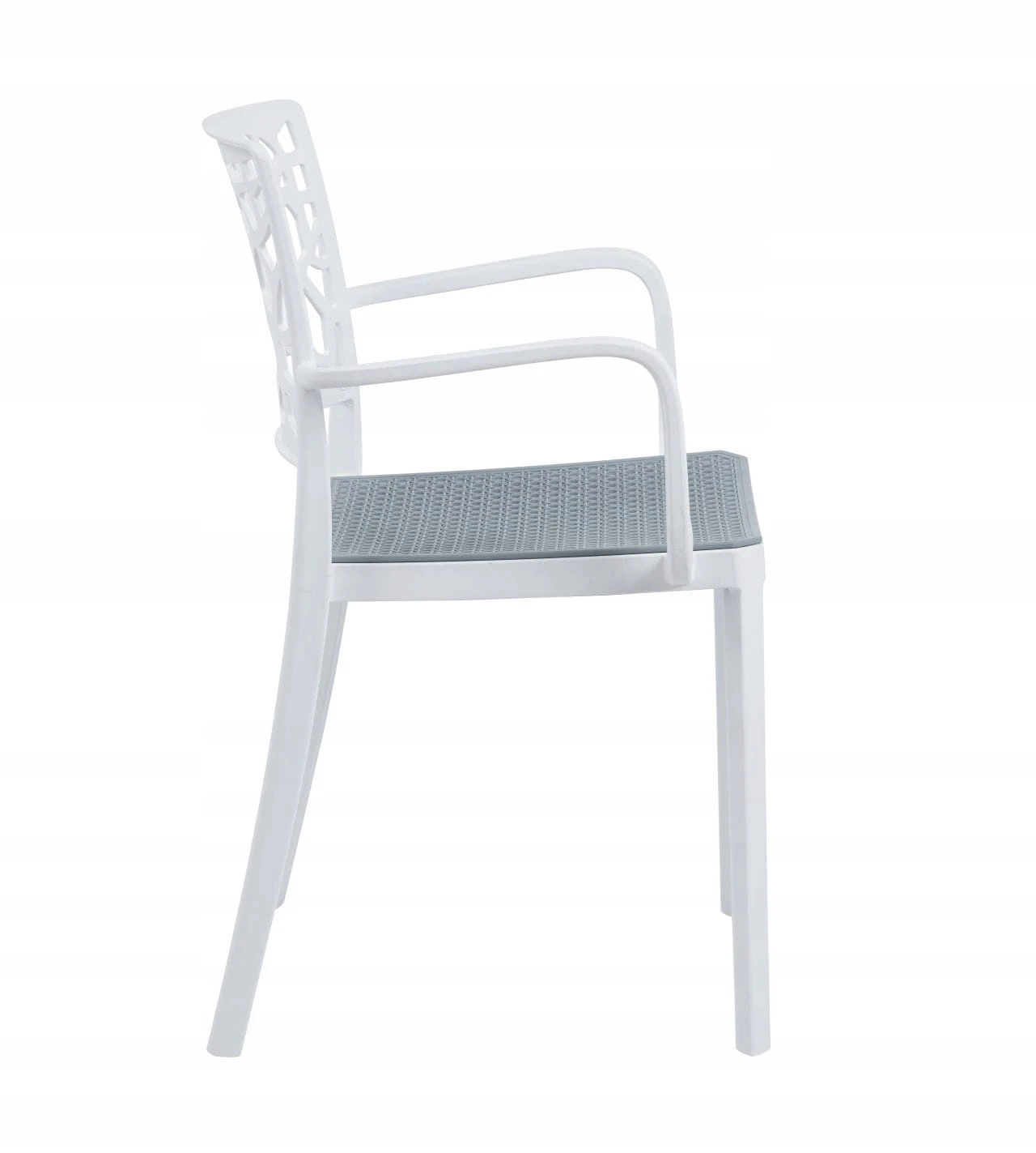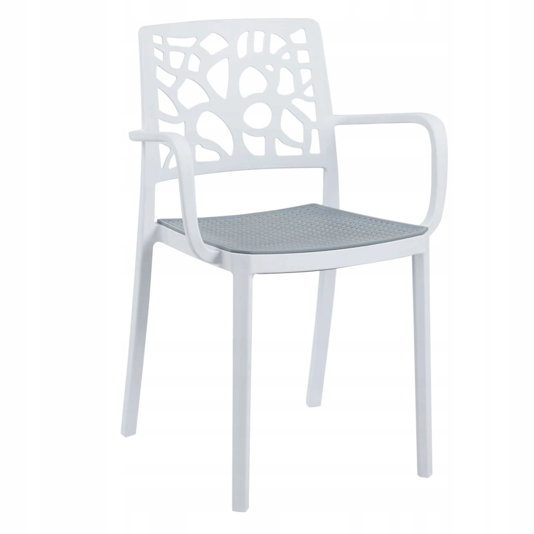 Krzesło BIAŁE Tarasowe Ogrodowe z SZARYM SIEDZISKIEM z Podłokietnikami