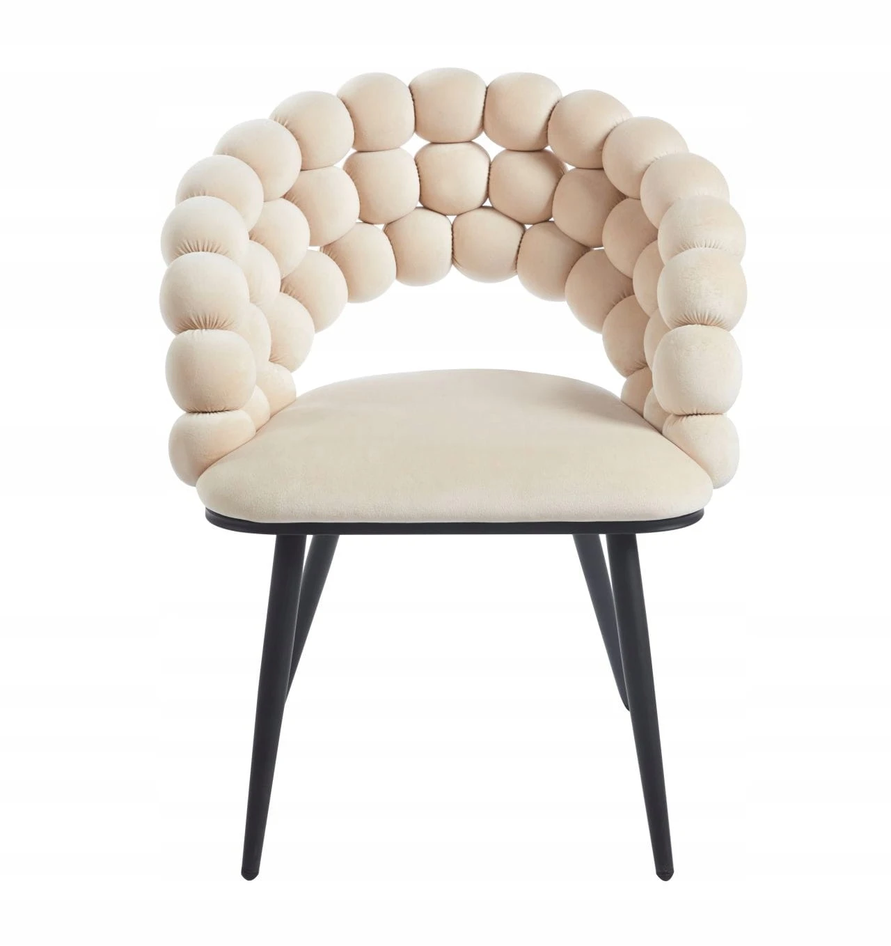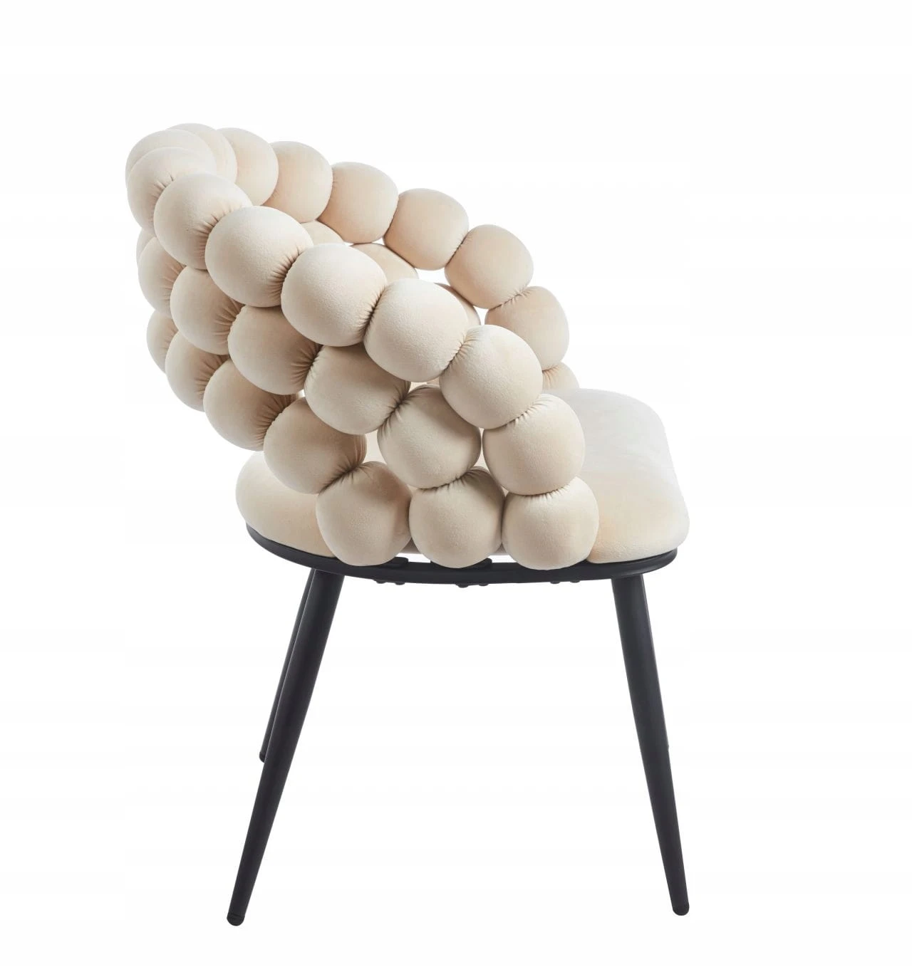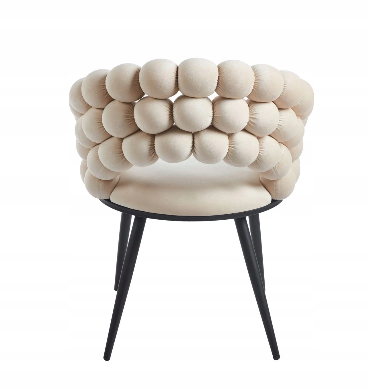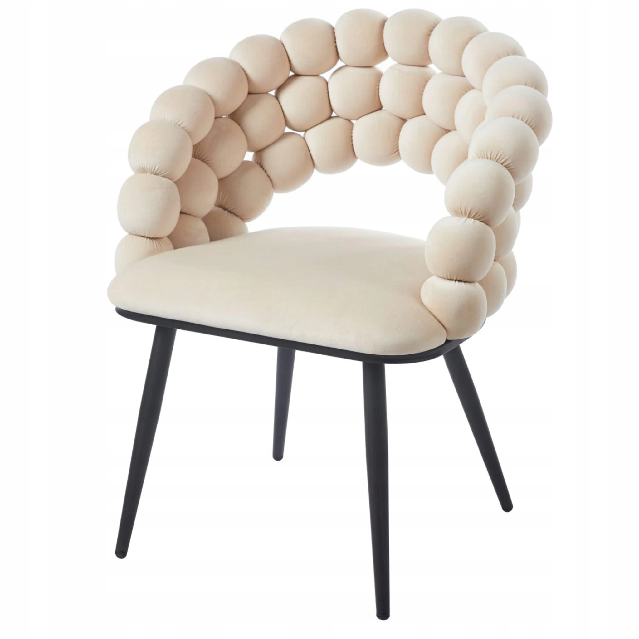 Designerskie krzesło welurowe BUBBLE doskonale uzupełni wystrój salonu lub sypialni. Wspaniale będzie wyglądało przy stole w jadalni, w domowym kąciku czytelniczym, a także przy damskiej toaletce. Mebel przyciąga wzrok oryginalnym oparciem, składającym się z kulek, które zapewniają wygodną i miękką podporę dla pleców. Stylowe i funkcjonalne będzie doskonałą propozycją dla tych, którzy cenią połączenie wysokiej estetyki i użyteczności.