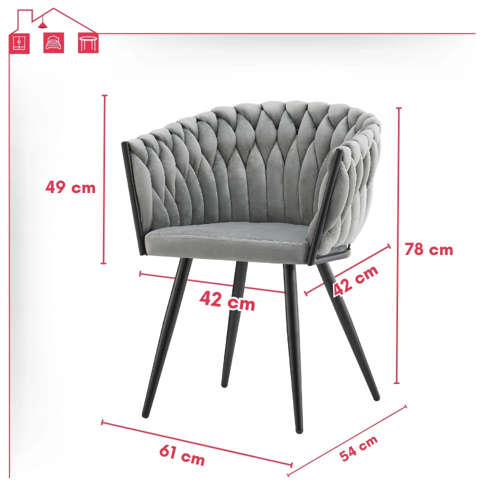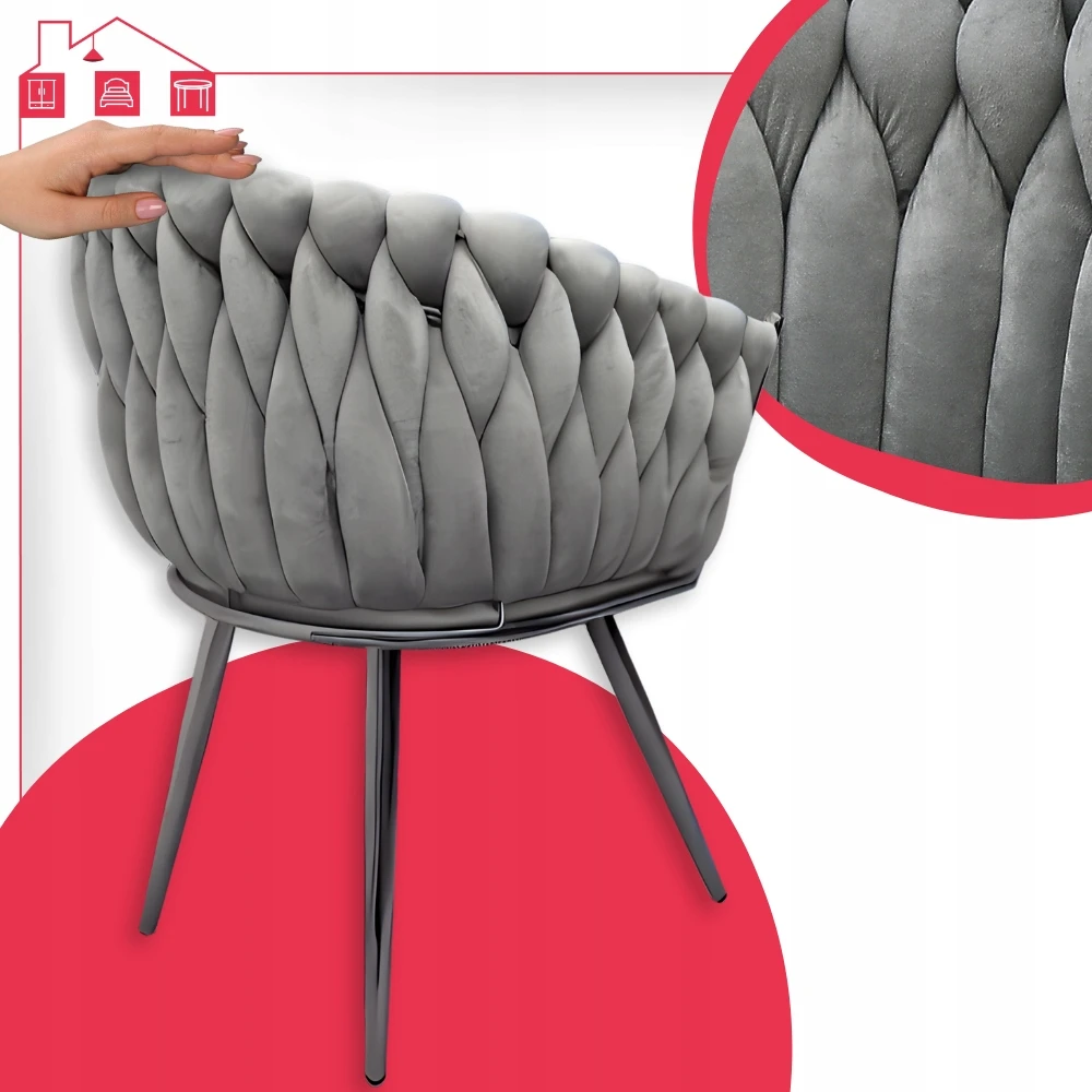 ✅ Dekoracyjny przeplot na oparciu dodaje elegancji i wyjątkowego stylu, dzięki czemu fotel staje się przyciągającą wzrok ozdobą każdego wnętrza;