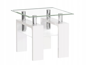 ŁAWA STOLIK SZKLANY KAWOWY Biały Mini do SALONU Kwadratowy Marki Furnitex