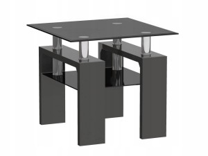 ŁAWA SZKLANA KAWOWA CZARNA GRUBE FREZOWANE SZKŁO PÓŁKI KWADRATOWA FURNITEX