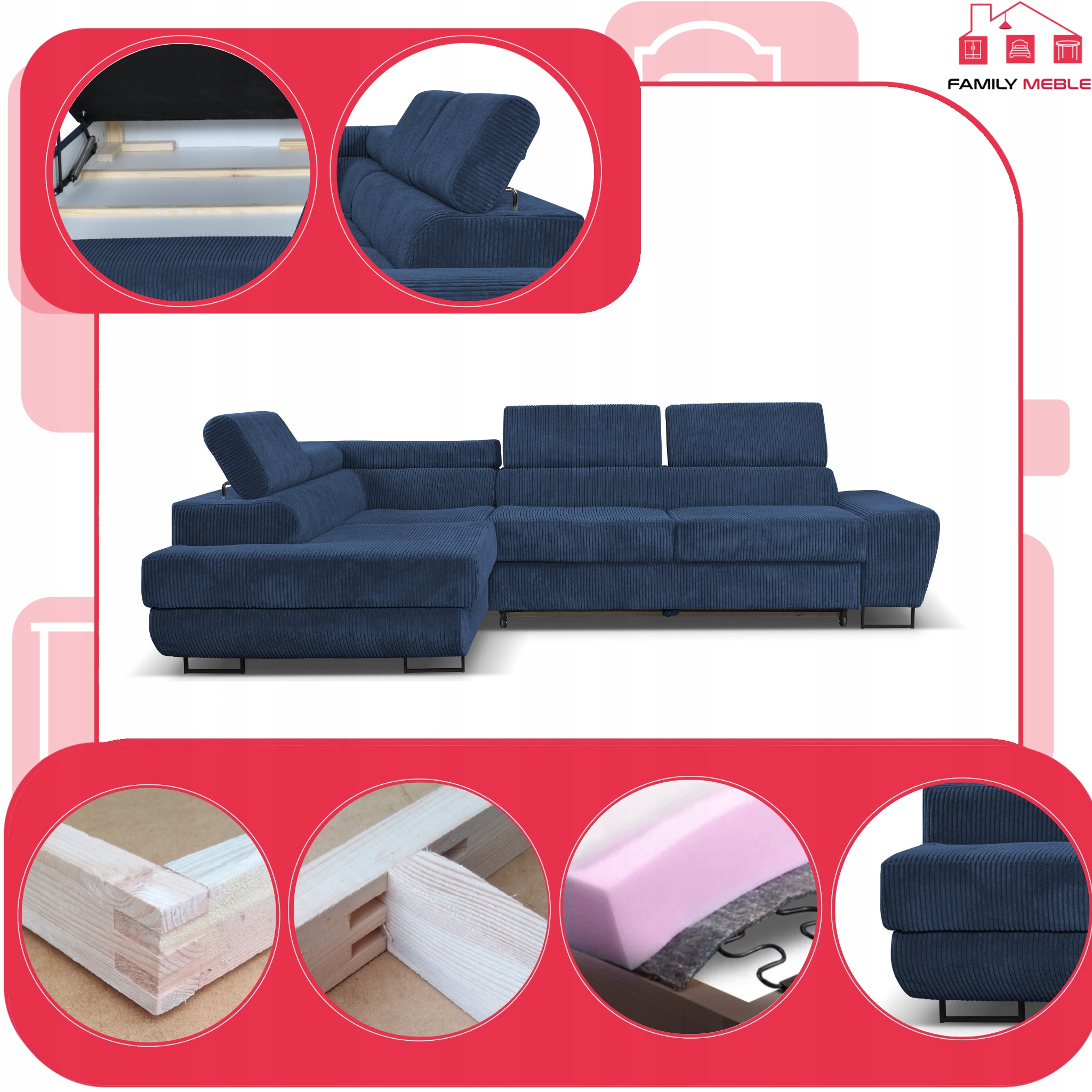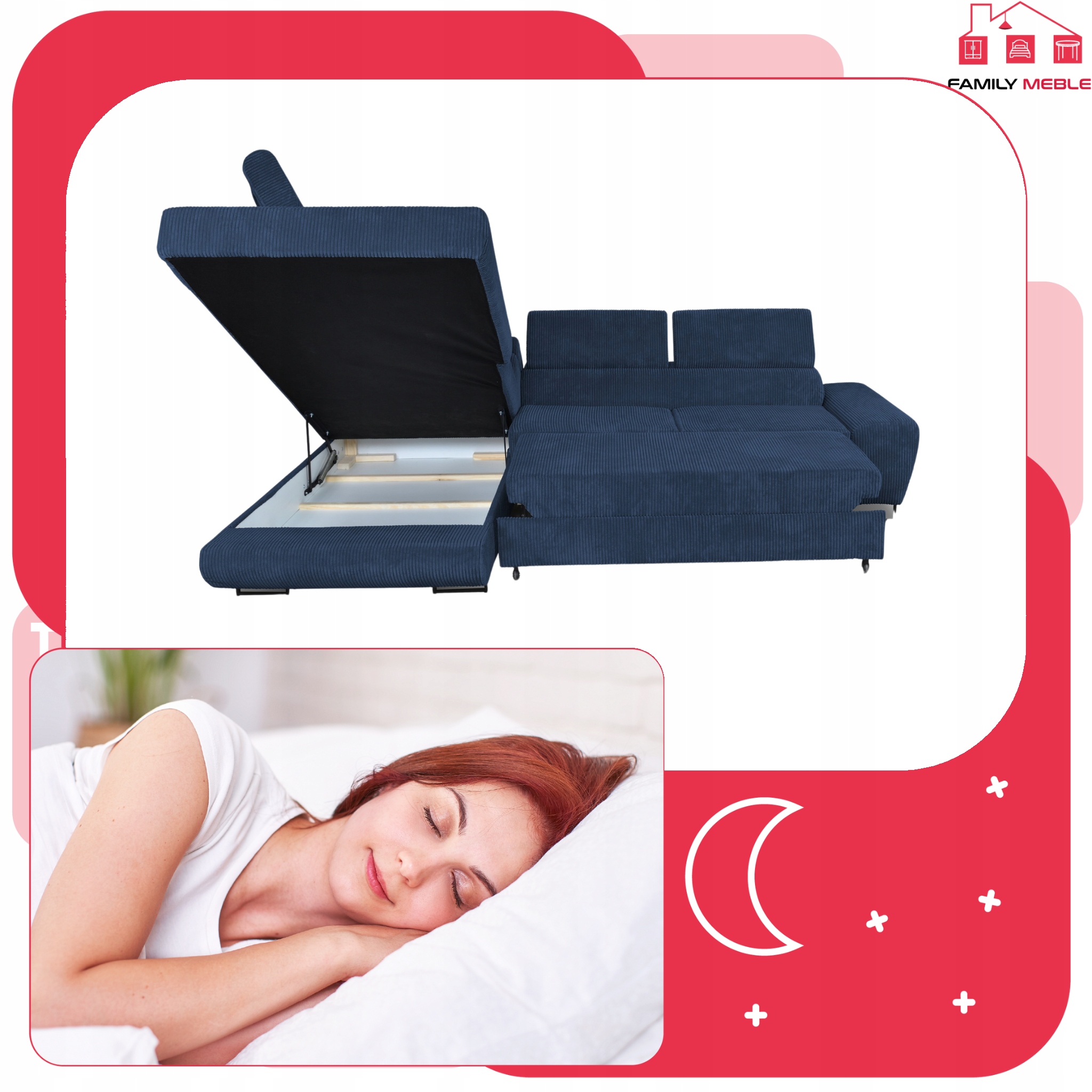 Narożnik rogówka rozkładany f spania Savio lewy Family meble granat sztruks