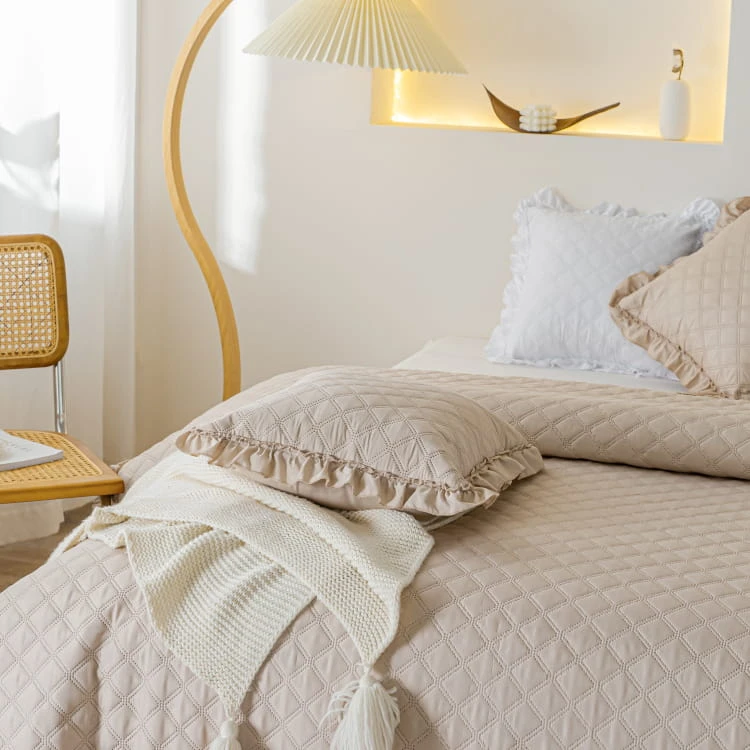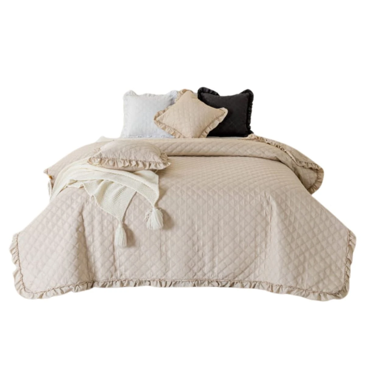 Narzuta dekoracyjna RUFFY 160x220 pikowana z falbanką beżowa