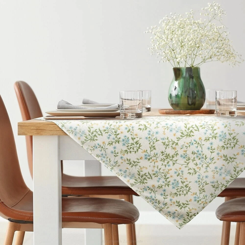 Obrus dekoracyjny wodoodporny TARA 110x140 Eurofirany kremowy zielony niezapominajki