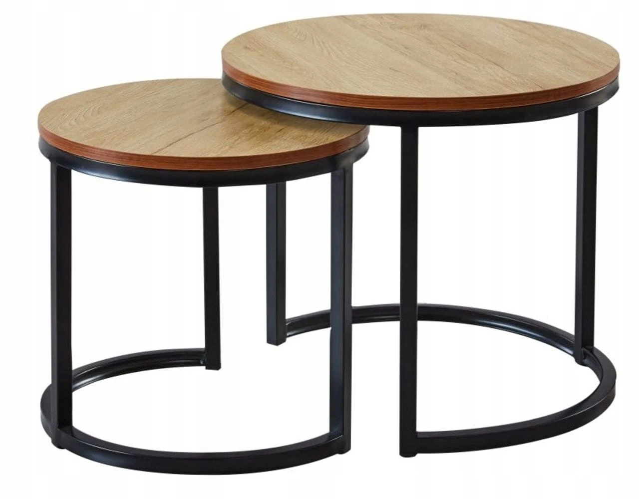Oba stoliki posiadają blaty wykonane z trwałej okleiny oraz stalowe nogi malowane proszkowo na kolor czarny. To zapewnia im wytrzymałość i stabilność, które przetrwają wiele lat użytkowania.