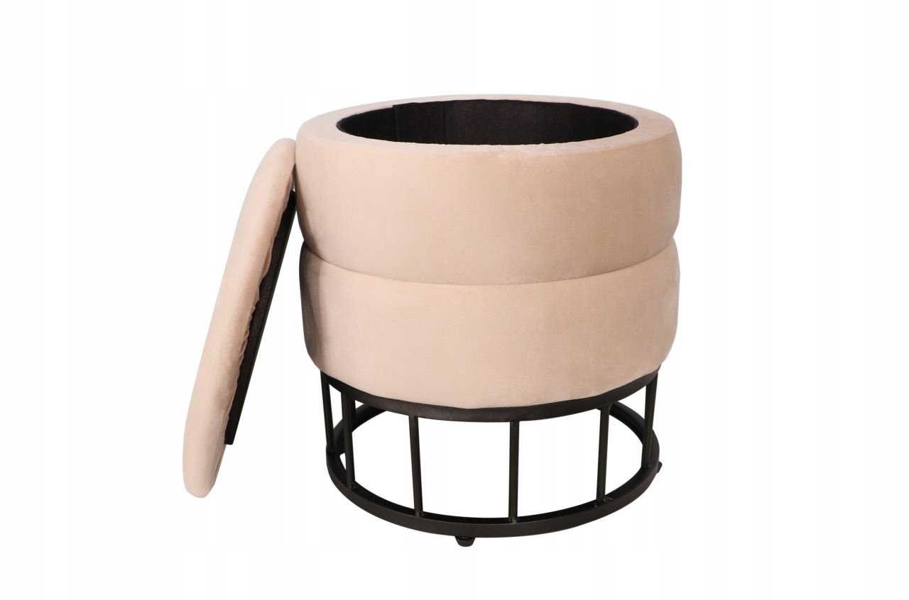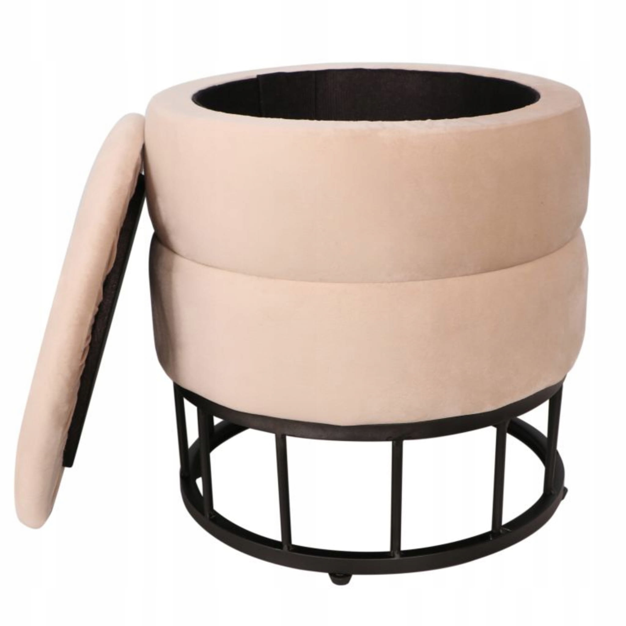 BEZOWA Welurowa Pufa Siedzisko otwierana z SCHOWKIEM Okrągła Furnitex