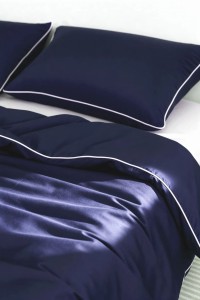 Pościel bambusowa 140x200 granatowa z białą bizą